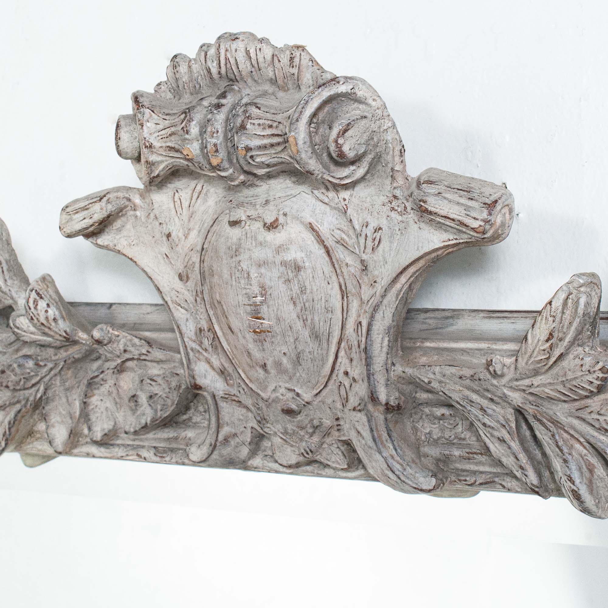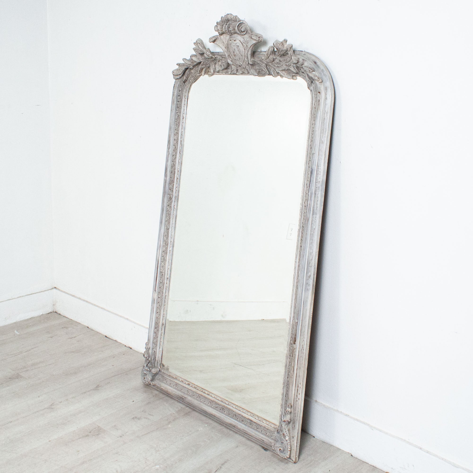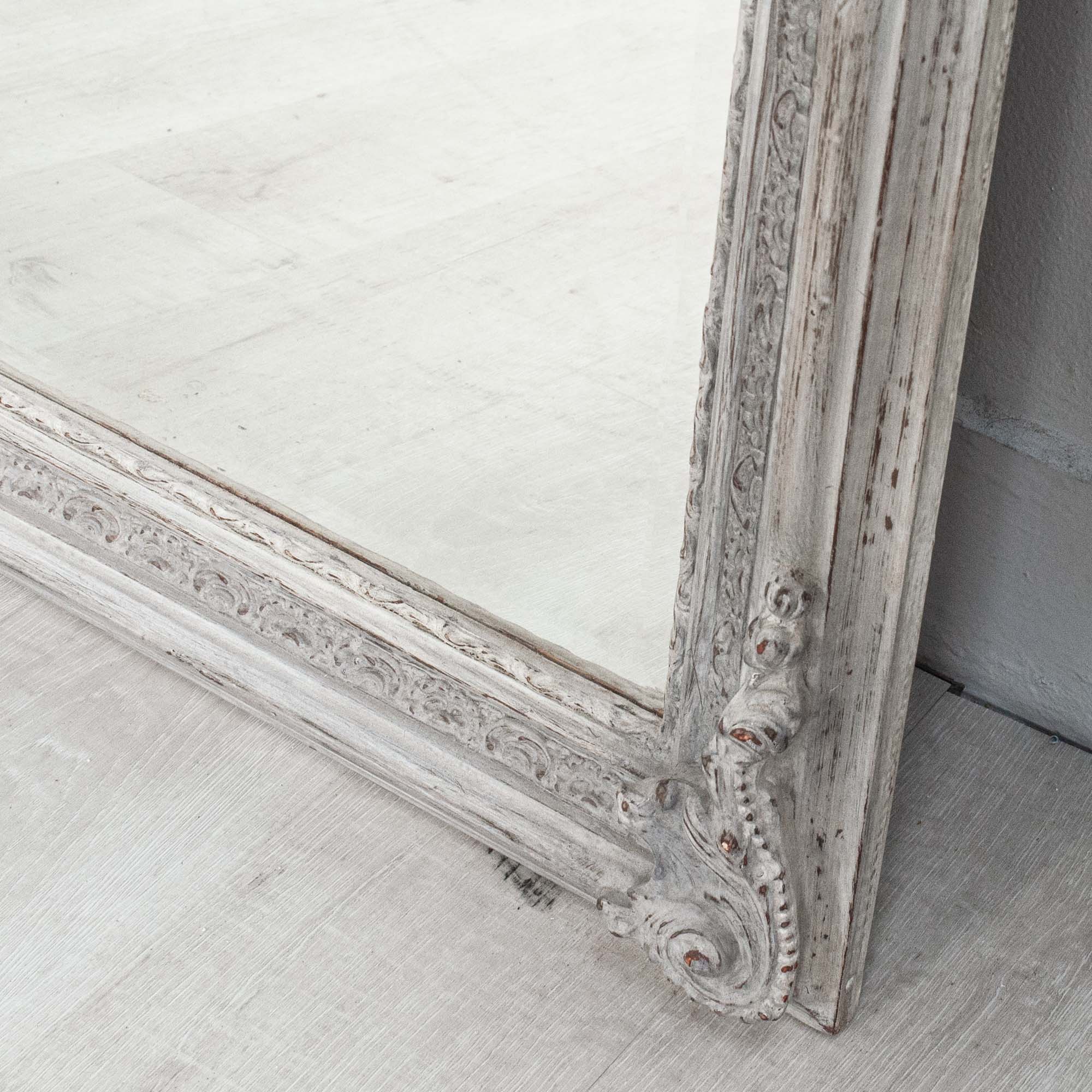 Reproduced to resemble Louis Philippe mirrors in appearance. Finished in a beautiful grey with just the right amount of patina to show off its exquisite detail.