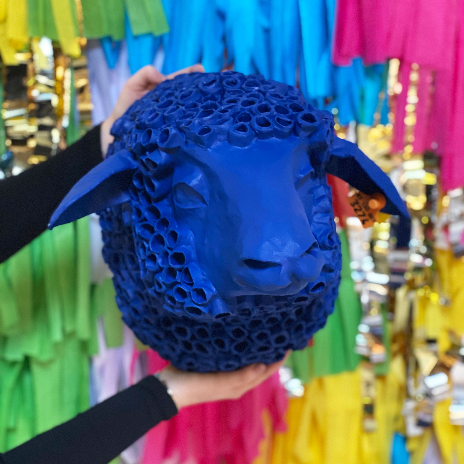 Paper mache animal wall mount art by French artist Marie Talalaeff. Pierre the blue sheep will have all your friends raving.