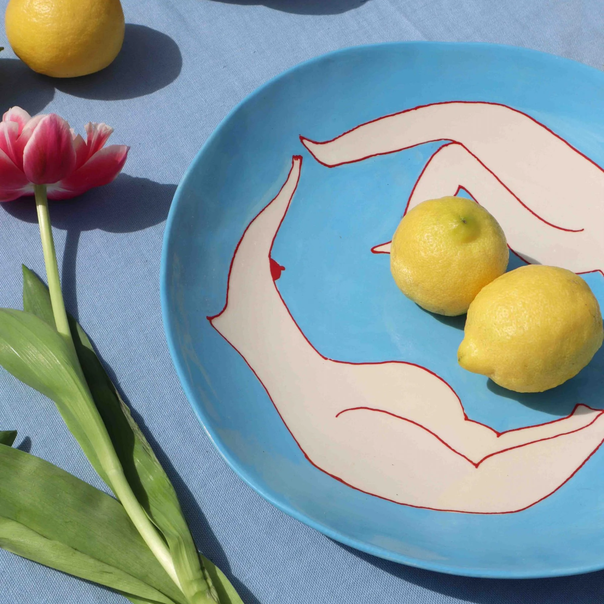 Large stoneware fruit platter hand painted with love and naughtiness.