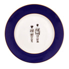 An exquisitely handcrafted fine bone china dinner plate with the Models design from the Modern Surrealist collection paired with a bold and beautiful Cobalt Blue border, a truly contemporary take on heritage blue and white ceramics.