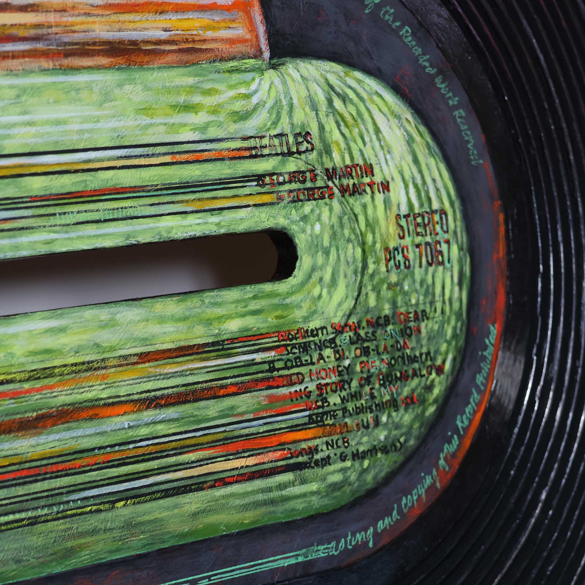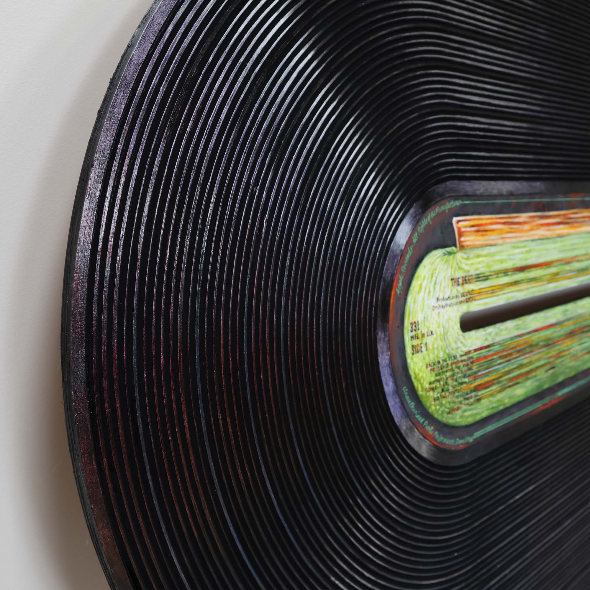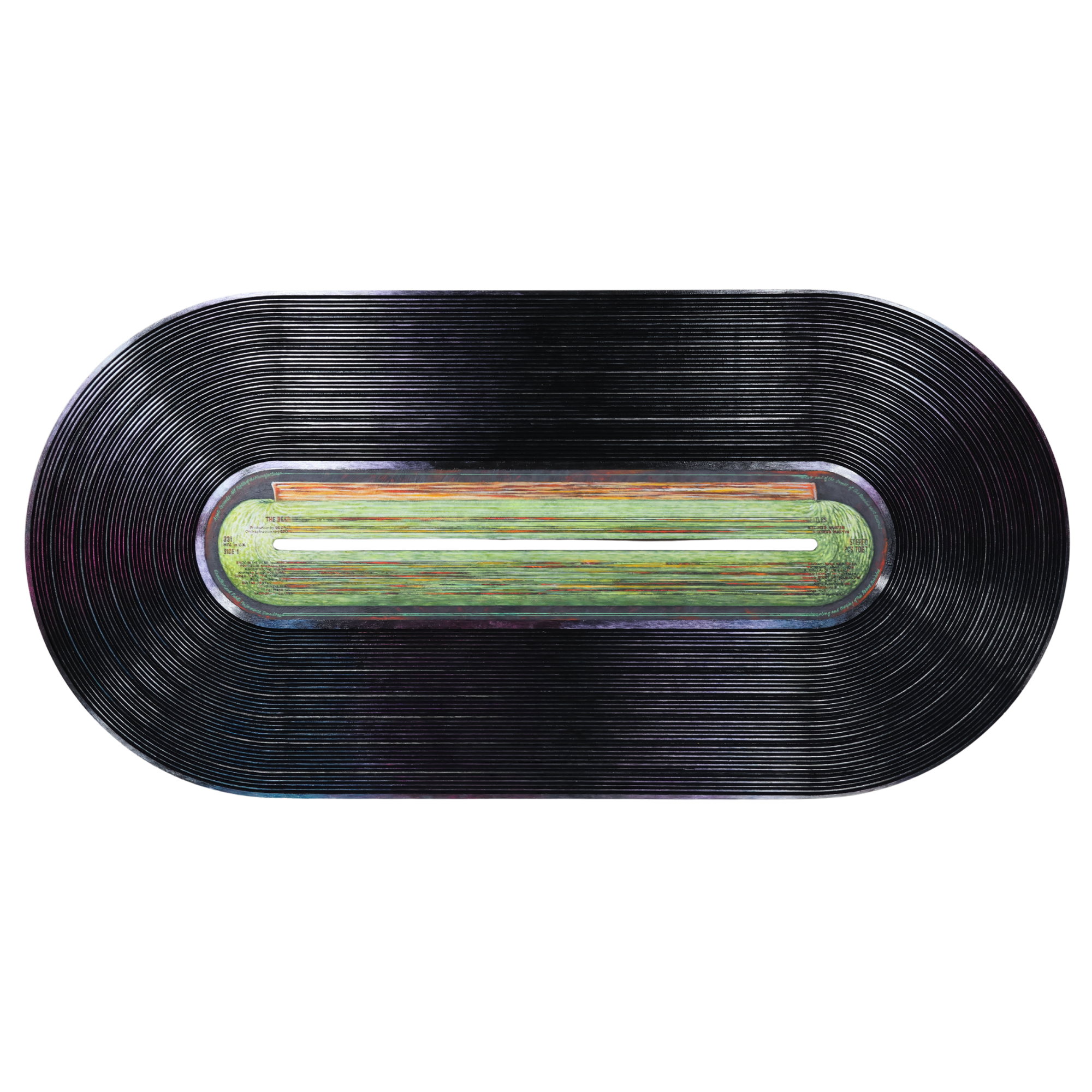 An ode to The Beatles' White Album, this stretched out vinyl captures all the hits and vibes from 1968. We love the iridescent effect and backlighting on this piece!