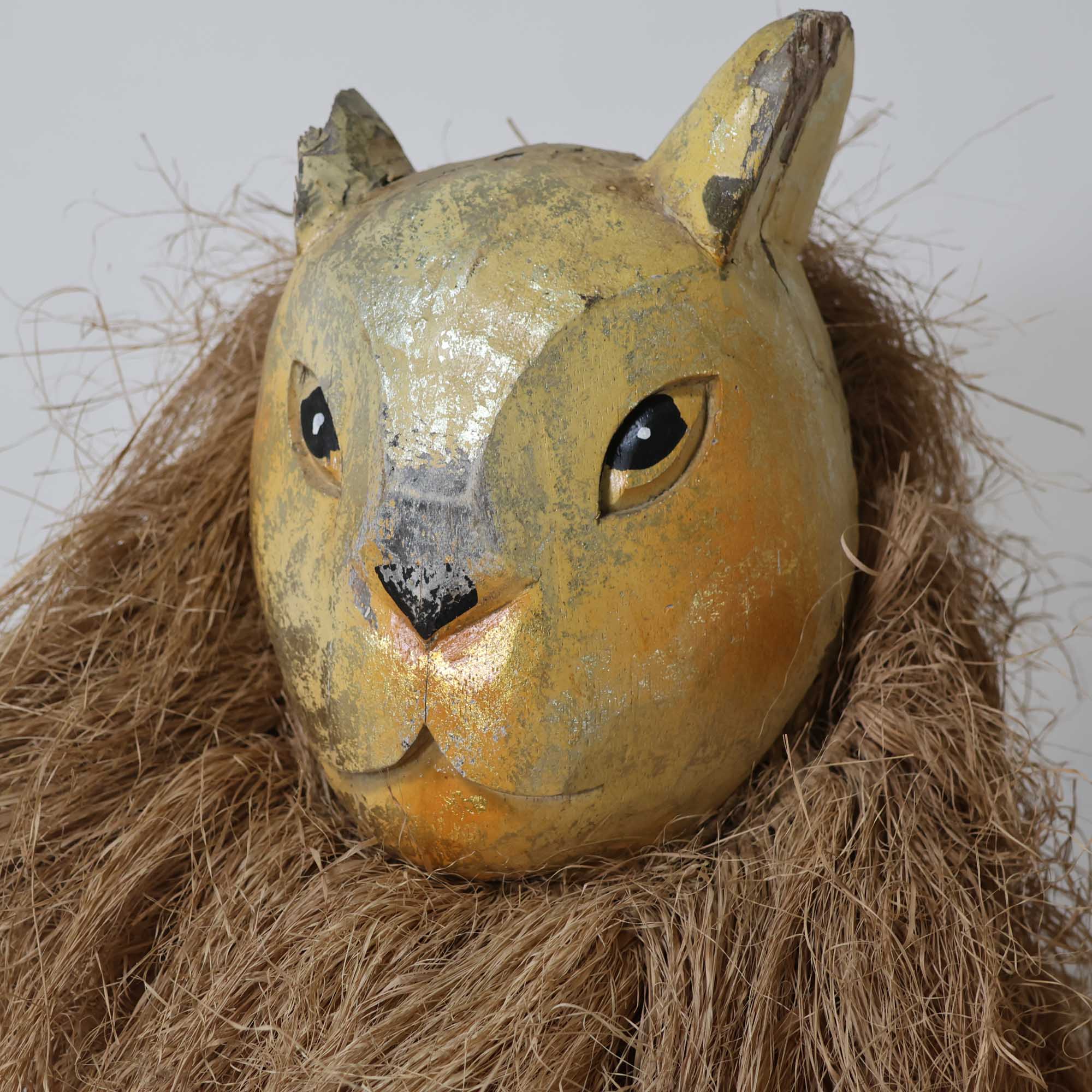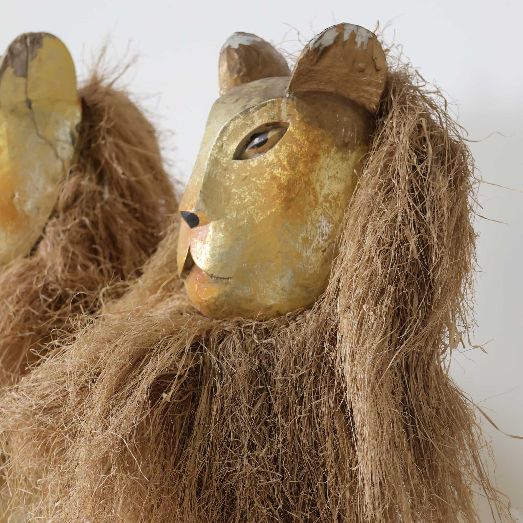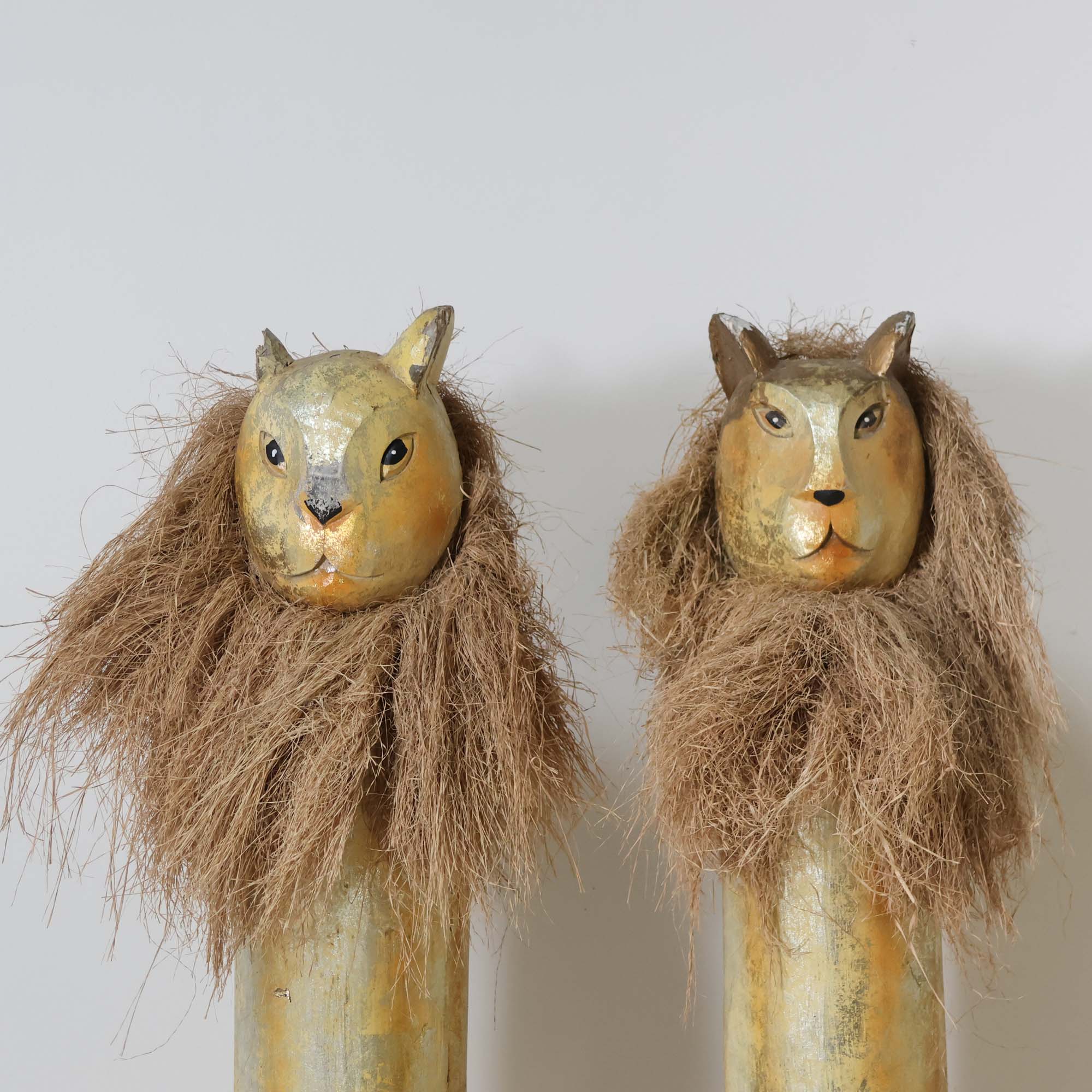 Pair of Wood Carved Lion Posts