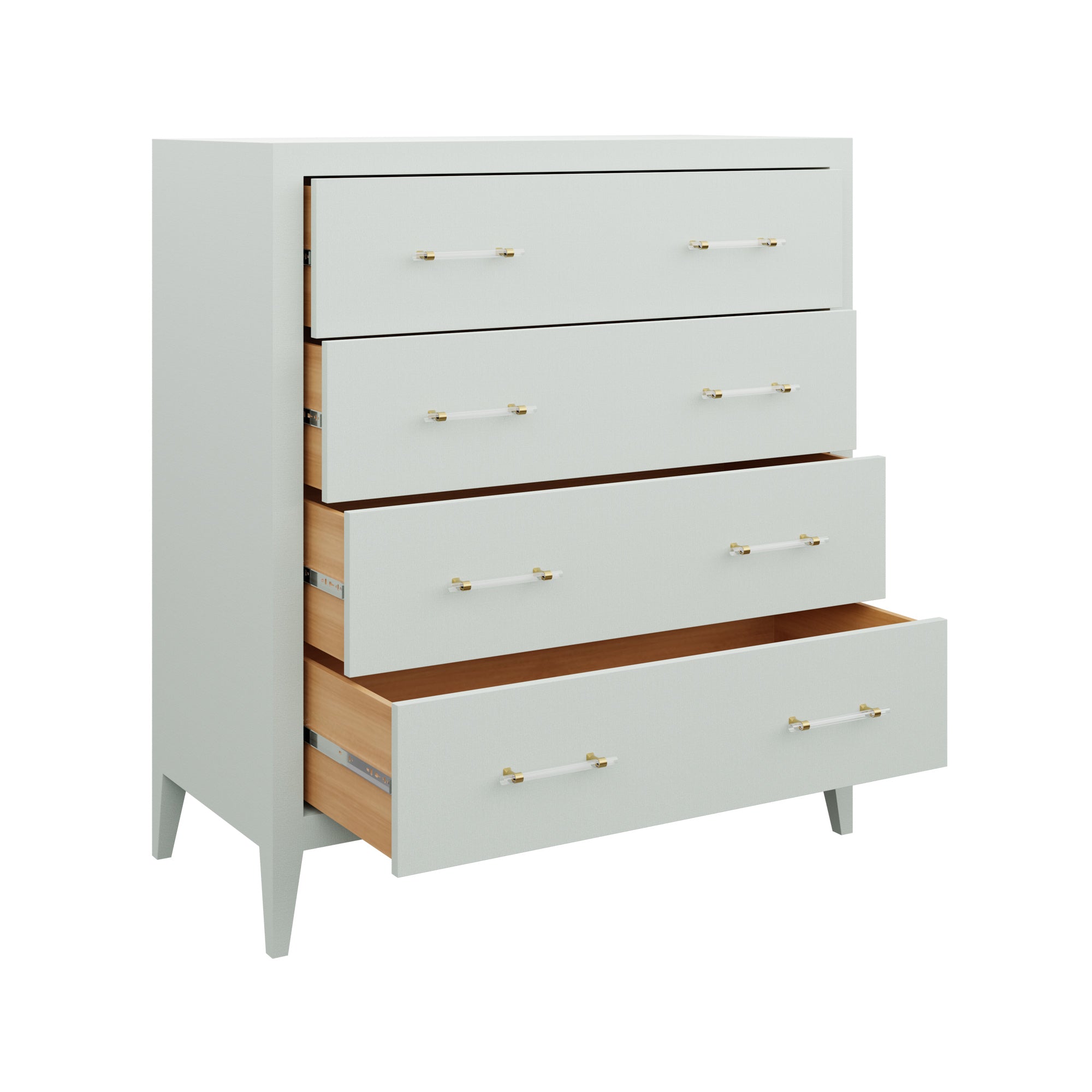 Our bespoke Chelsea Tall Boy Dresser is a smart storage solution for those lacking in square footage. Four roomy drawers will shine with the hardware of your choice.