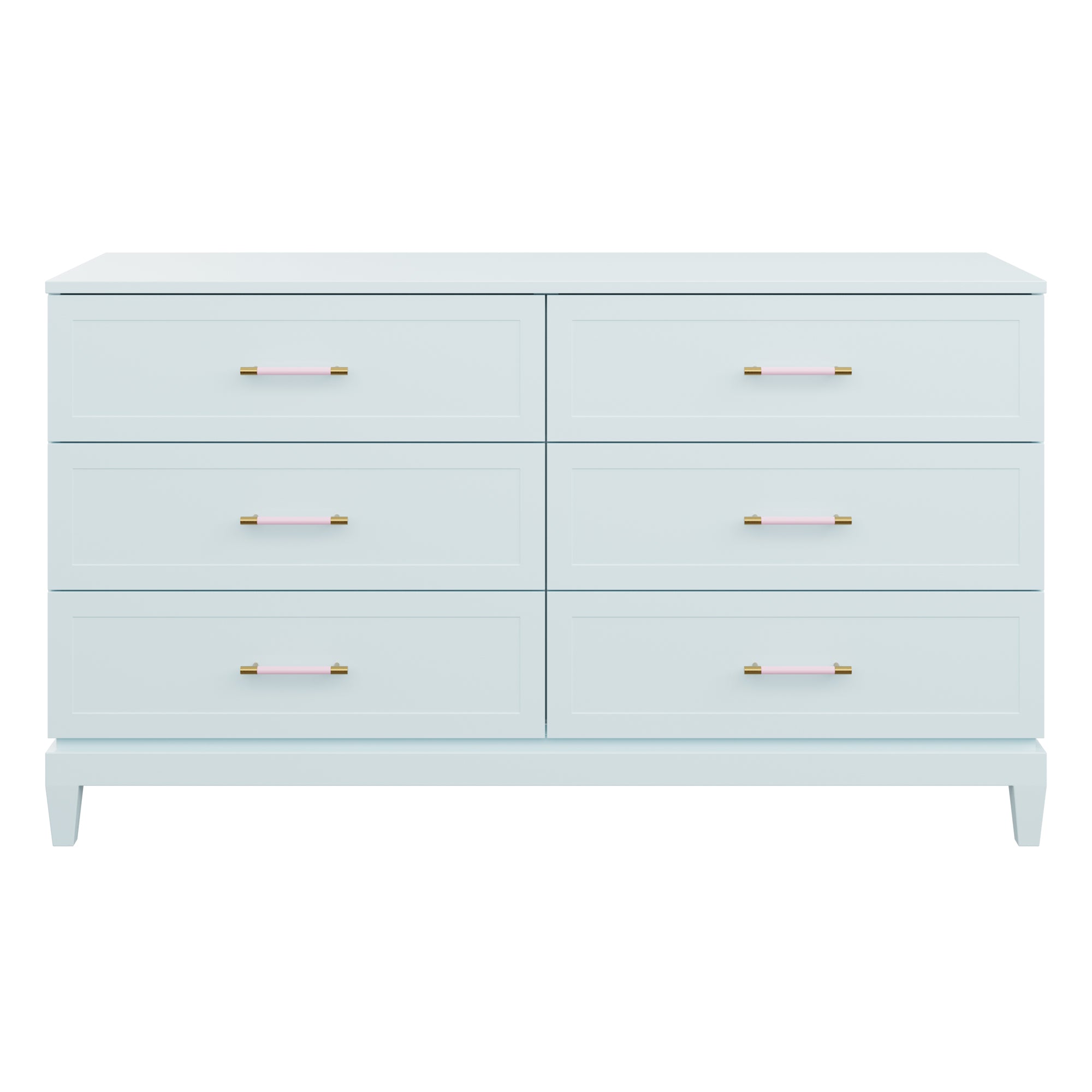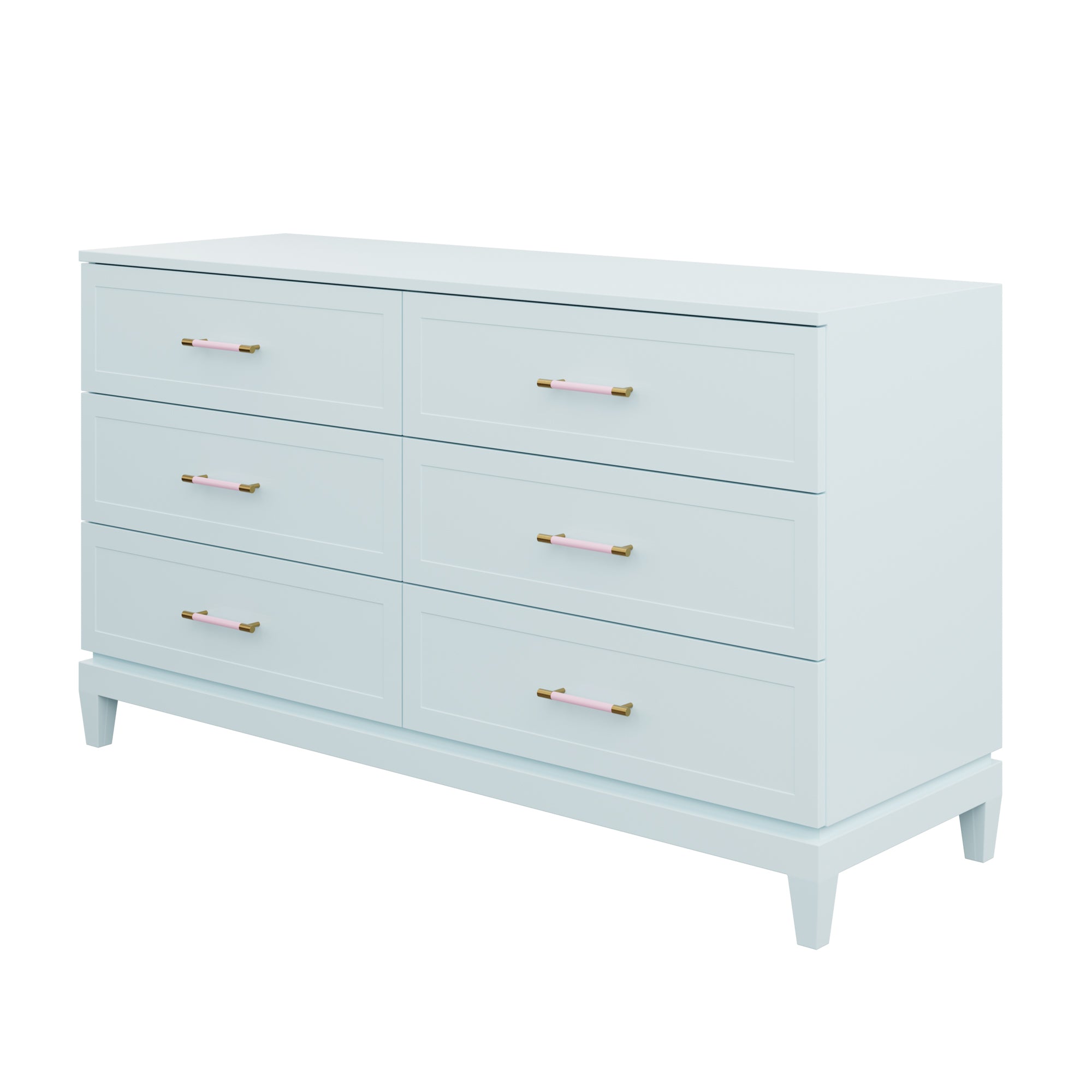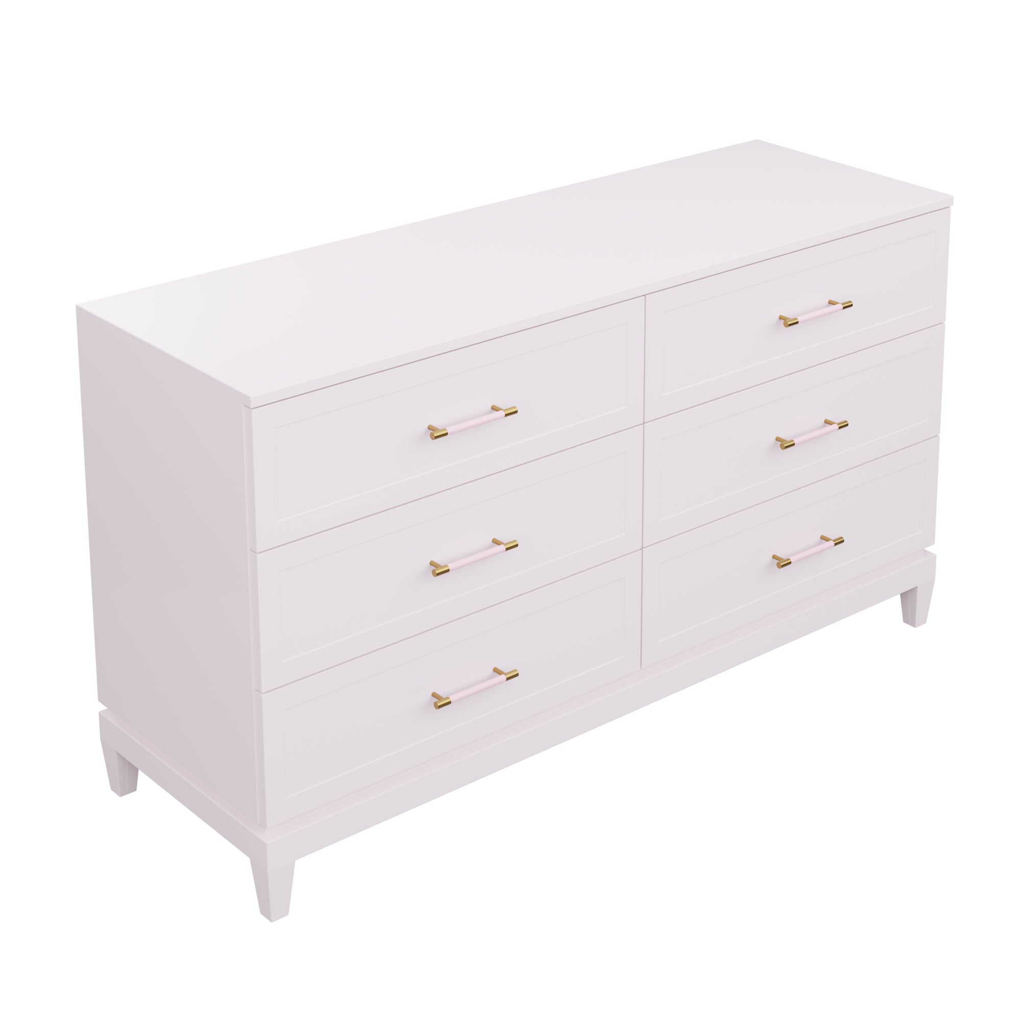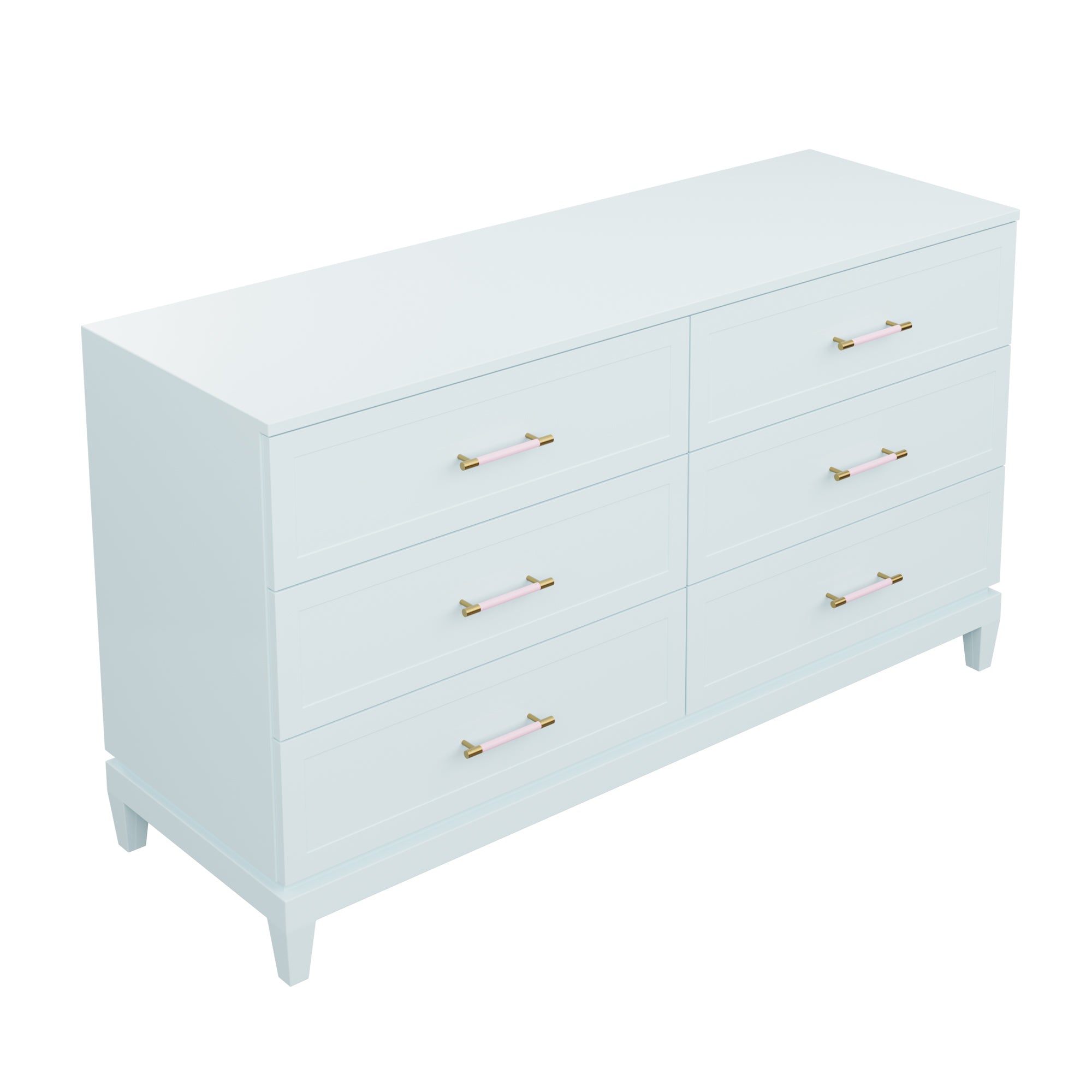 Our bespoke Duchess Dresser features six roomy drawers that make storage a breeze. Choose from our designer-curated lacquer selections that compliment the pink leather and brass or acrylic and brass handles.