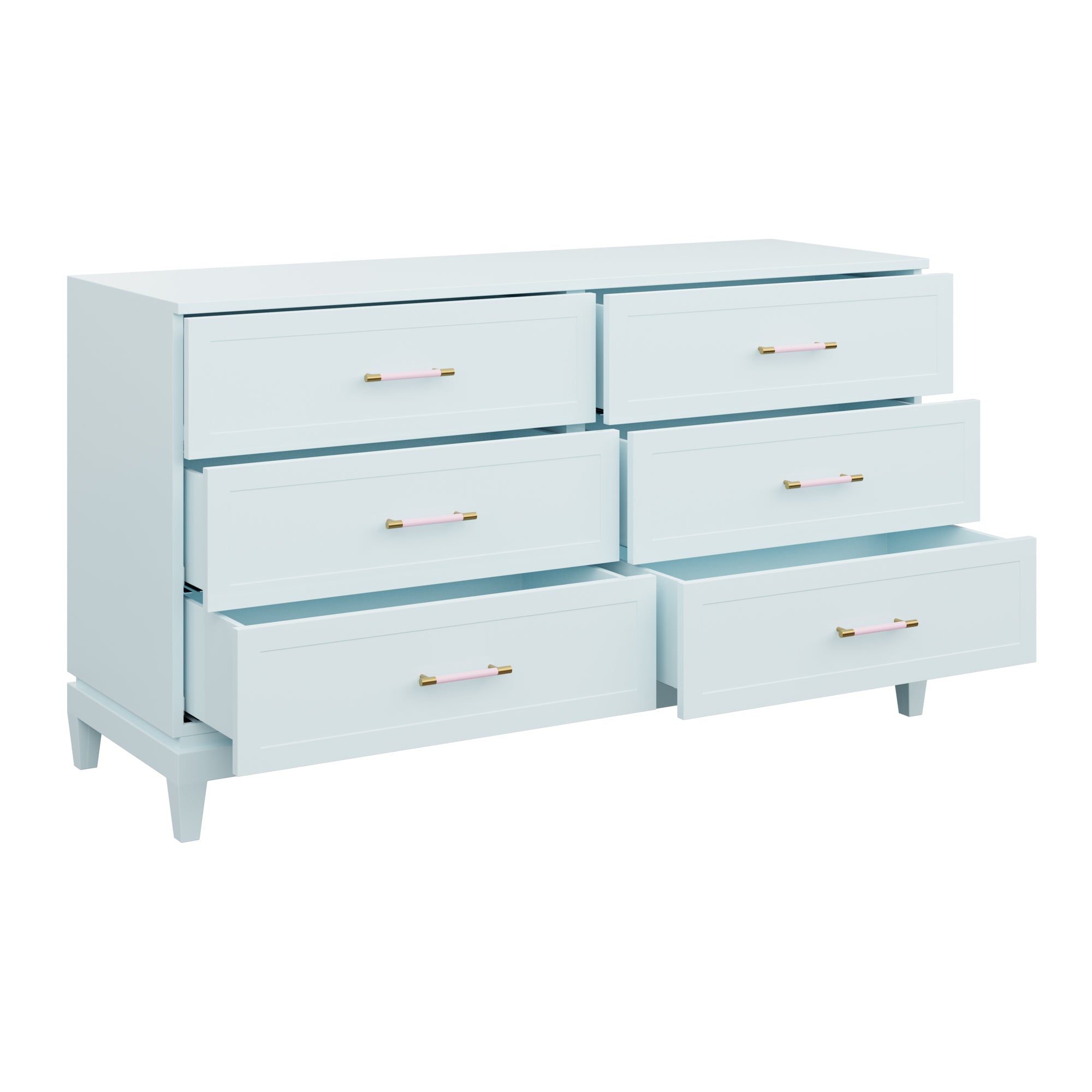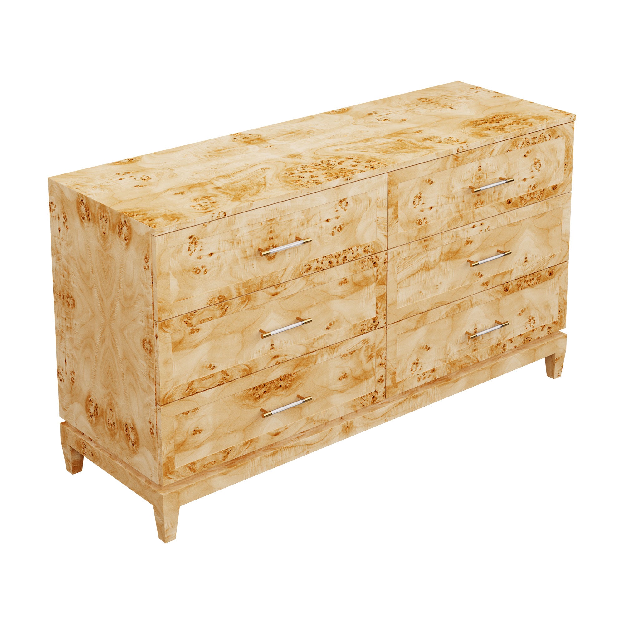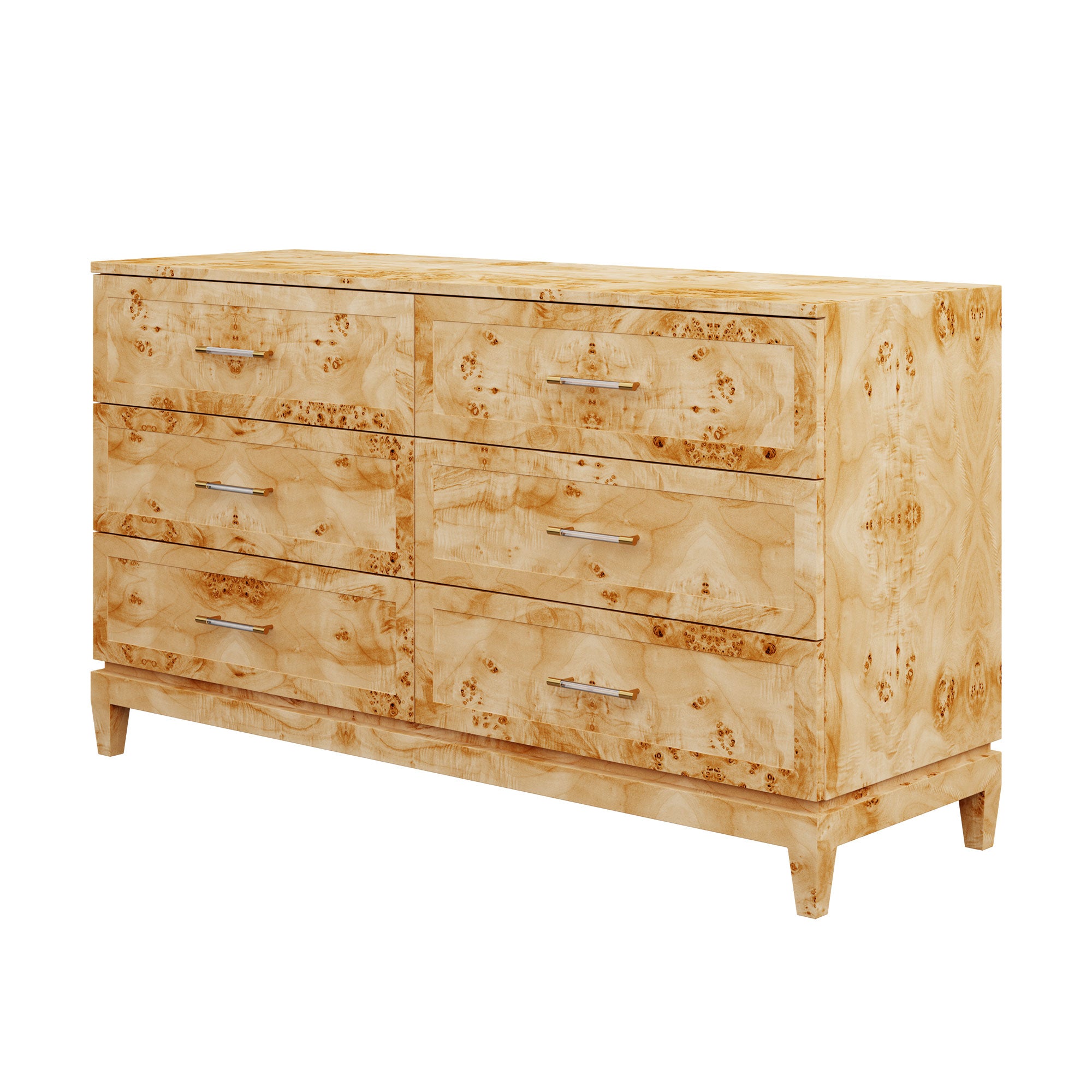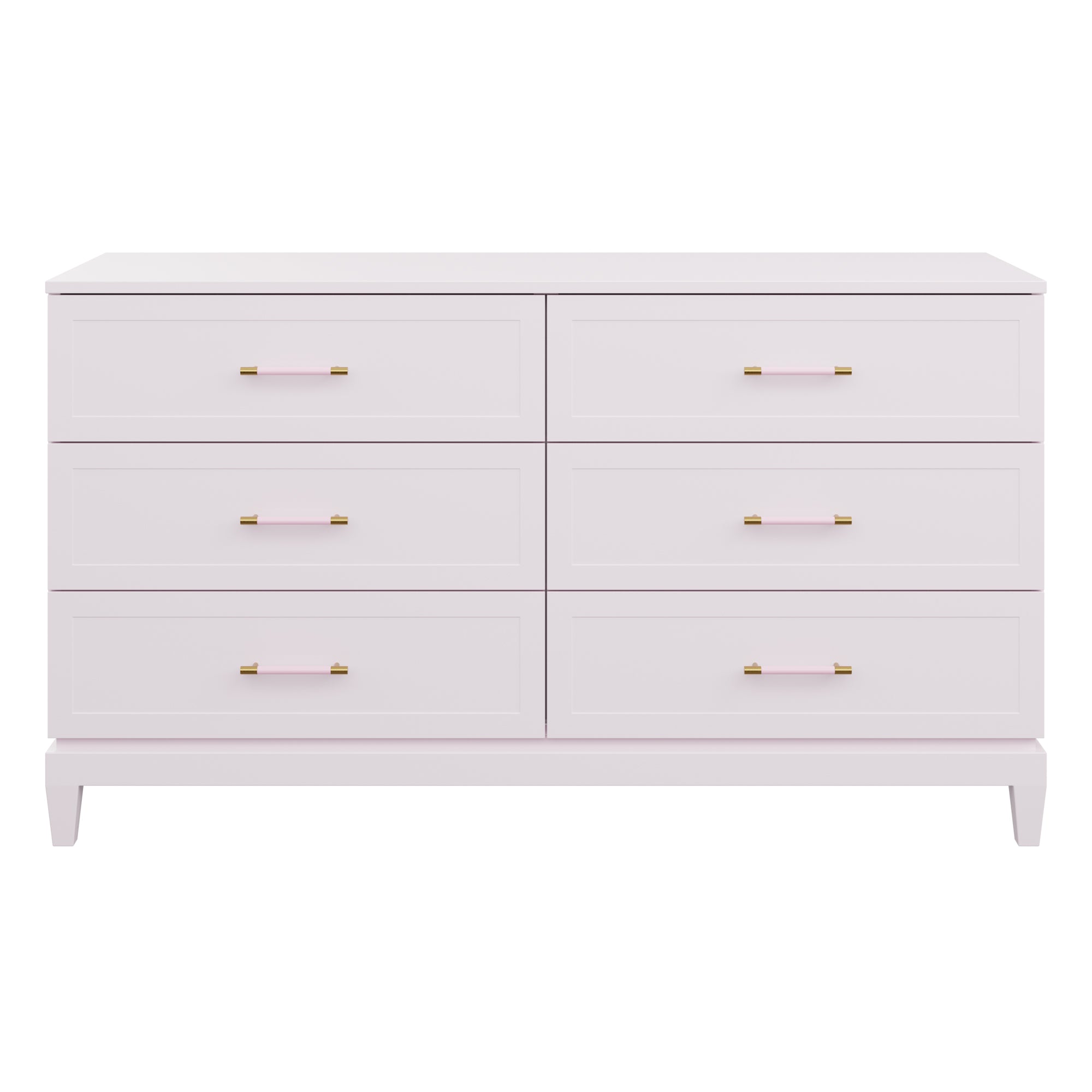 Our bespoke Duchess Dresser features six roomy drawers that make storage a breeze. Choose from our designer-curated lacquer selections that compliment the pink leather and brass or acrylic and brass handles.