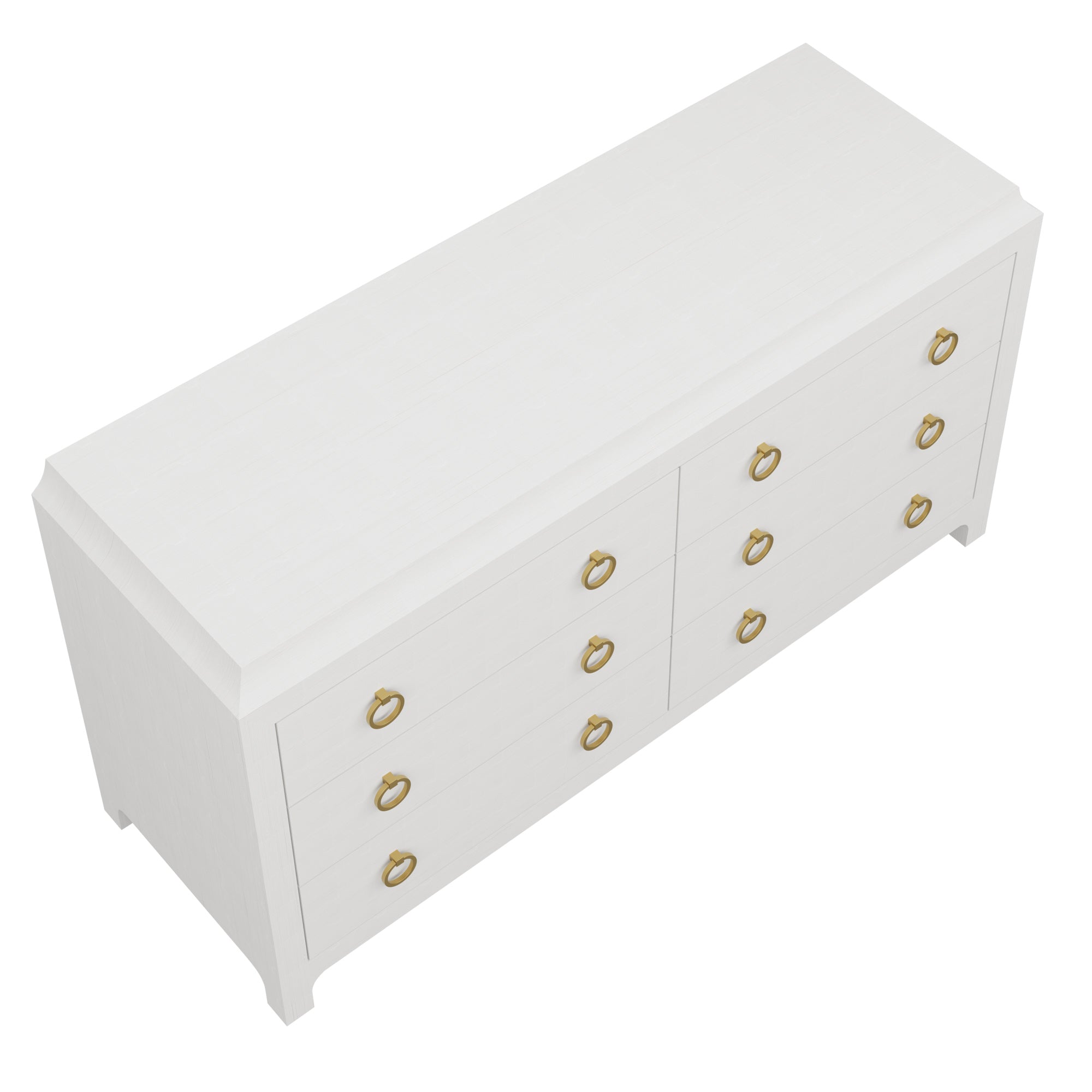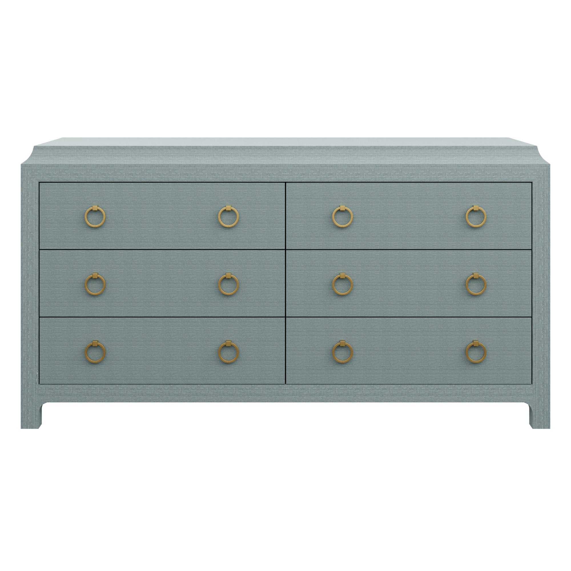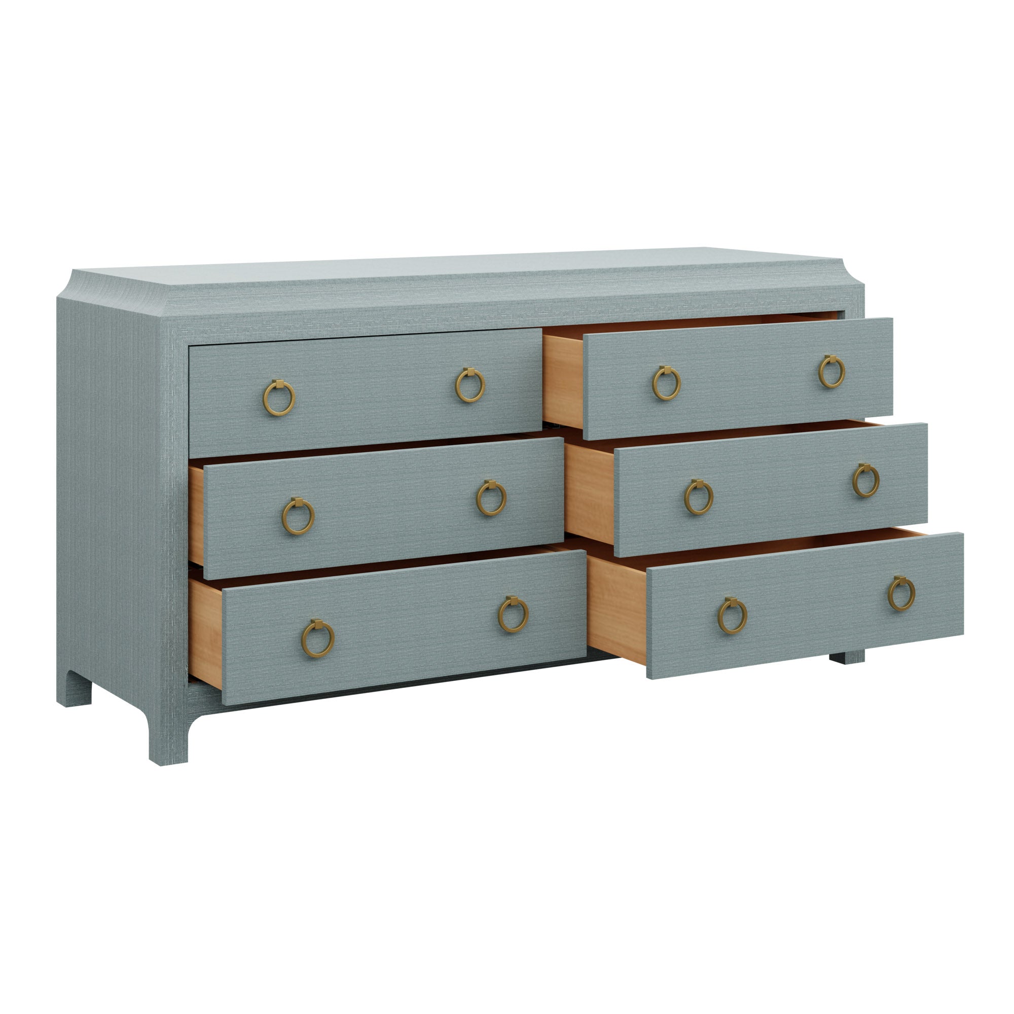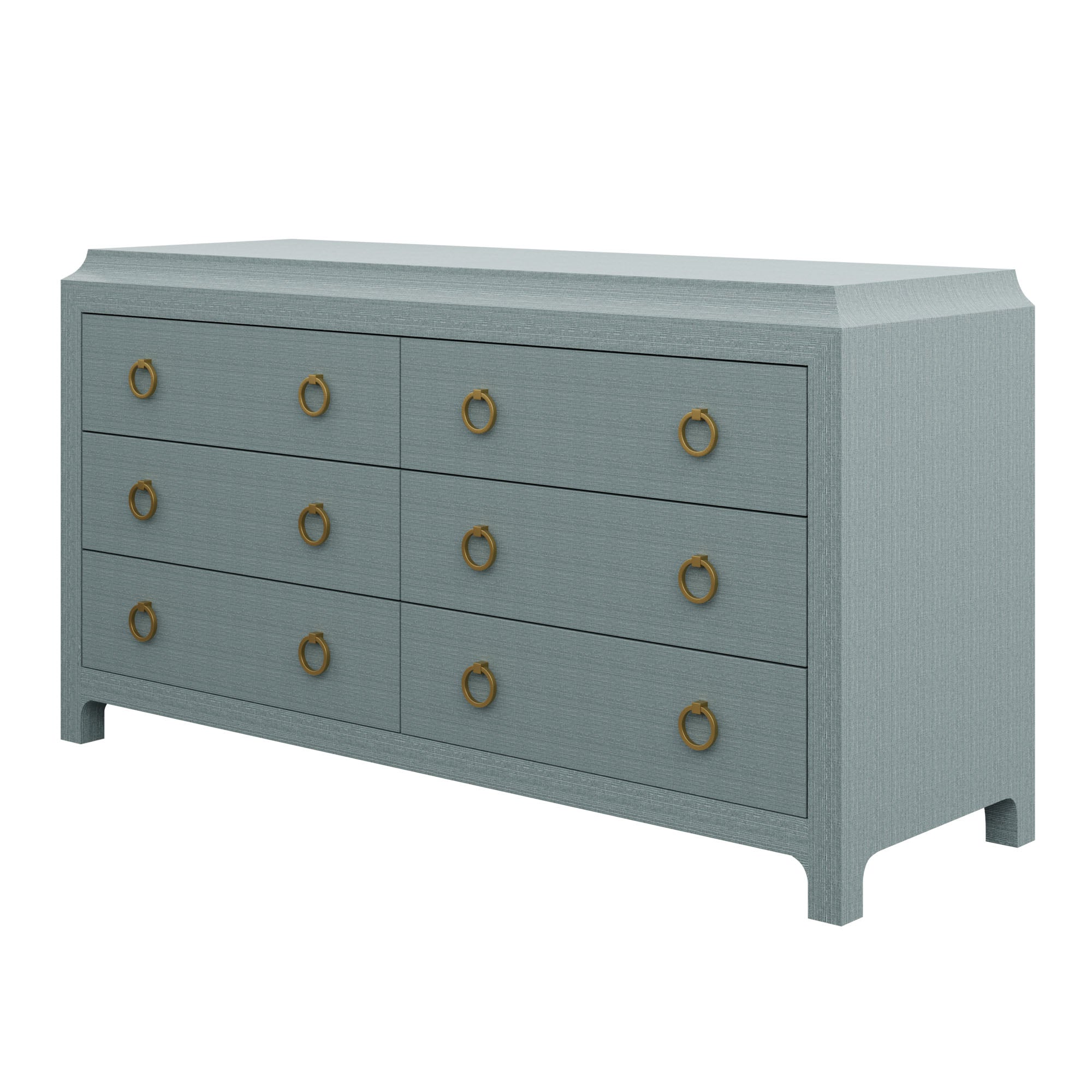 Our bespoke Jackie Dresser features six roomy soft-close drawers that make storage a breeze with brass ring pulls. Choose from our designer-curated selections in grasscloth or lacquer.
