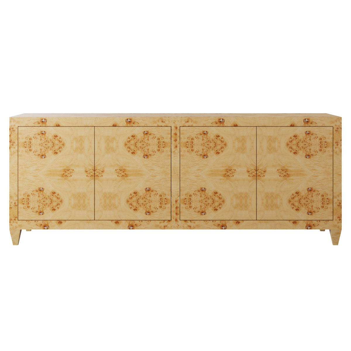 The clean, elegant lines of our Bespoke Stella Credenza are designed to let the stunning burl wood take center stage. Thoughtfully crafted, it features two cabinets with push-close latches and an adjustable shelf in each for versatile storage.