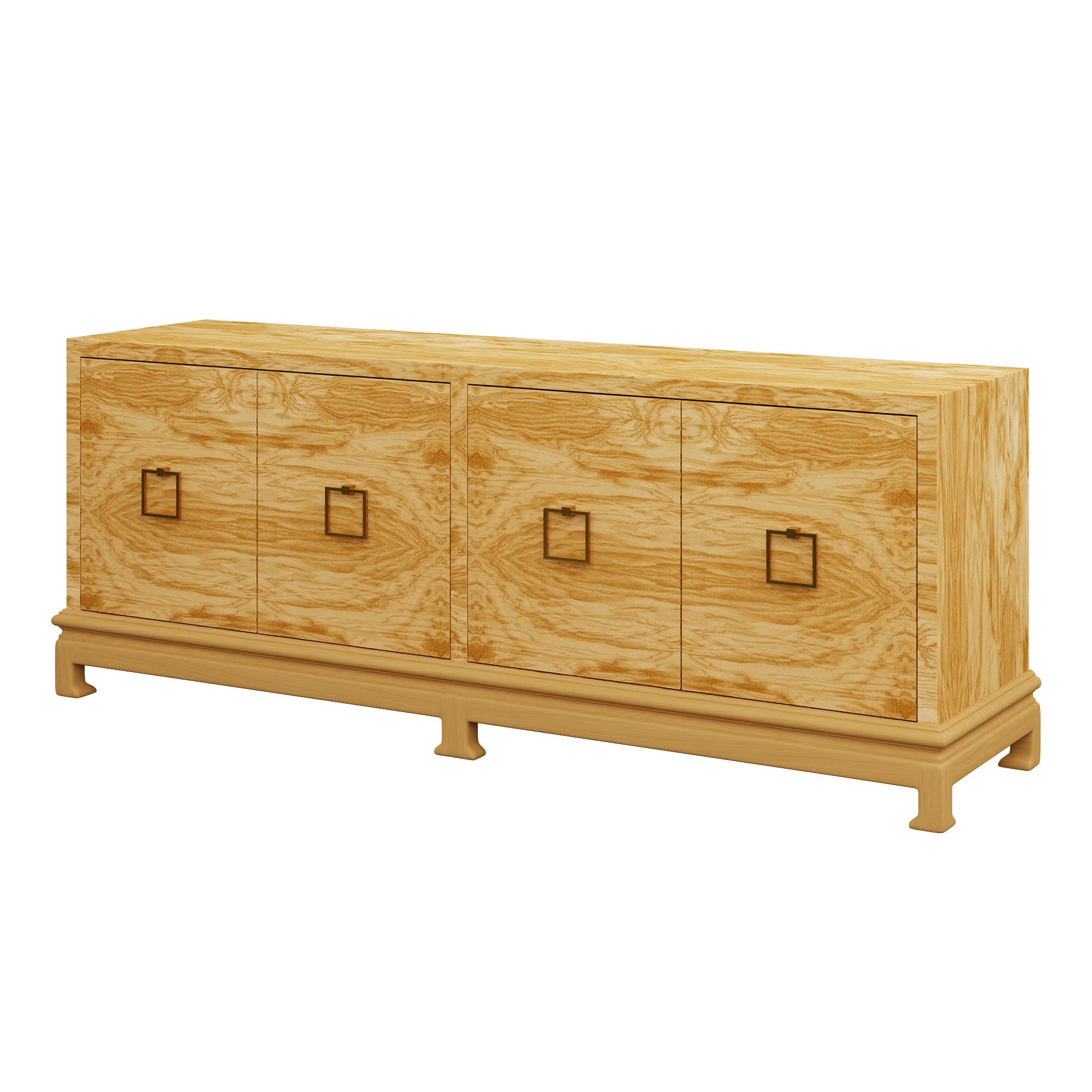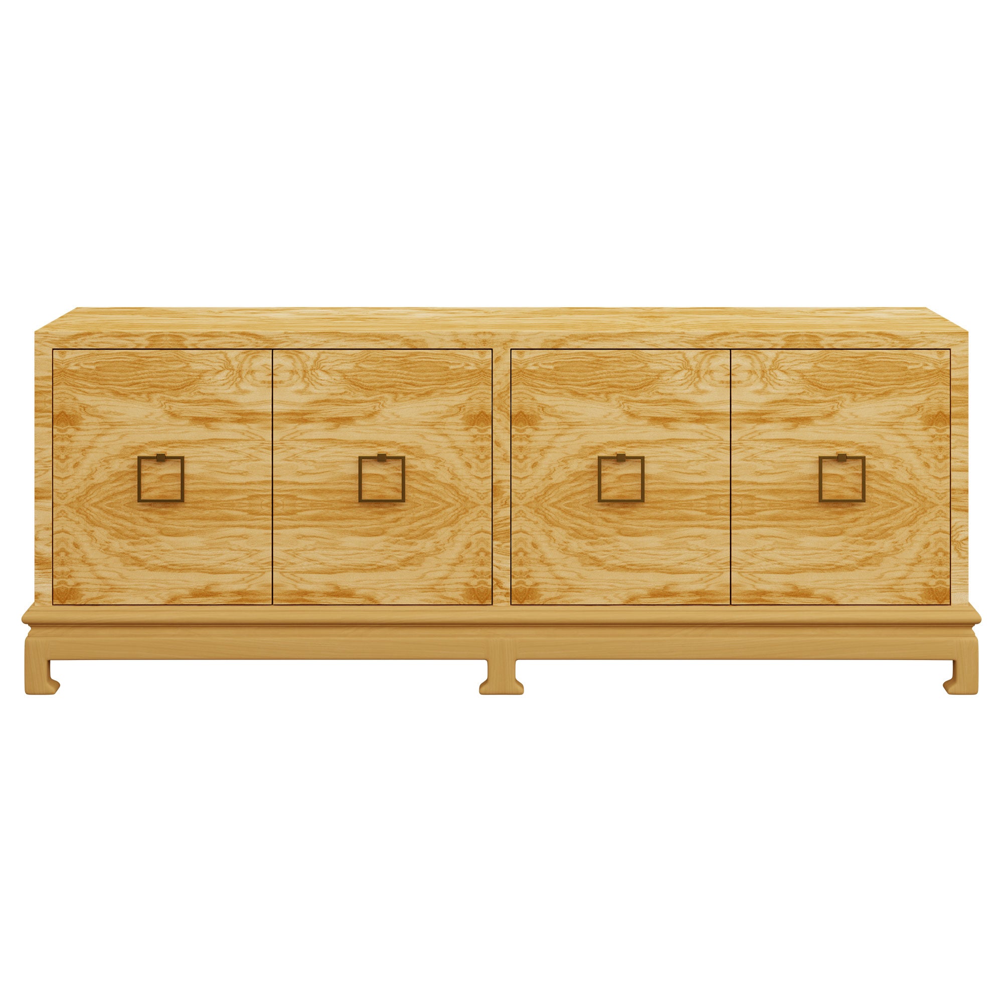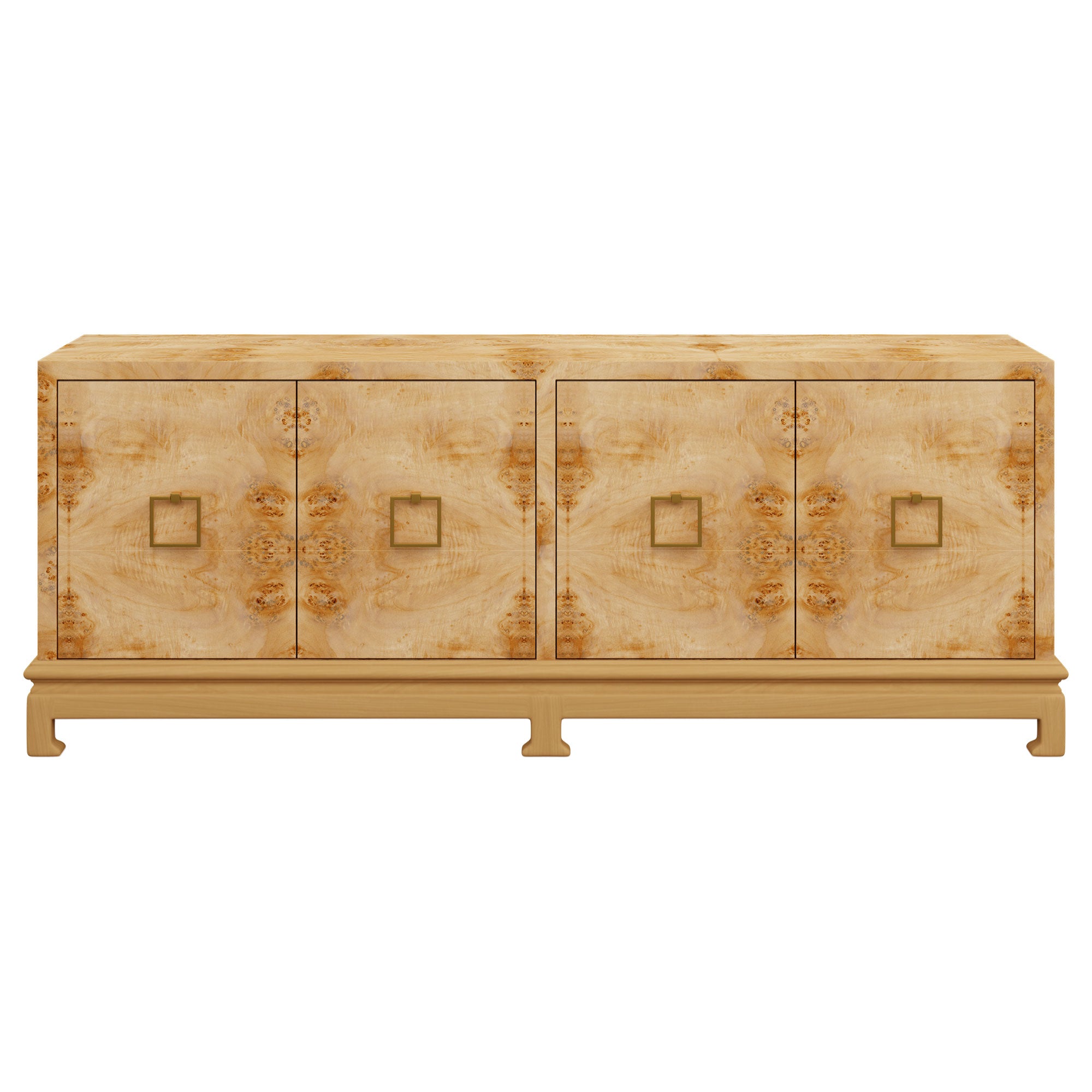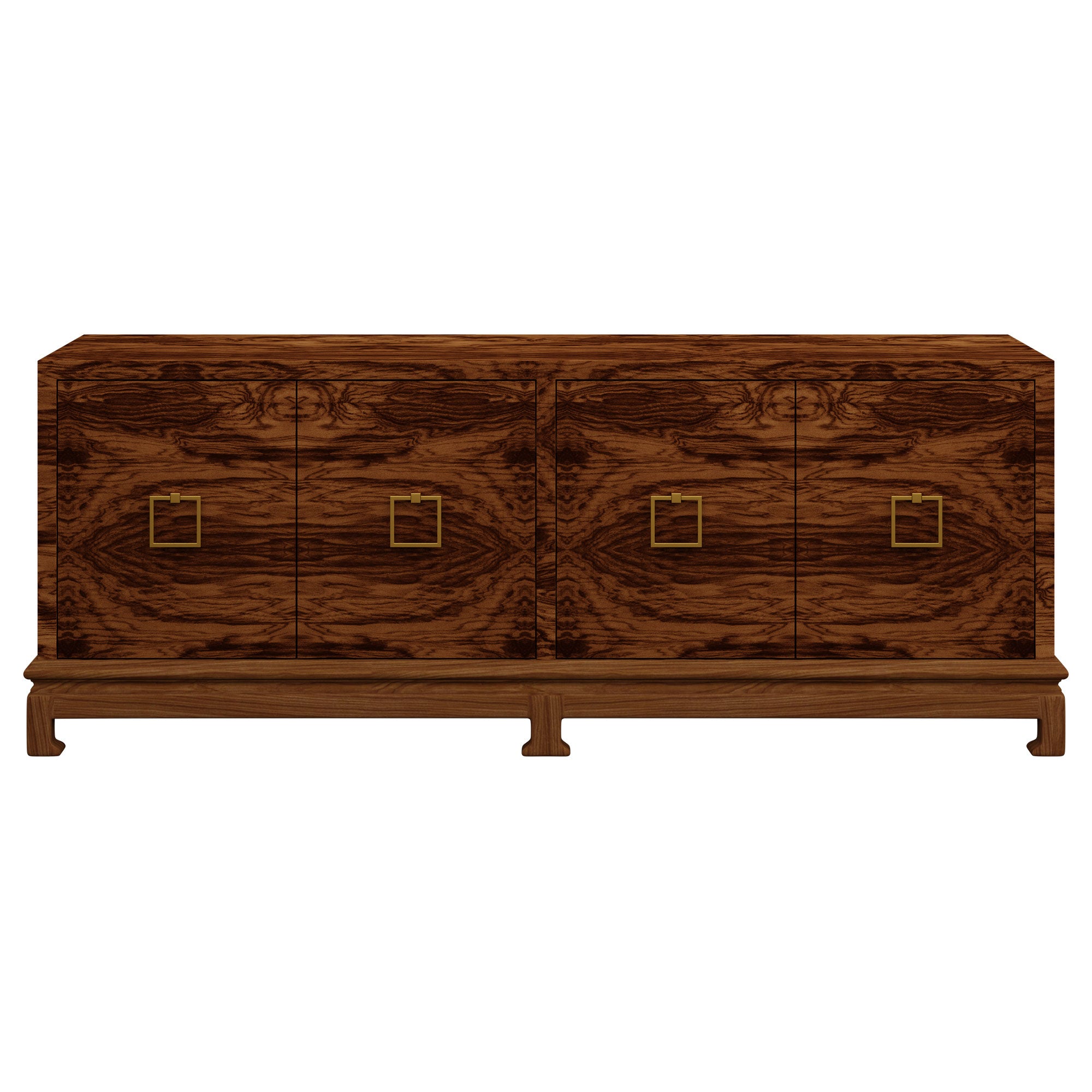 Our bespoke Yates Credenza features modernized Ming legs for a lewk both current and classic. Square brass ring hardware pops on the two cabinets with one adjustable shelf in each.