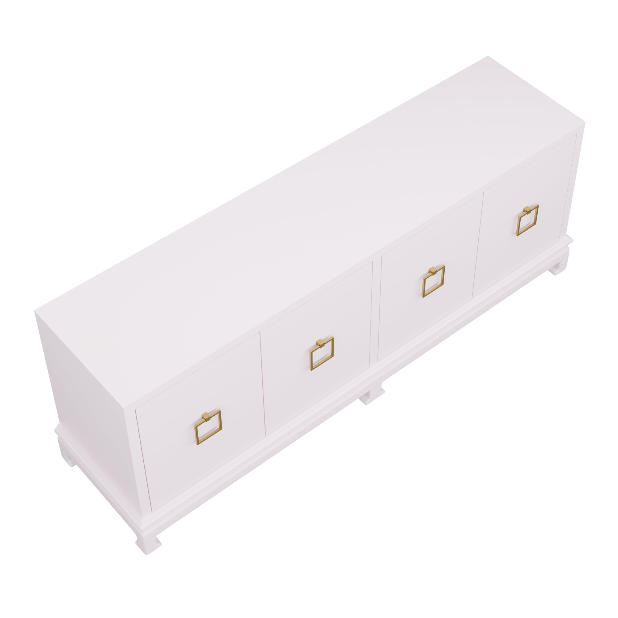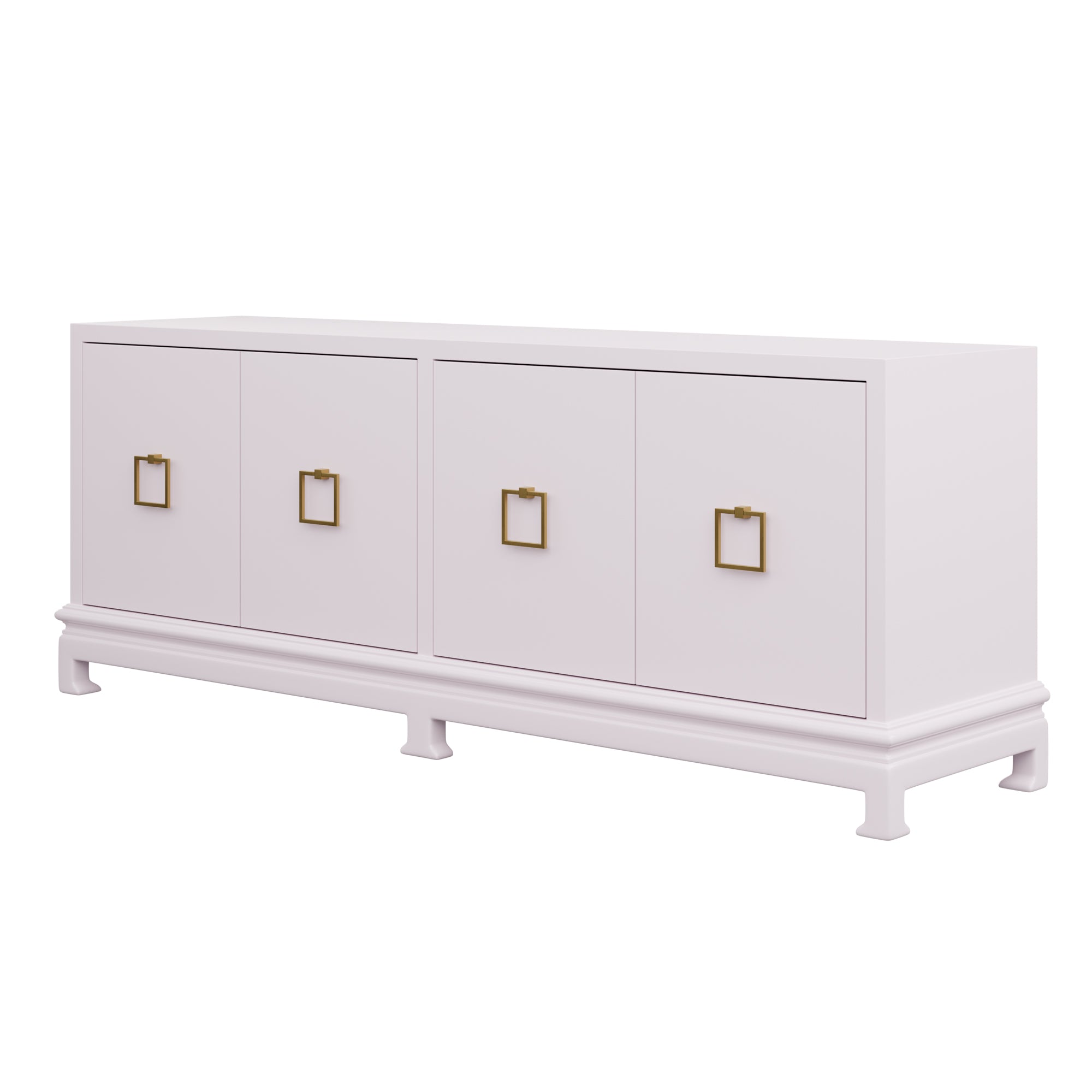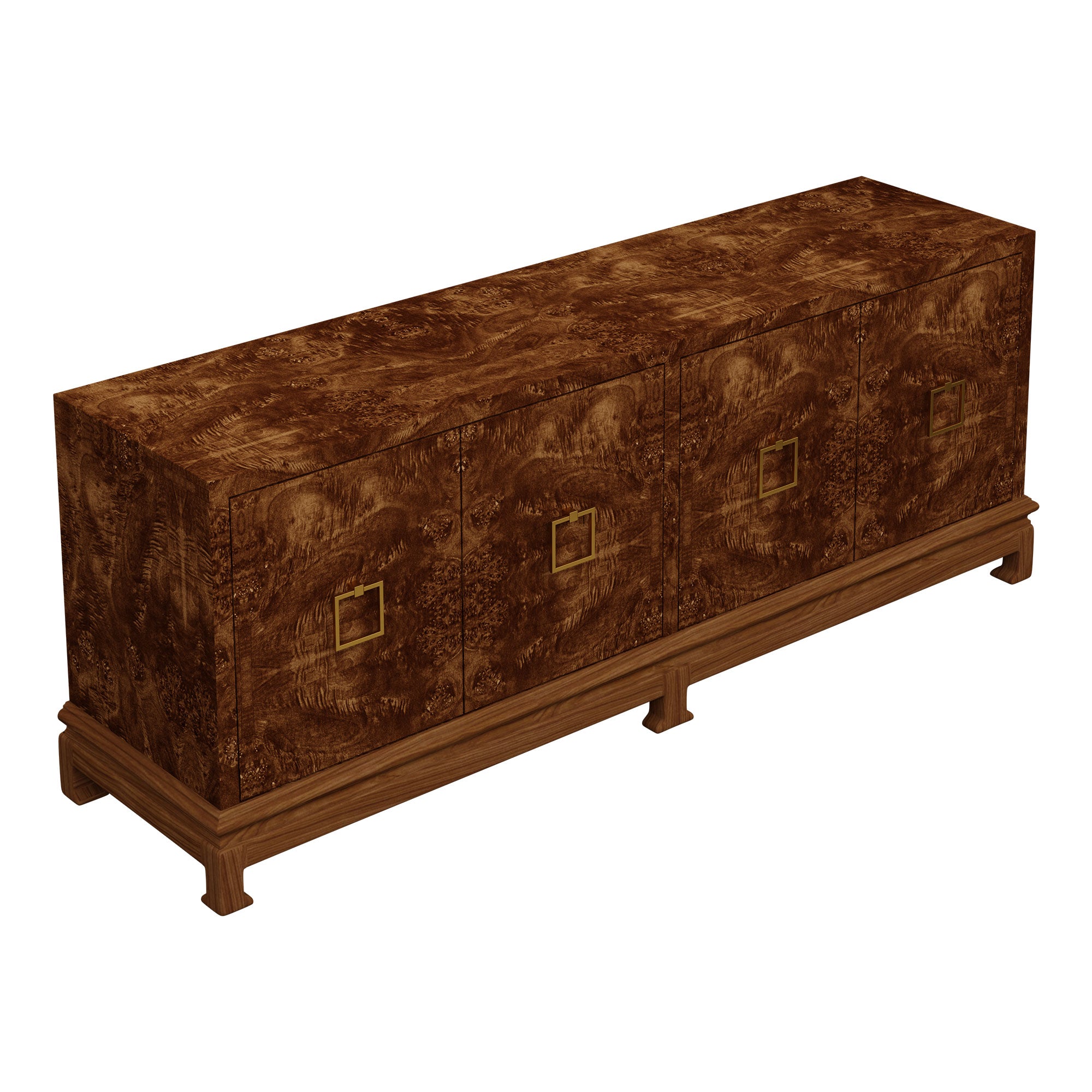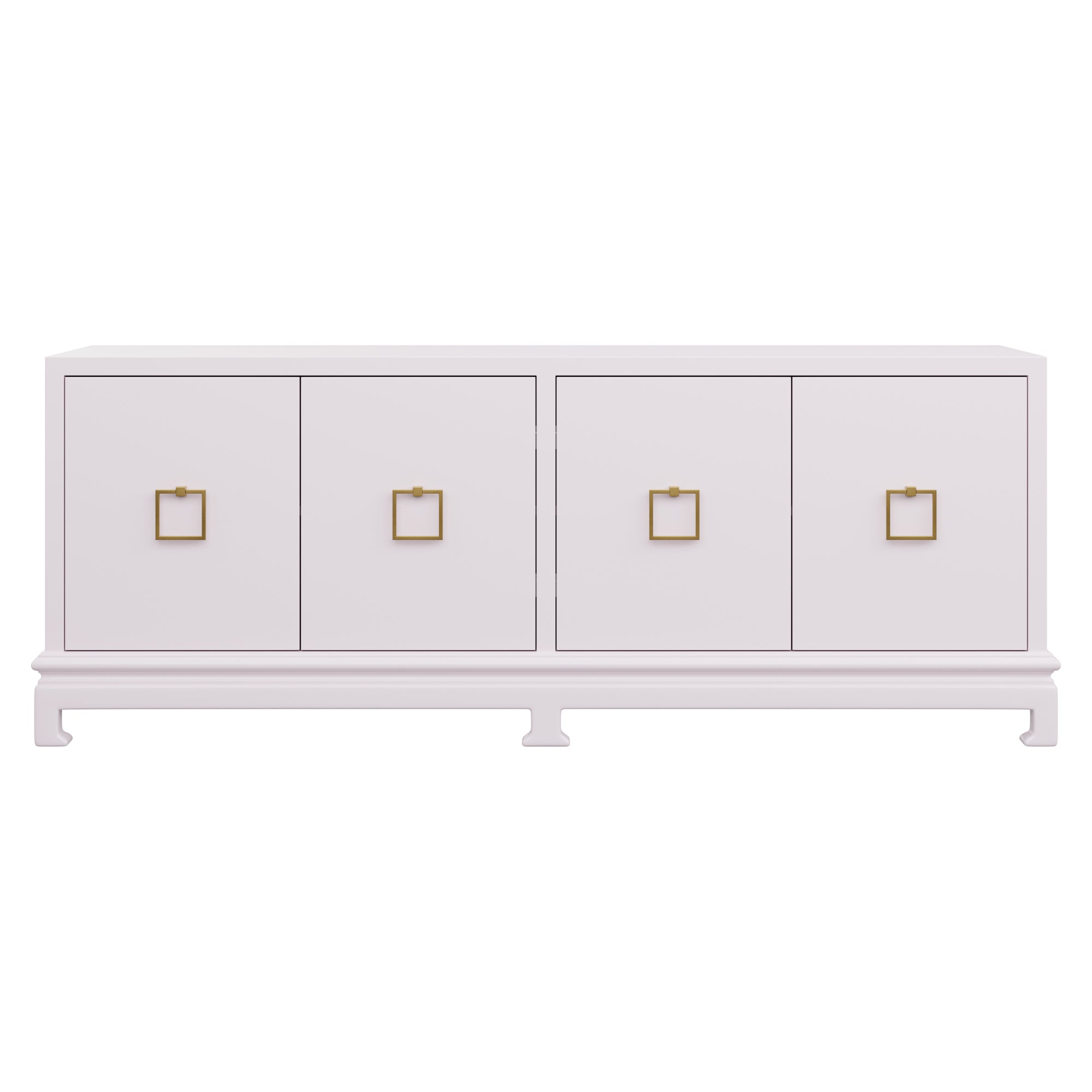 Our bespoke Yates Credenza features modernized Ming legs for a lewk both current and classic. Square brass ring hardware pops on the two cabinets with one adjustable shelf in each.