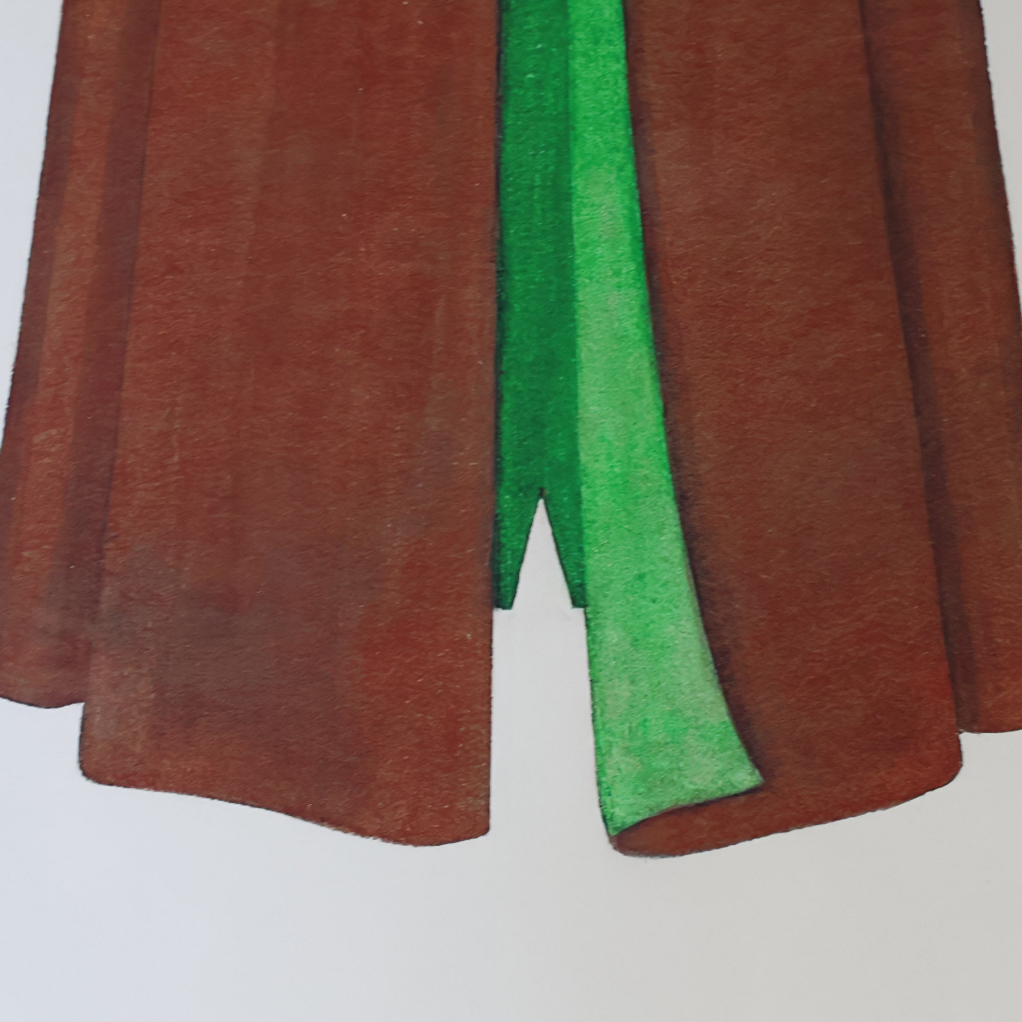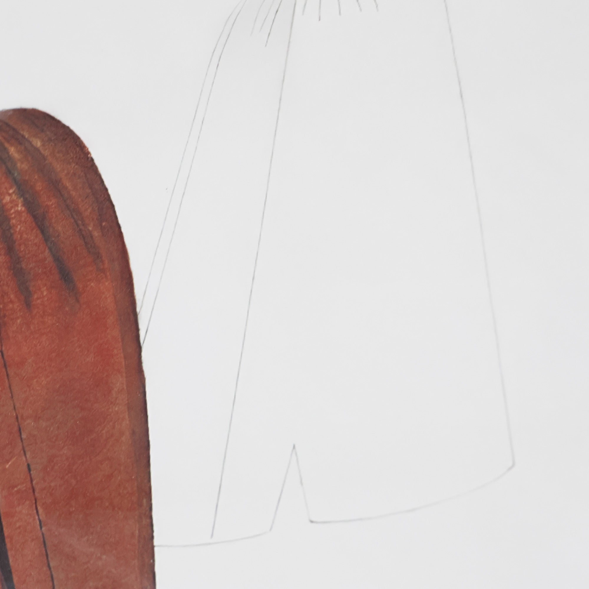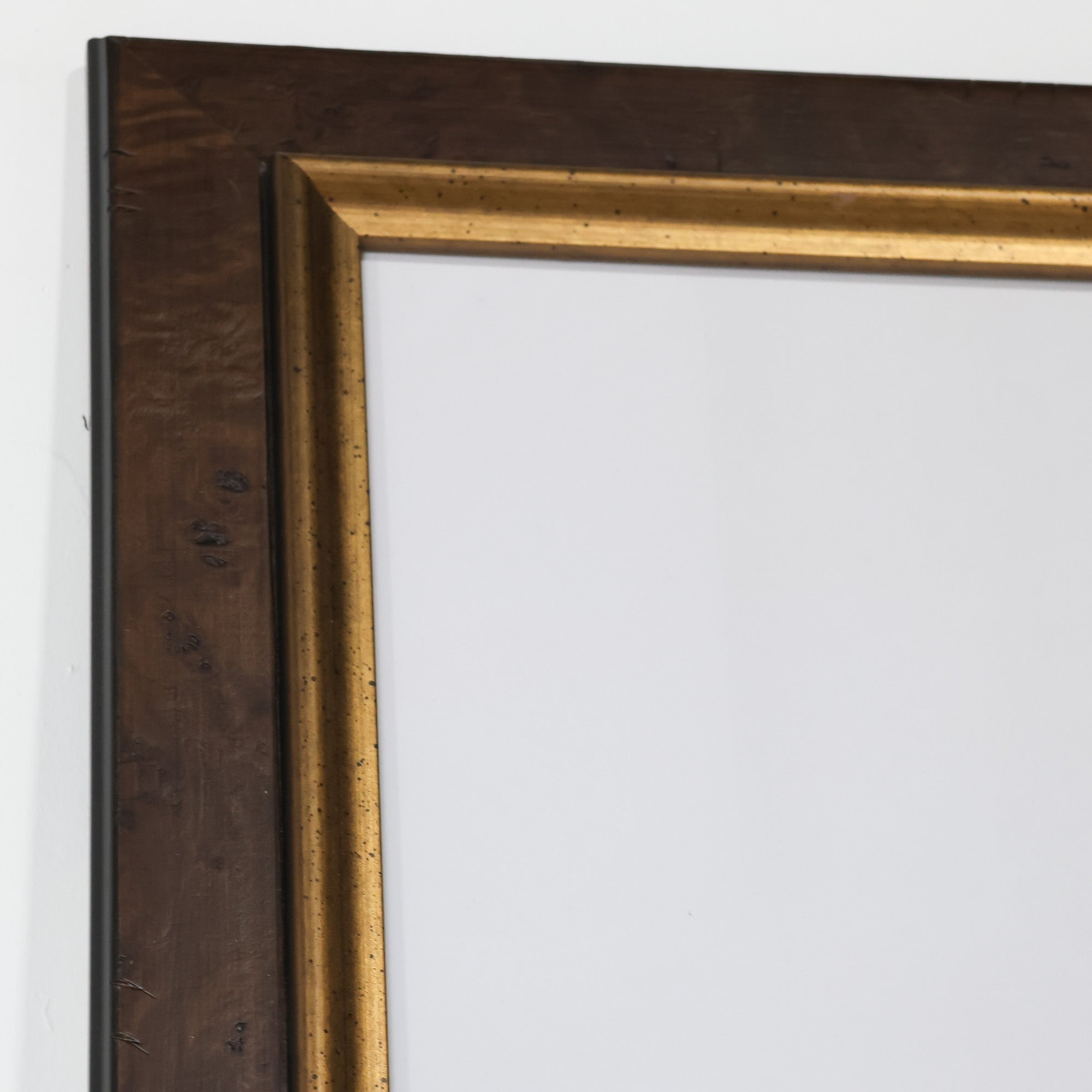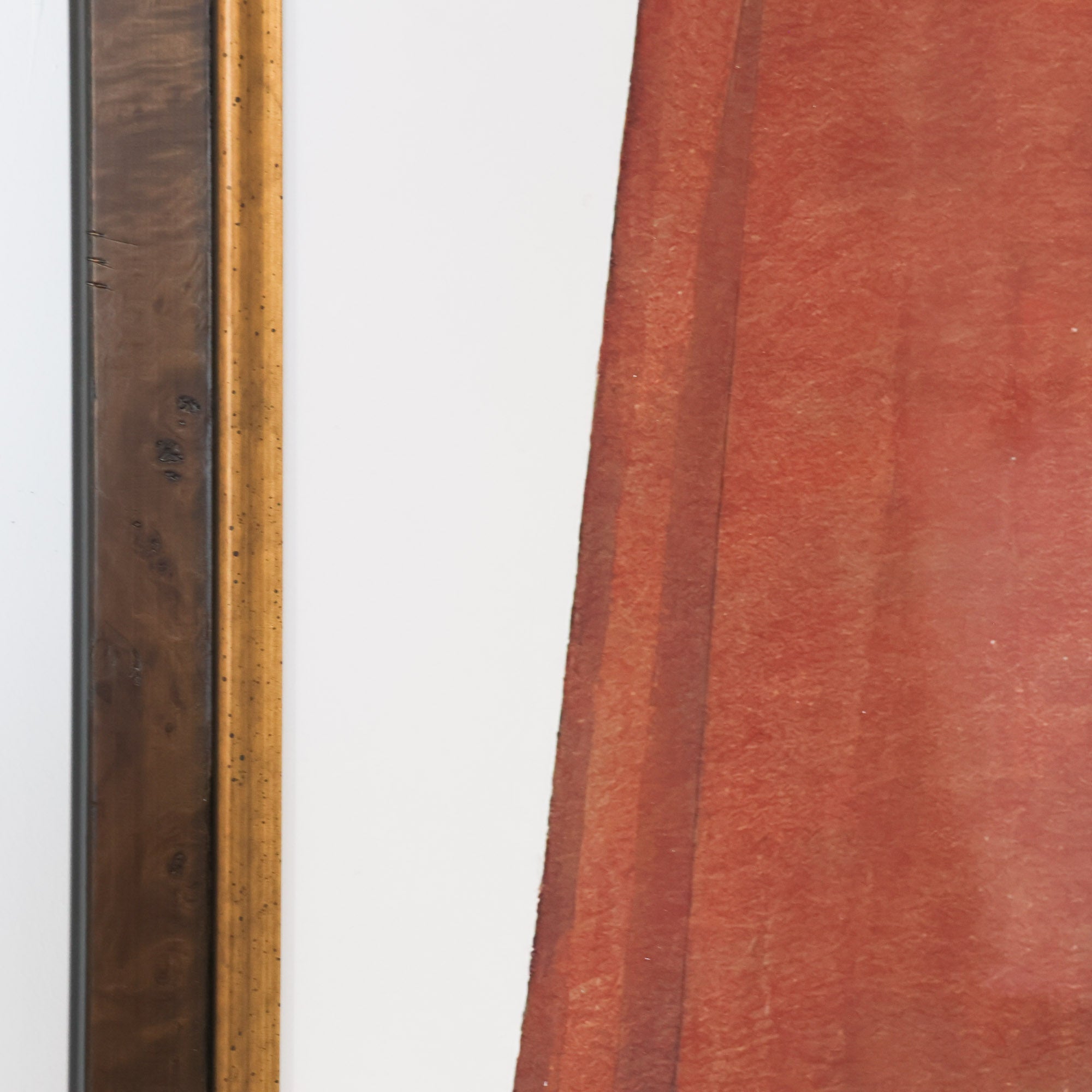 This print of the 1937 painting "Cape" by Marie Mitchell shines in a gorgeous dark burl wood frame with gold trim. The rich complementary colors are eye-catching and would add visual interest to any space.