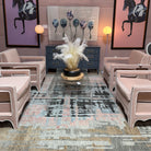 Soft geometry, strong presence. The Santa Fe High-Low Rug plays with color and form in a painterly mix of blush, blue, taupe, and charcoal—like modern art for your floors. Its layered grid and tonal shifts keep things interesting without overpowering the room.