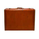 Classic mid-century Samsonite Streamlite suitcase in rich tan leather. Features a structured hard shell, brass hardware, and sturdy top handle. Clean, timeless design—perfect for travel, storage, or décor.
