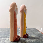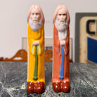 Equal parts absurd, irreverent, and undeniably collectible—this pair of vintage ceramic figurines leans all the way into cheeky humor. From the front, they read as robed, bearded figures in saturated, almost storybook colors… and then the punchline lands.