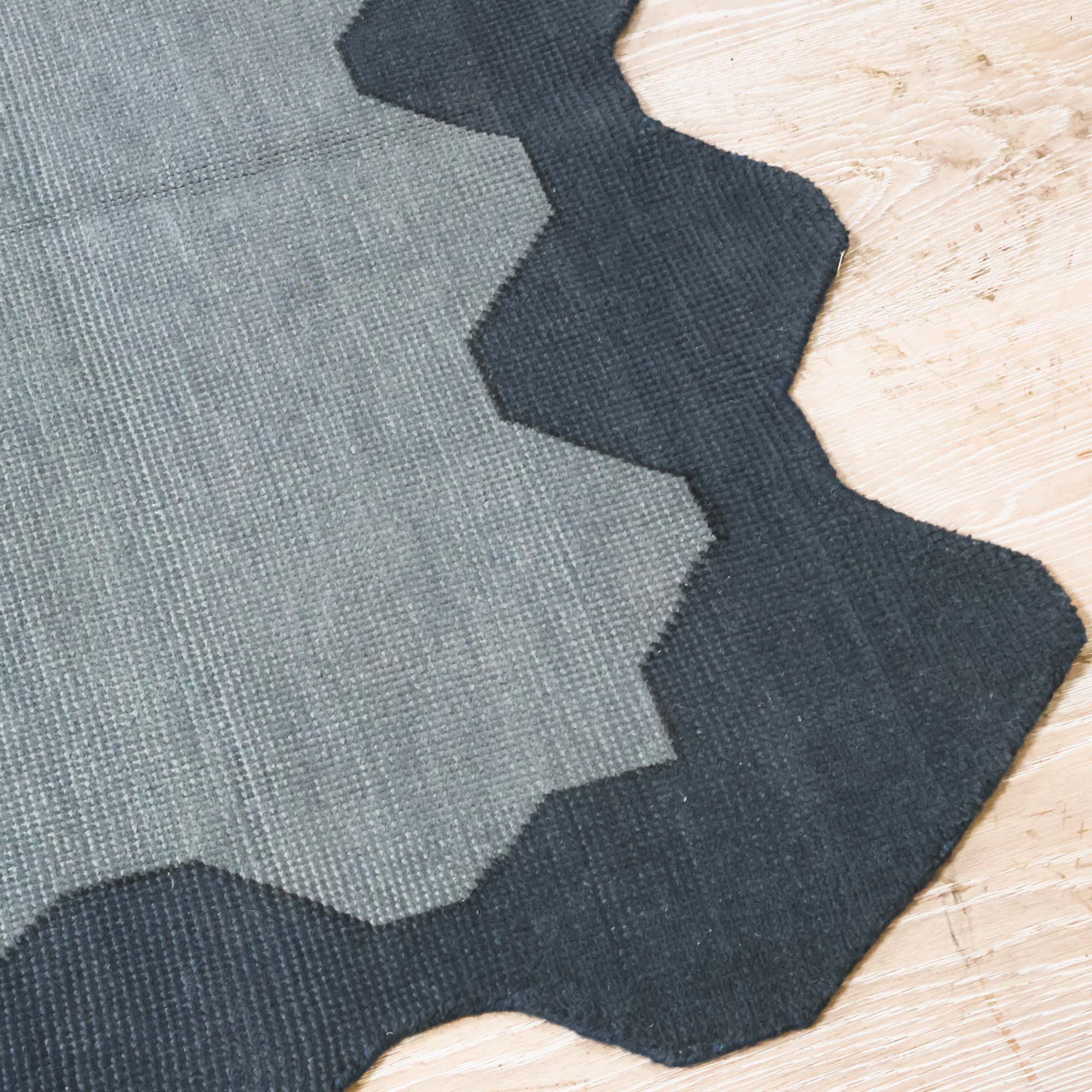 We love the simple twist on our Andrews design. Featuring a geometric scalloped border and dark blue hues, this rug is anything but boring. This custom wool rug was designed by Scout and is hand knotted by artisans in India.