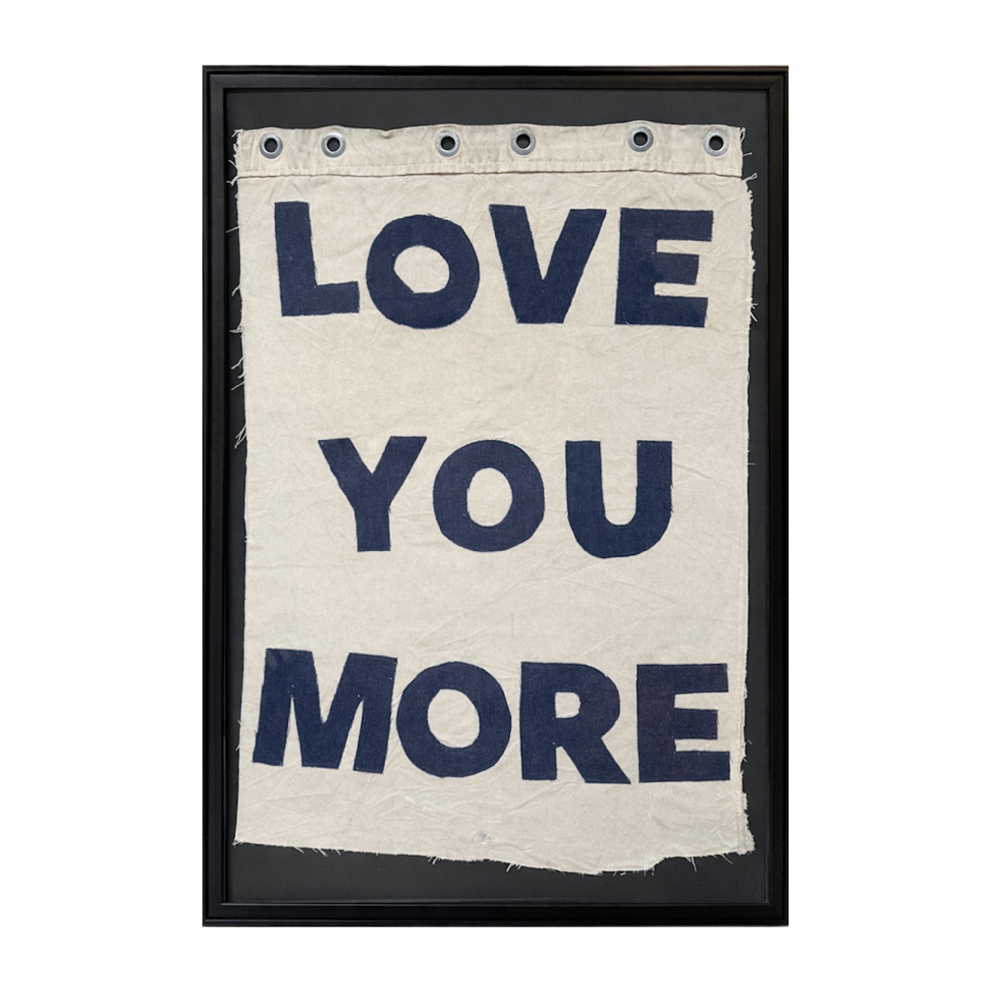 Artist Laurie Sobocinski reimagines discarded fabrics into word art that captures fun and meaningful phrases. Love You More is stitched with history, designed to bring character and story to your walls.