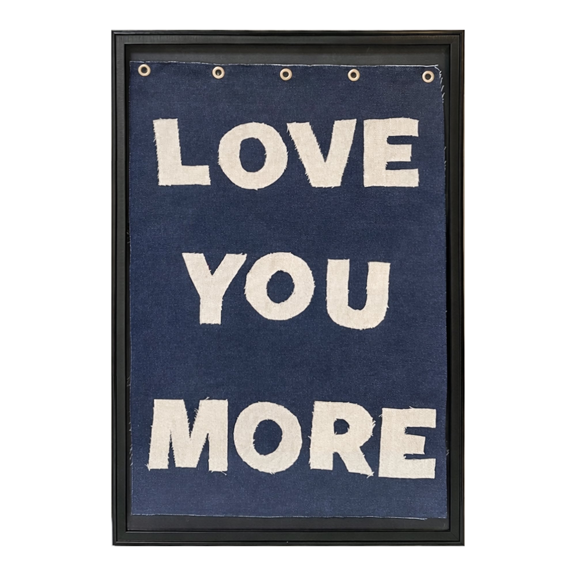 Artist Laurie Sobocinski reimagines discarded fabrics into word art that captures fun and meaningful phrases. Love You More is stitched with history, designed to bring character and story to your walls.