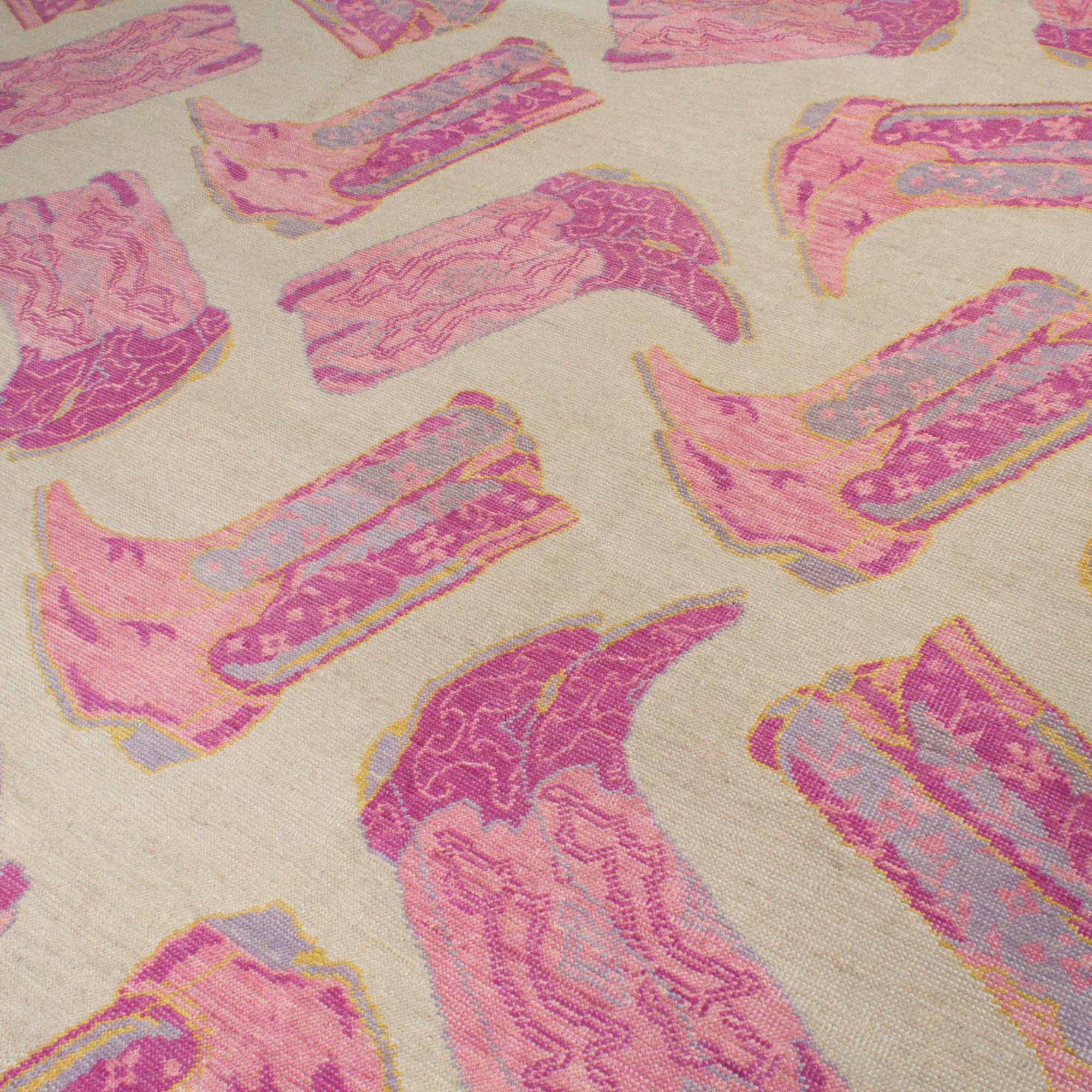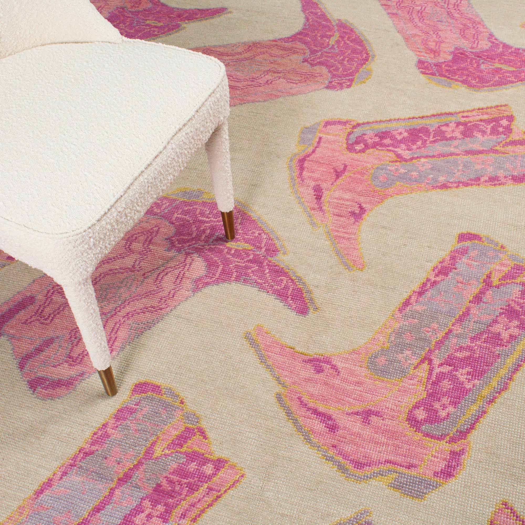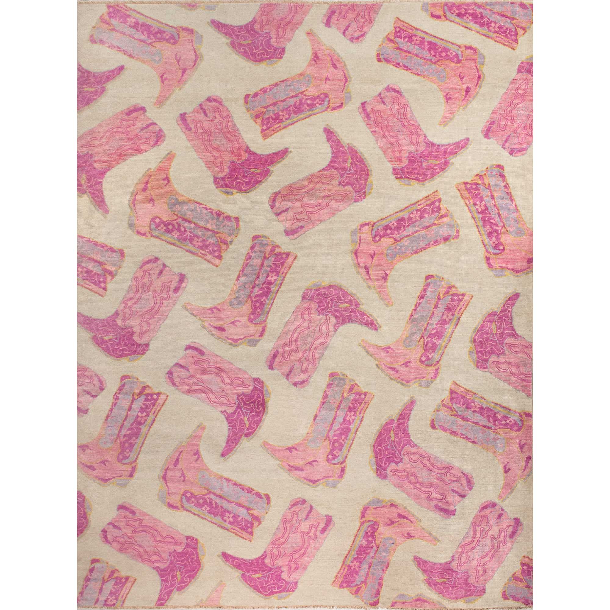 This custom wool rug was designed by Scout and hand knotted by artisans in India. The pink boot design kicks it up a notch with modern flair. Click here to see every color in the Kicker Collection.