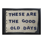 Artist Laurie Sobocinski reimagines discarded fabrics into word art that captures fun and meaningful phrases. These Are the Good Old Days is stitched with history, designed to bring character and story to your walls.