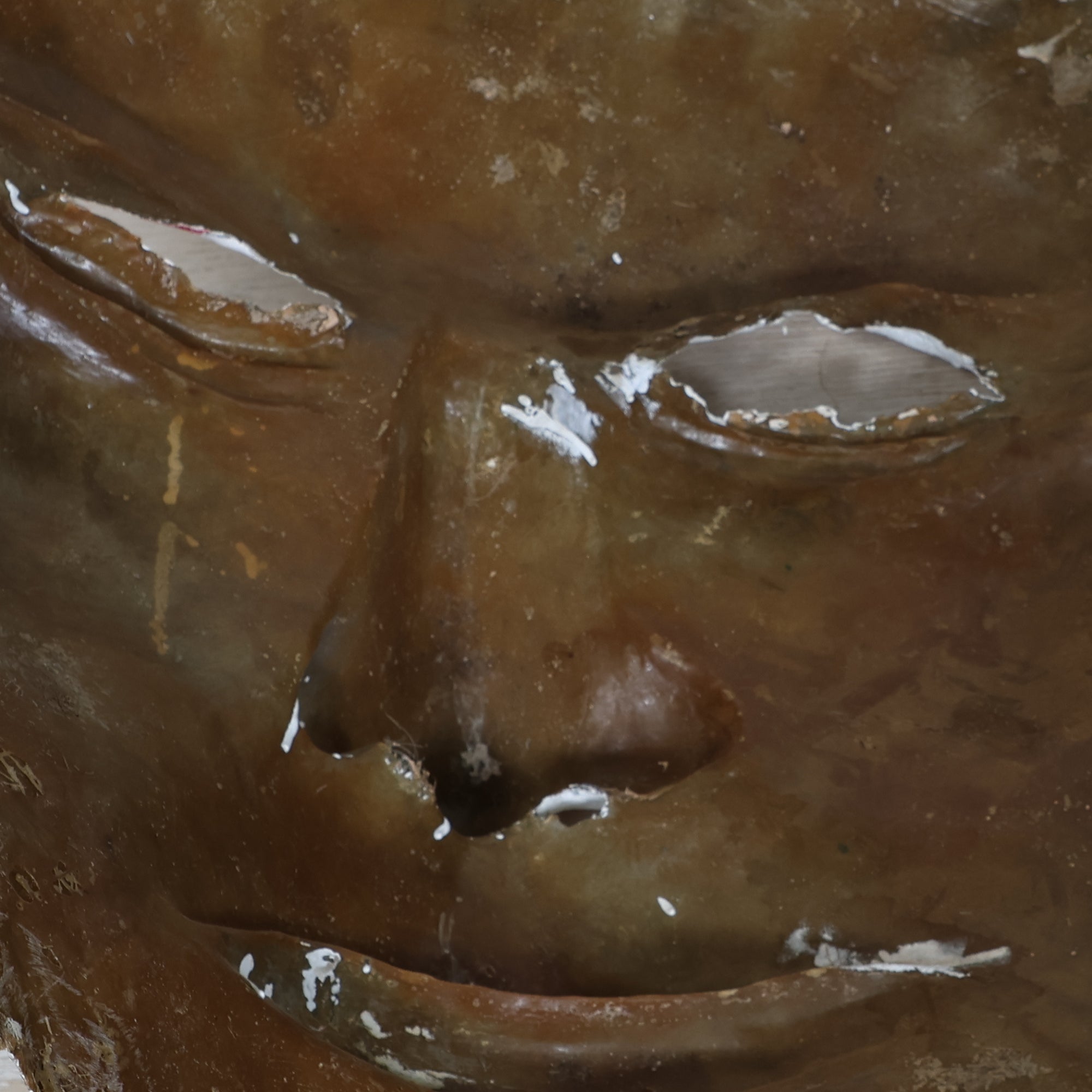 Visible wear, paint loss, and age throughout add to its character and patina. An eye-catching decorative object—perfect as a wall-mounted art piece, prop, or conversation-starting statement in an eclectic interior.