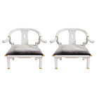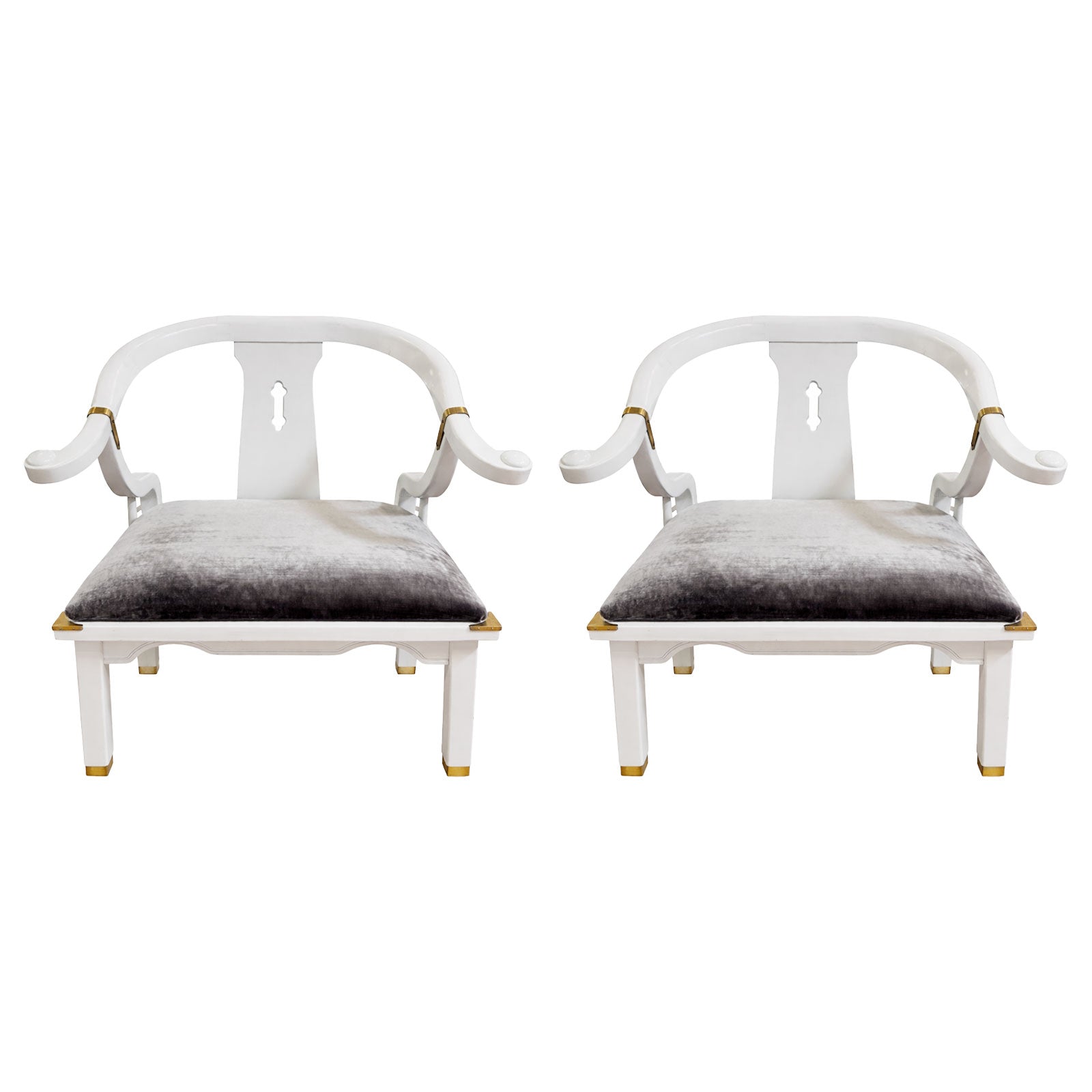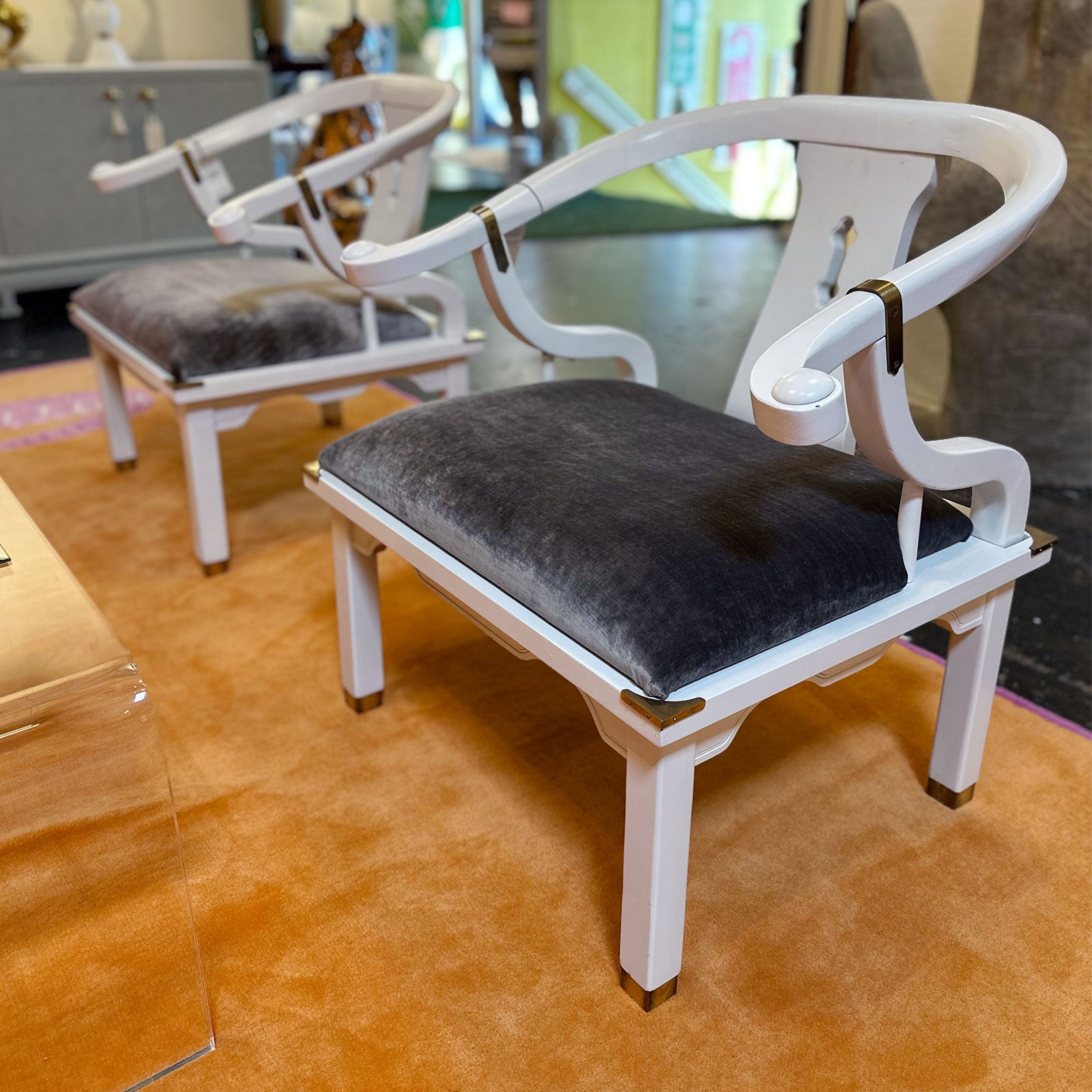 Pair of White Ming Chairs with Charcoal Velvet Upholstery