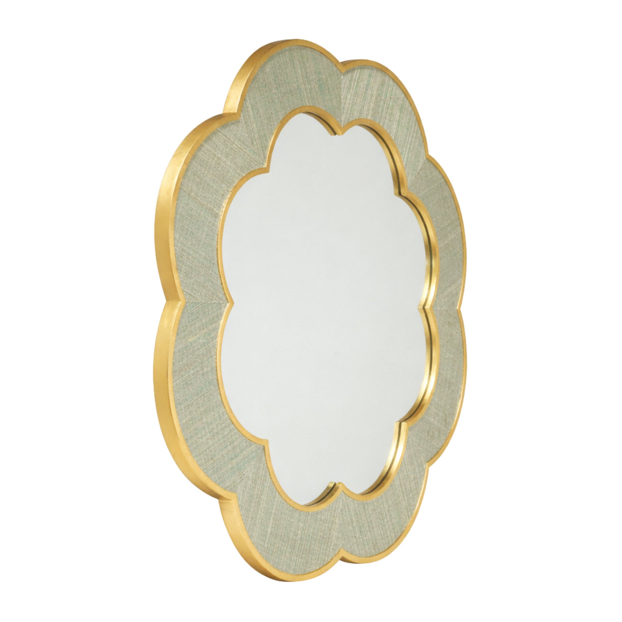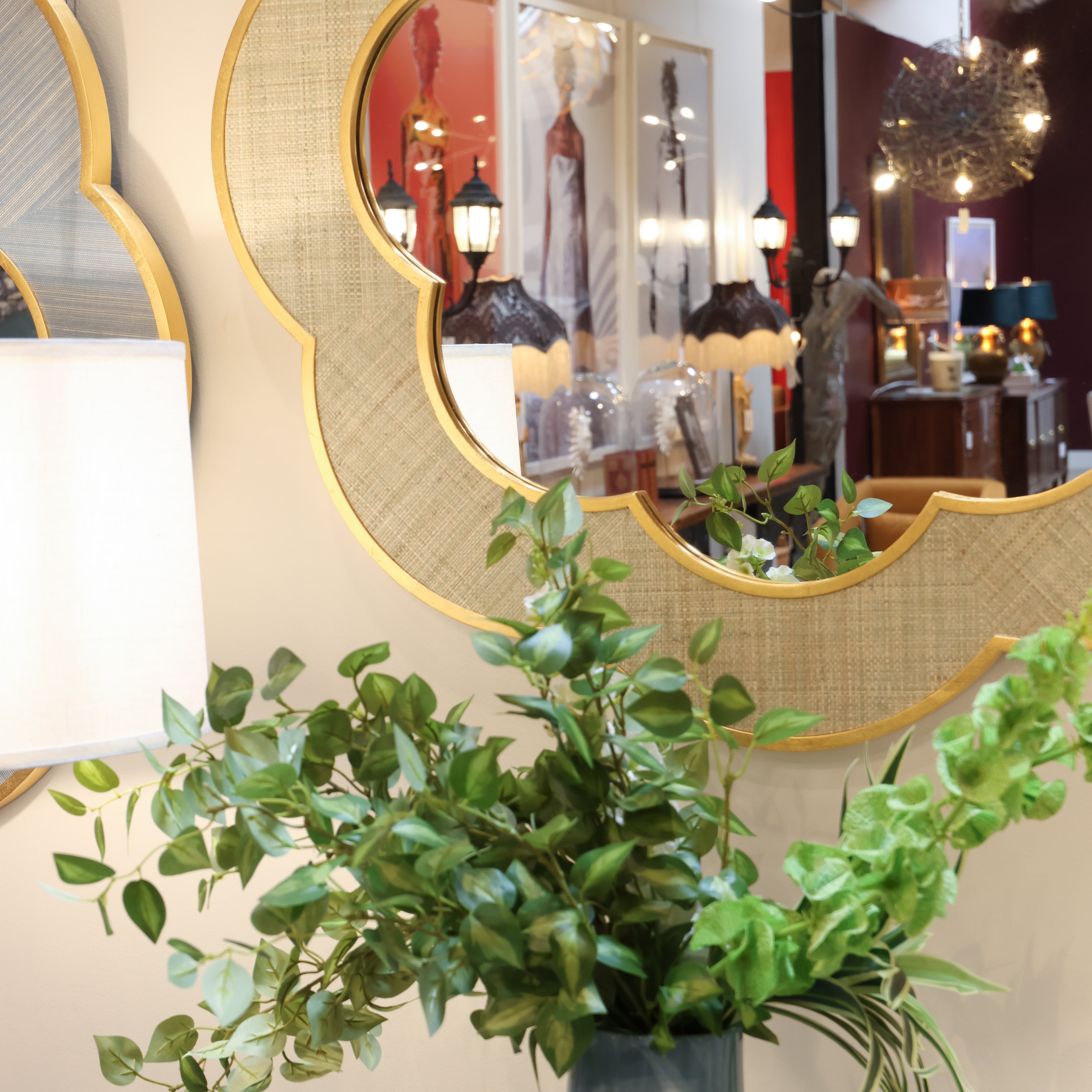 Our Leigh Mirror features a fabulous floral frame finished in our Louis Raffia for natural texture and intrigue. Gentle curves are complemented by antiqued brass edging that gives a radiant and refined look. Trendy has never looked so timeless!