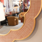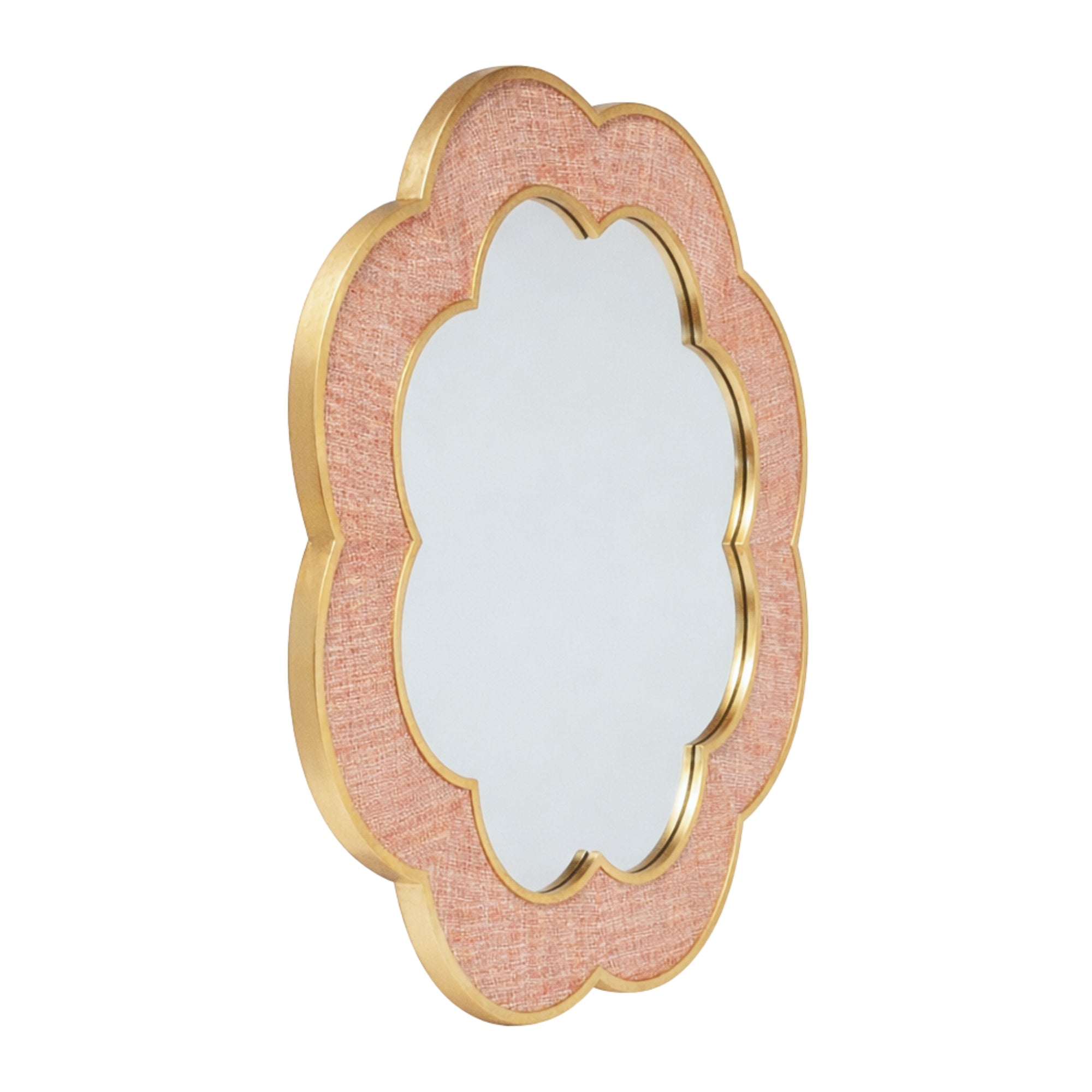 Our Leigh Mirror features a fabulous floral frame finished in our Natalia Raffia for natural texture and intrigue. Gentle curves are complemented by antiqued brass edging that gives a radiant and refined look. Trendy has never looked so timeless!