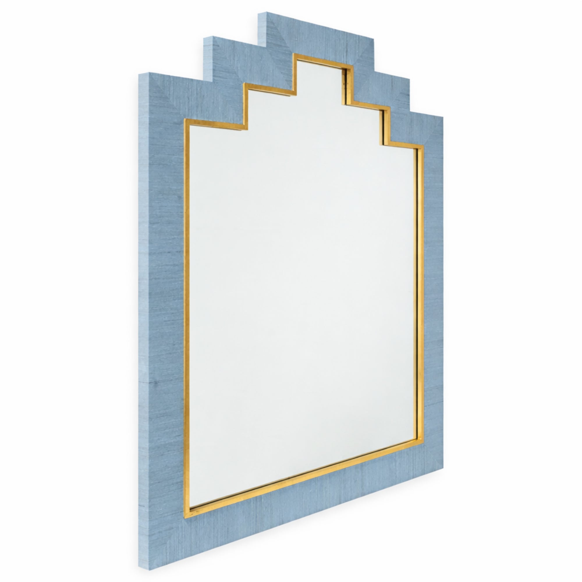 Our Leslie Mirror is framed by clean, sharp lines and geometric angles. Our woven Tulum grasscloth brings unexpected texture while antiqued brass detailing lends just the right amount of luxe shine.