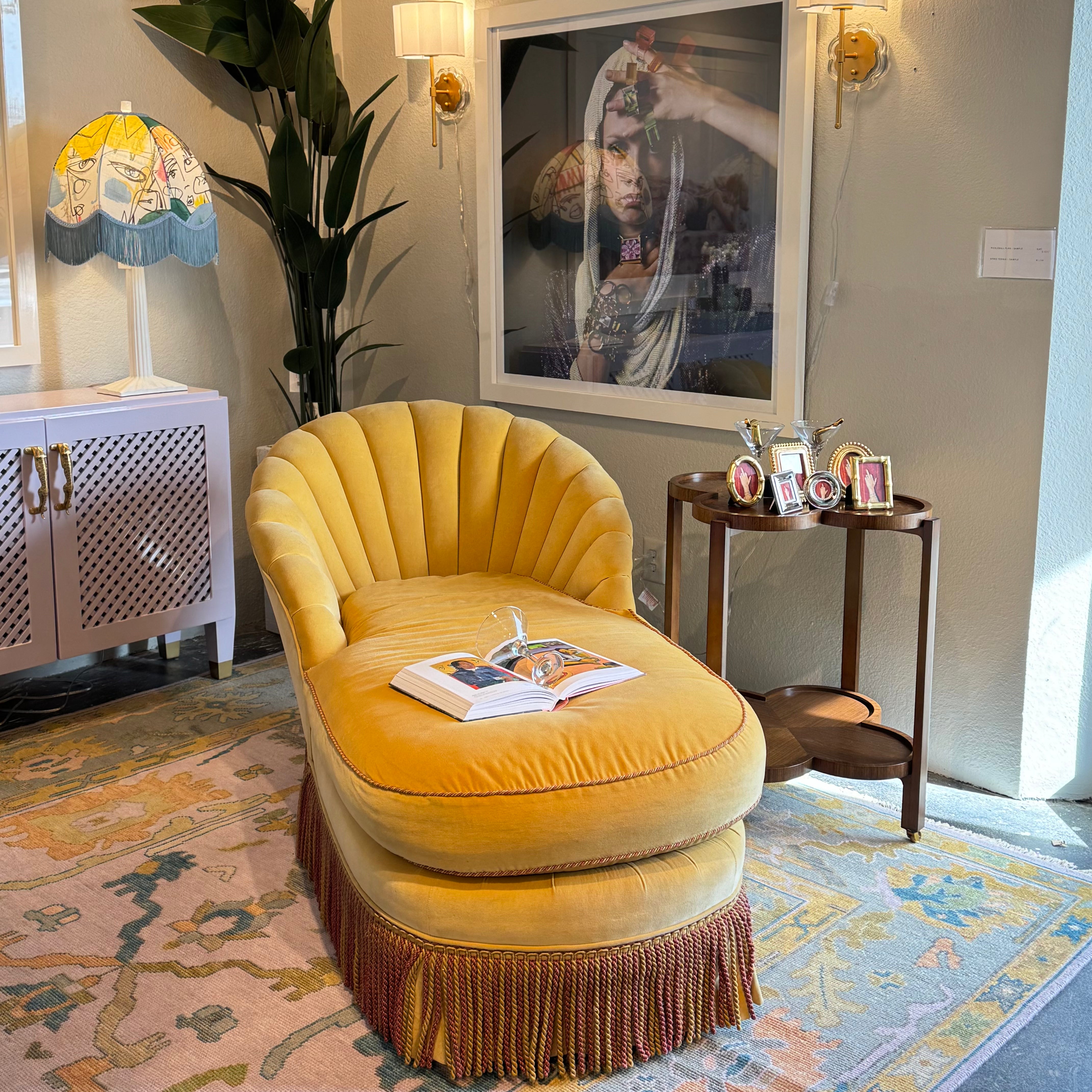 Mustard Chaise Lounge with Bullion Fringe
