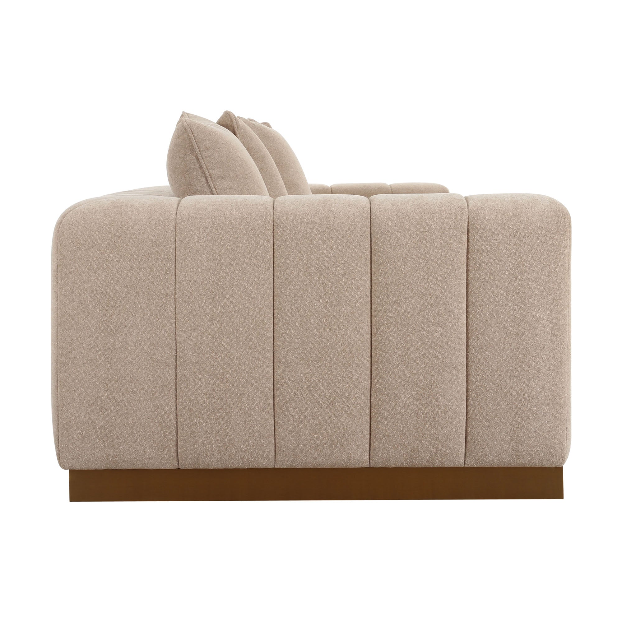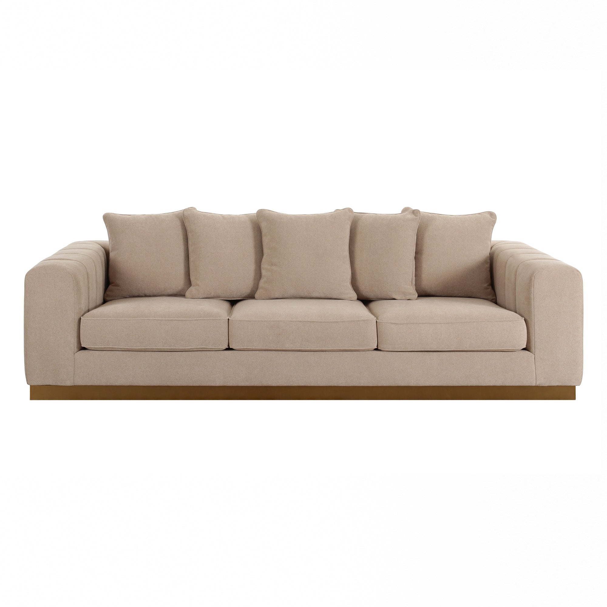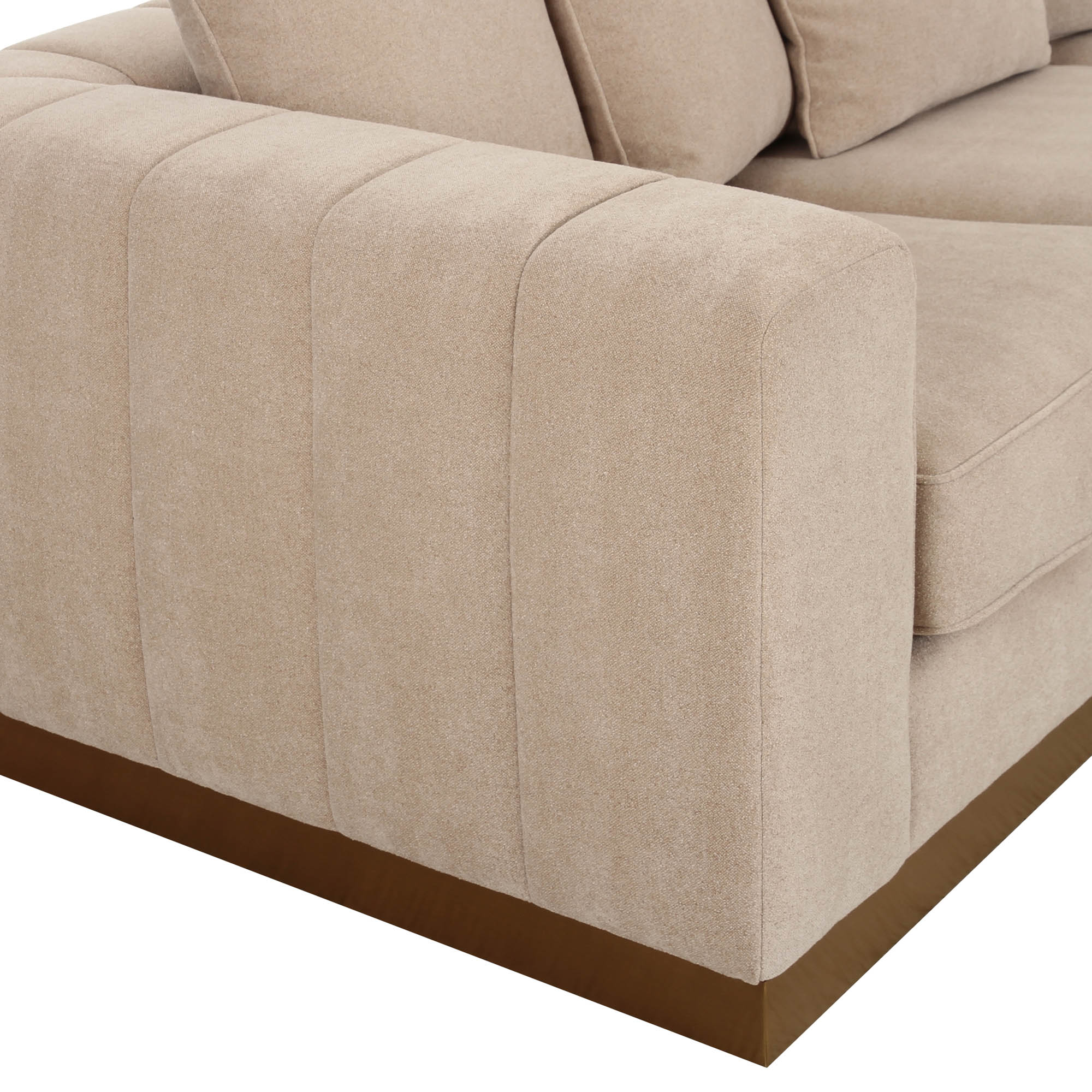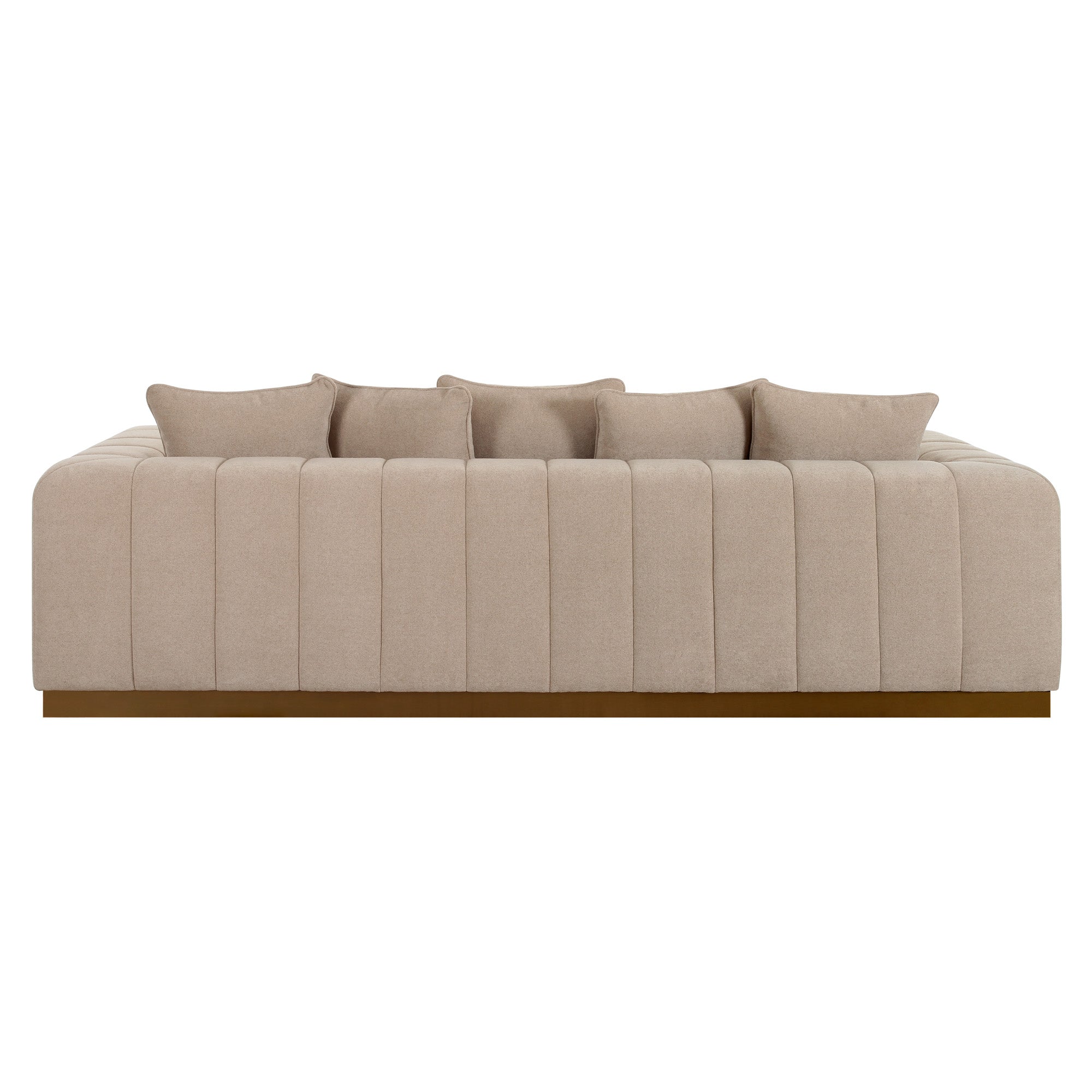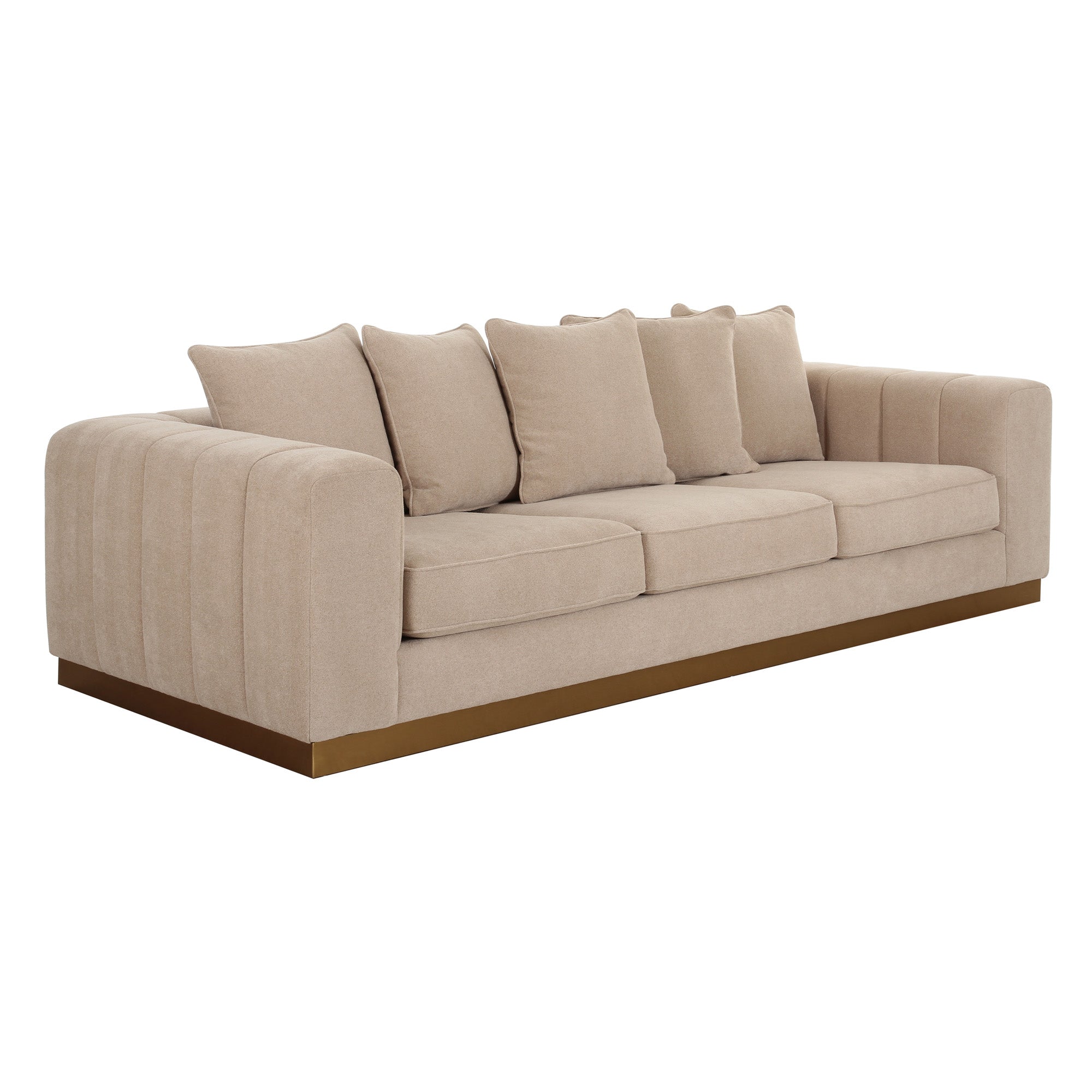 We promise this is a one night stand you won't regret. With chic channeling and spacious seats, this sofa is your perfect mix of comfort and style. Finished with a brass plinth base and pillows as shown.