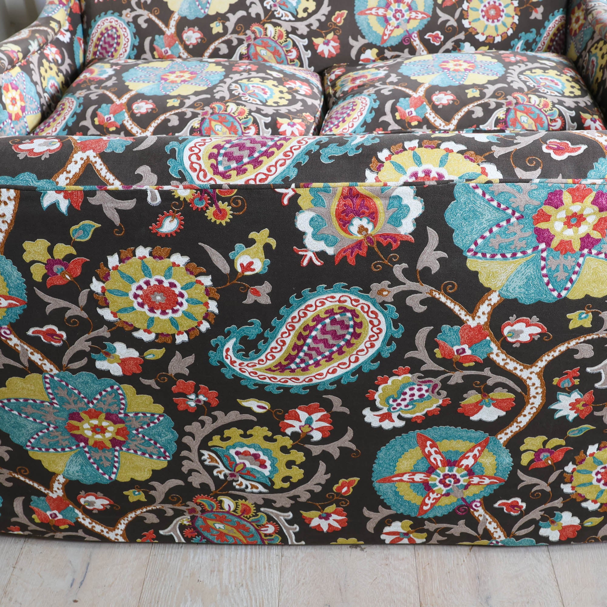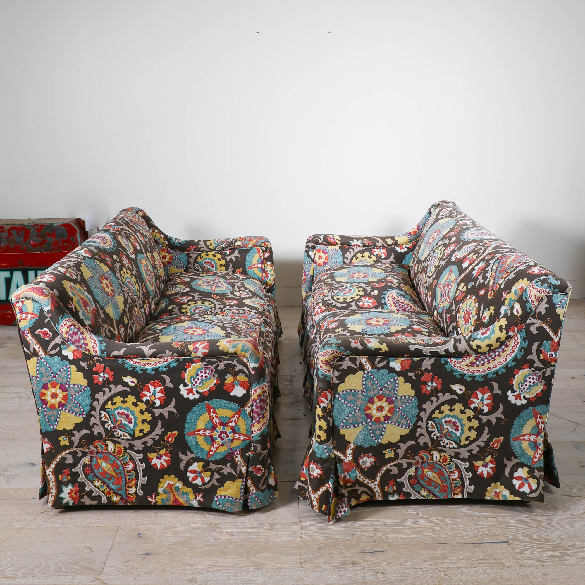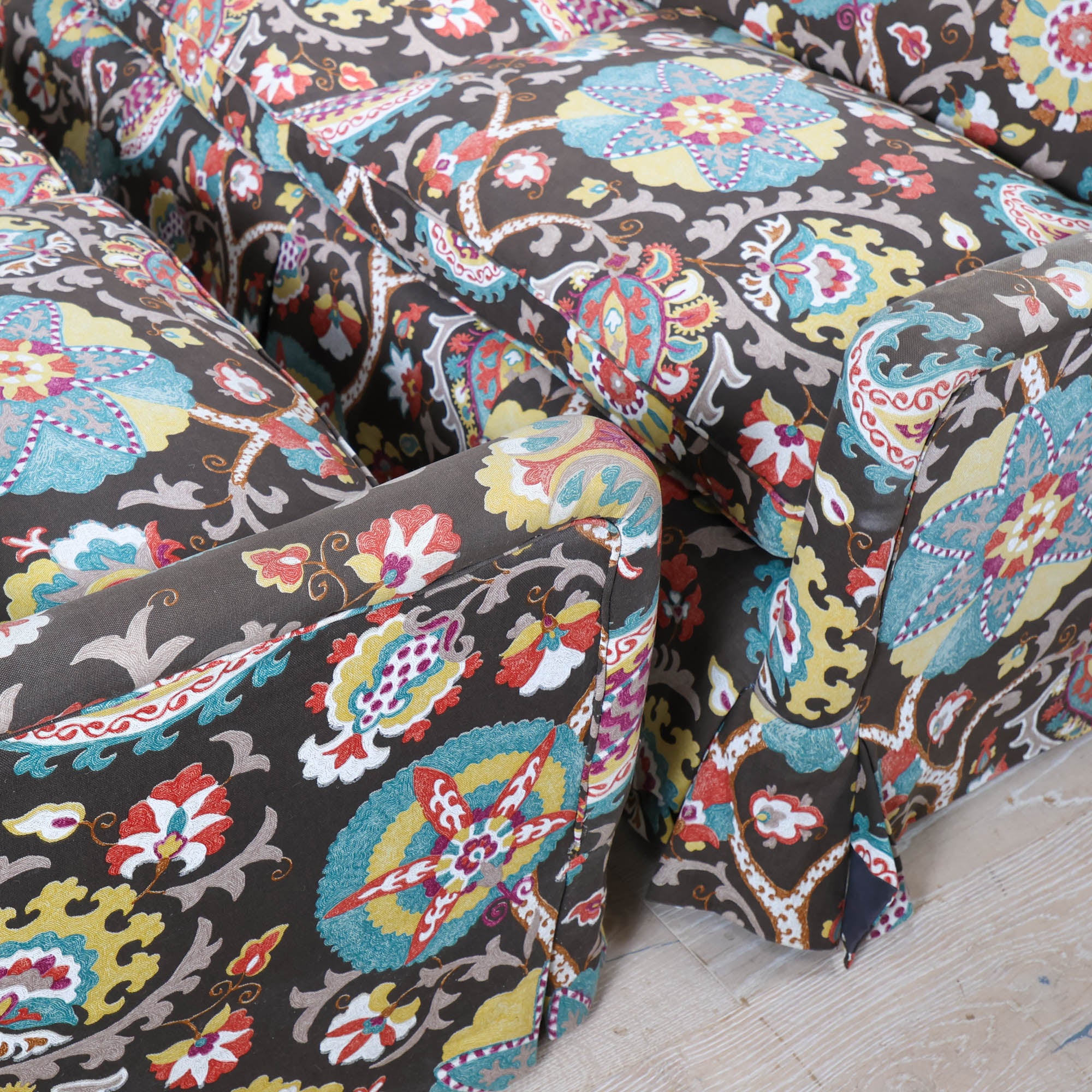 We love a pair of floral queens. This dangerously comfortable sofa duo features skirts & a floral fabric you’ll be staring at for days.