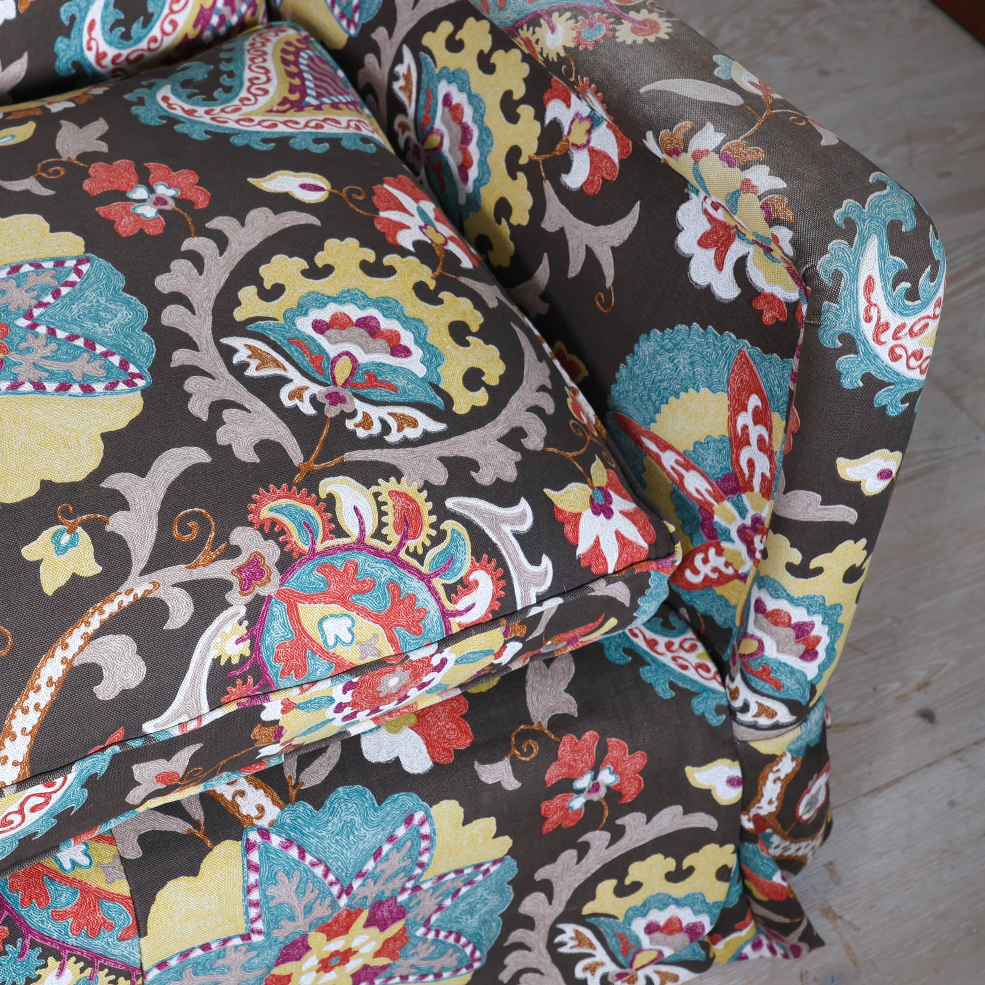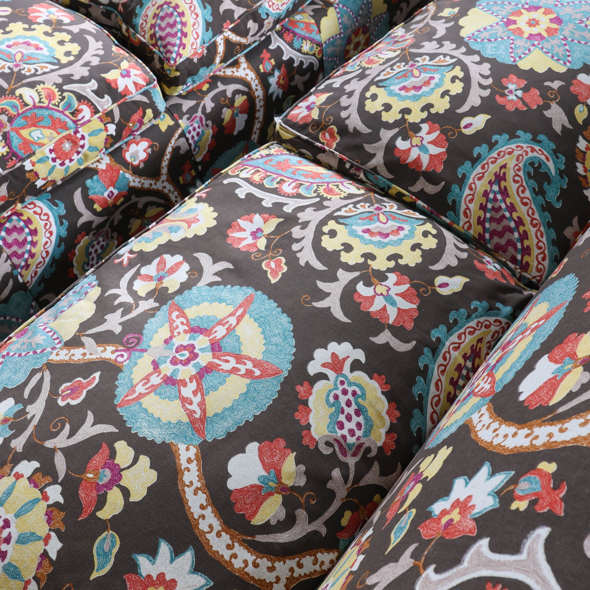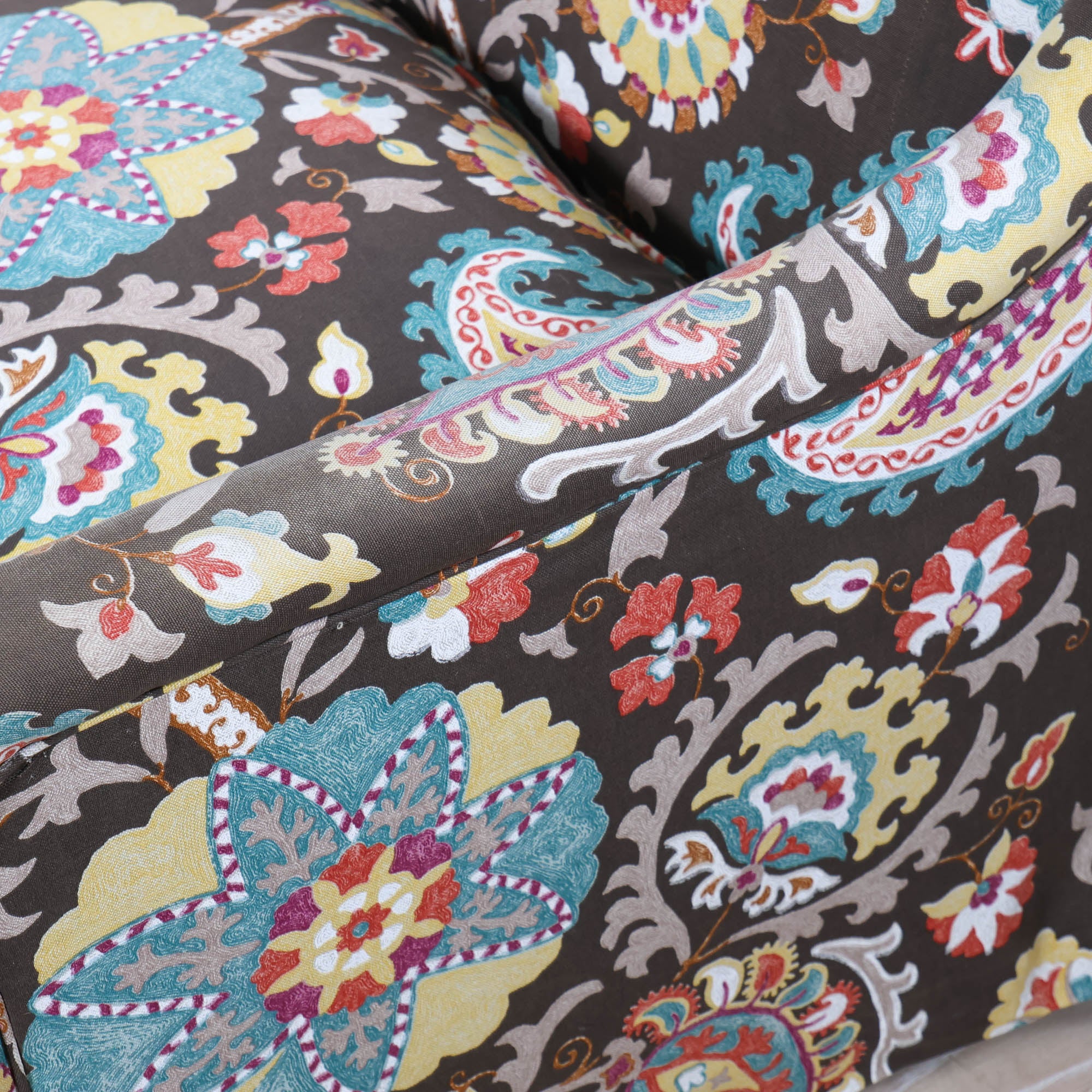 We love a pair of floral queens. This dangerously comfortable sofa duo features skirts & a floral fabric you’ll be staring at for days.