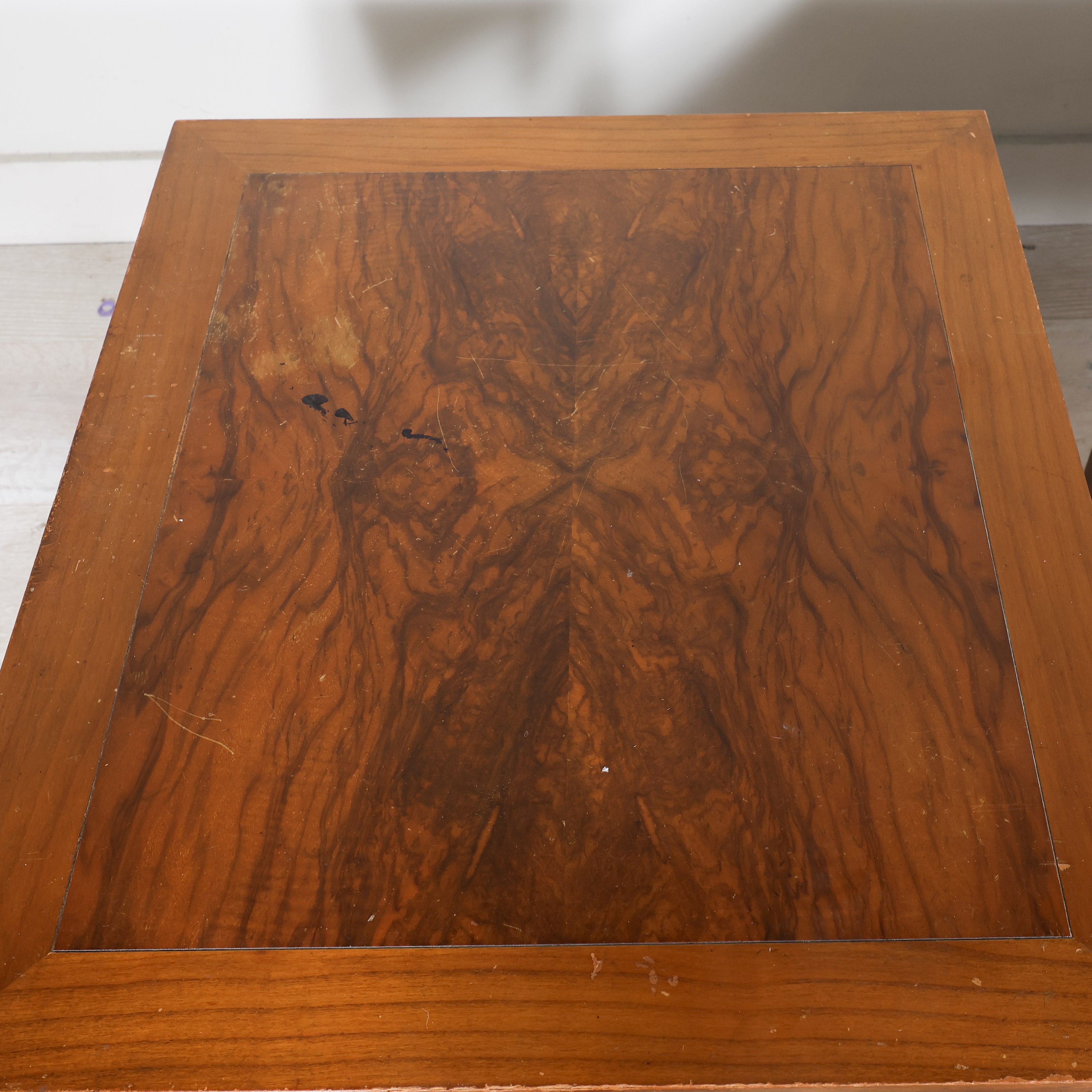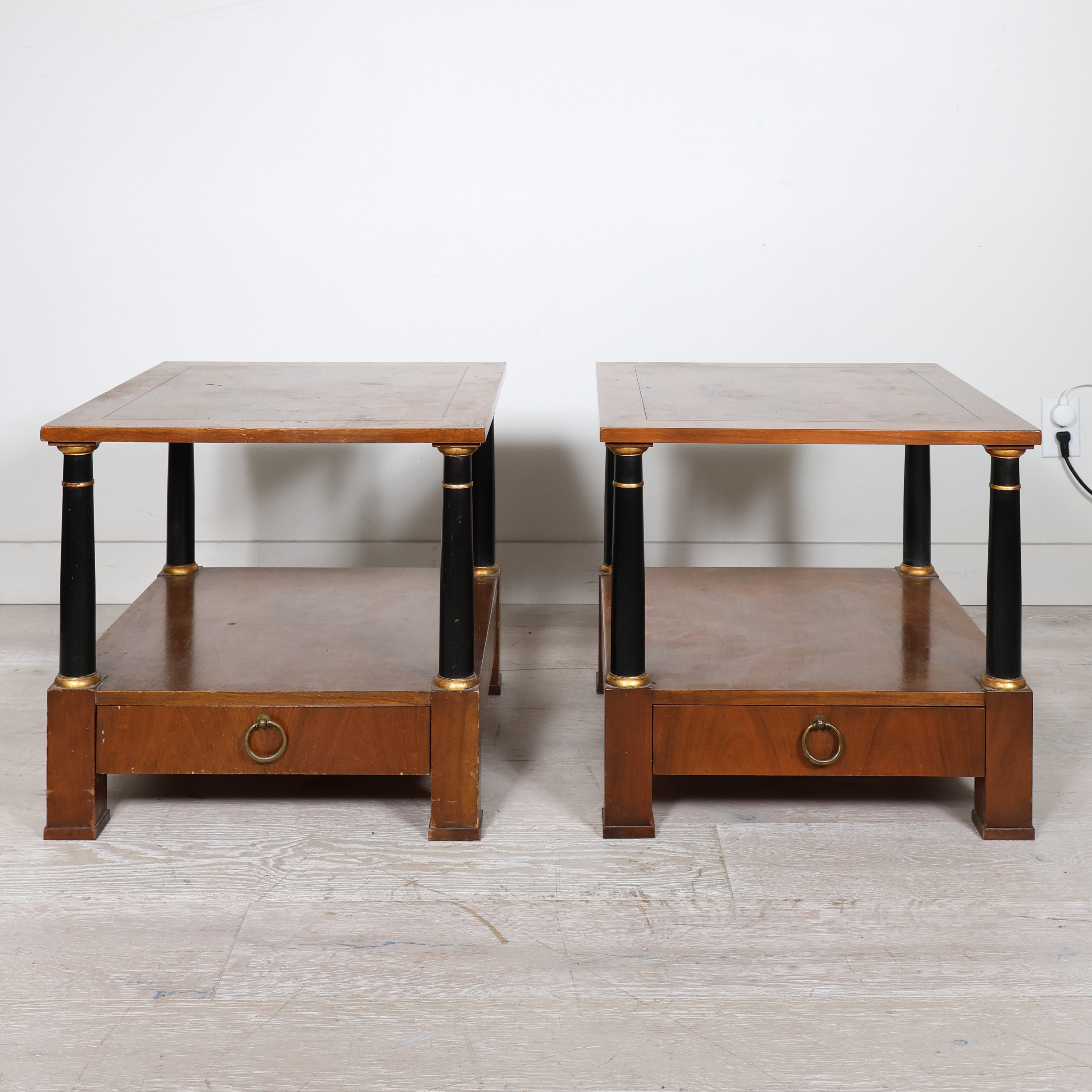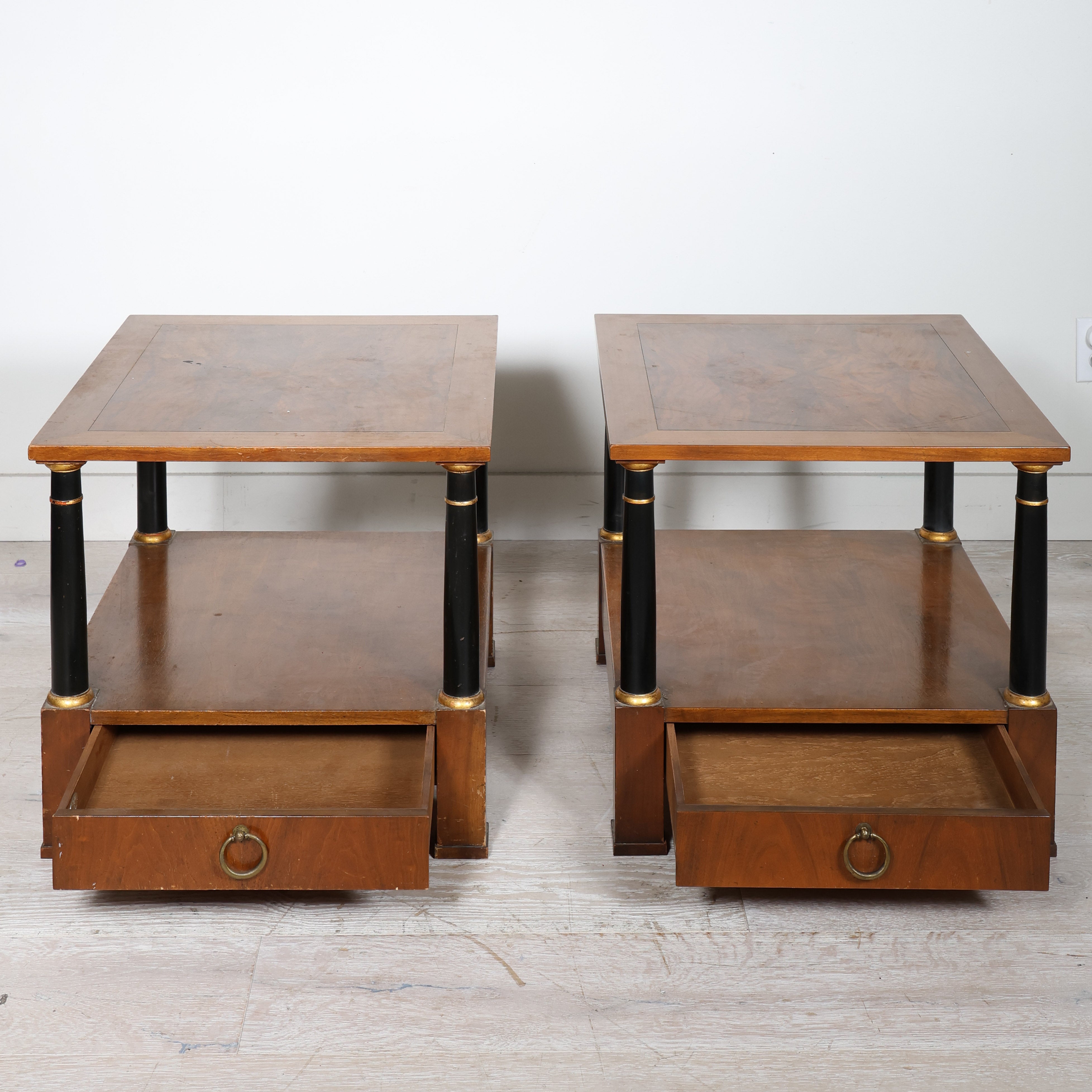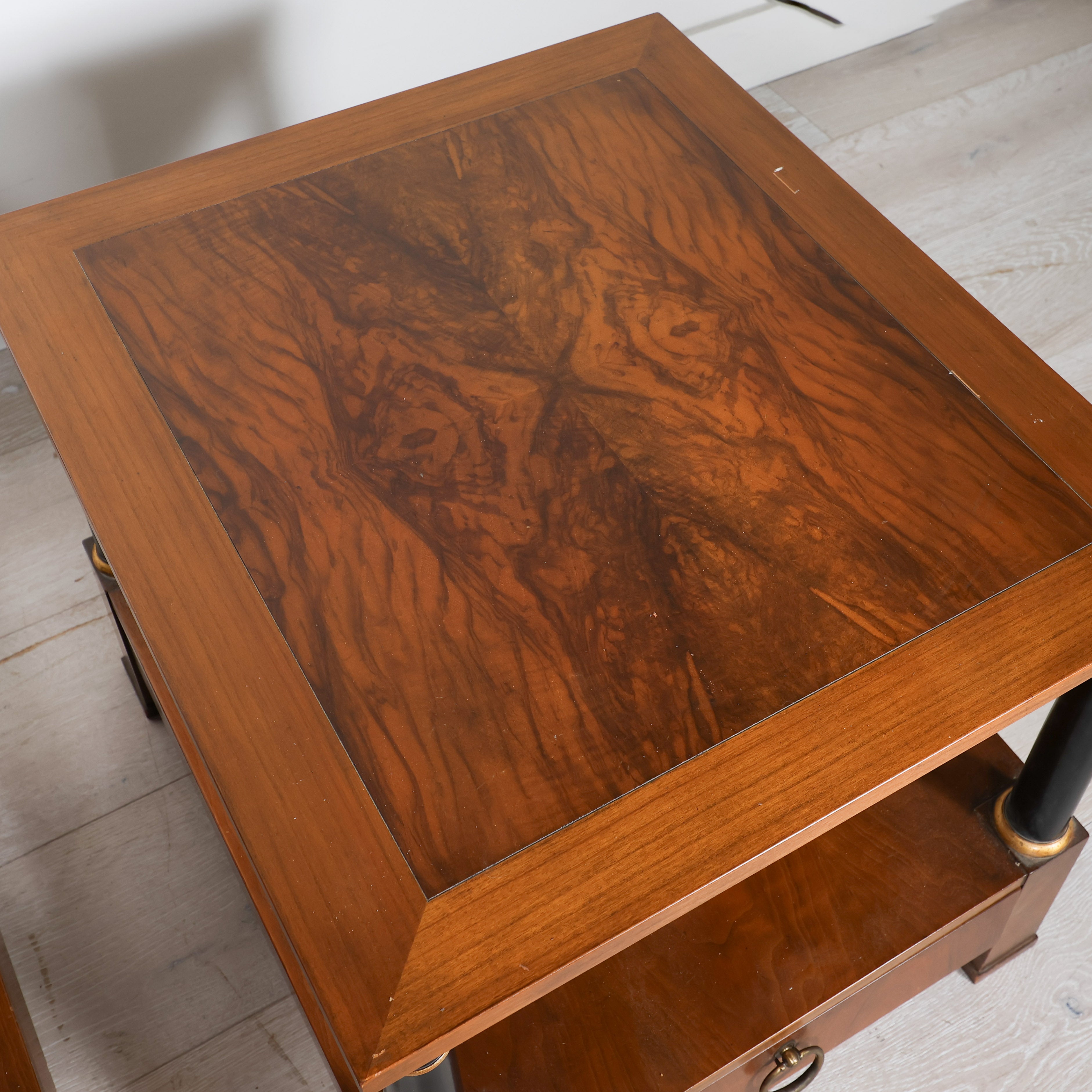 This beautiful pair from Baker Furniture features a drawer for storage and a top shelf to show off your accent game. We adore the book-matched walnut veneer tabletops on these beauties.