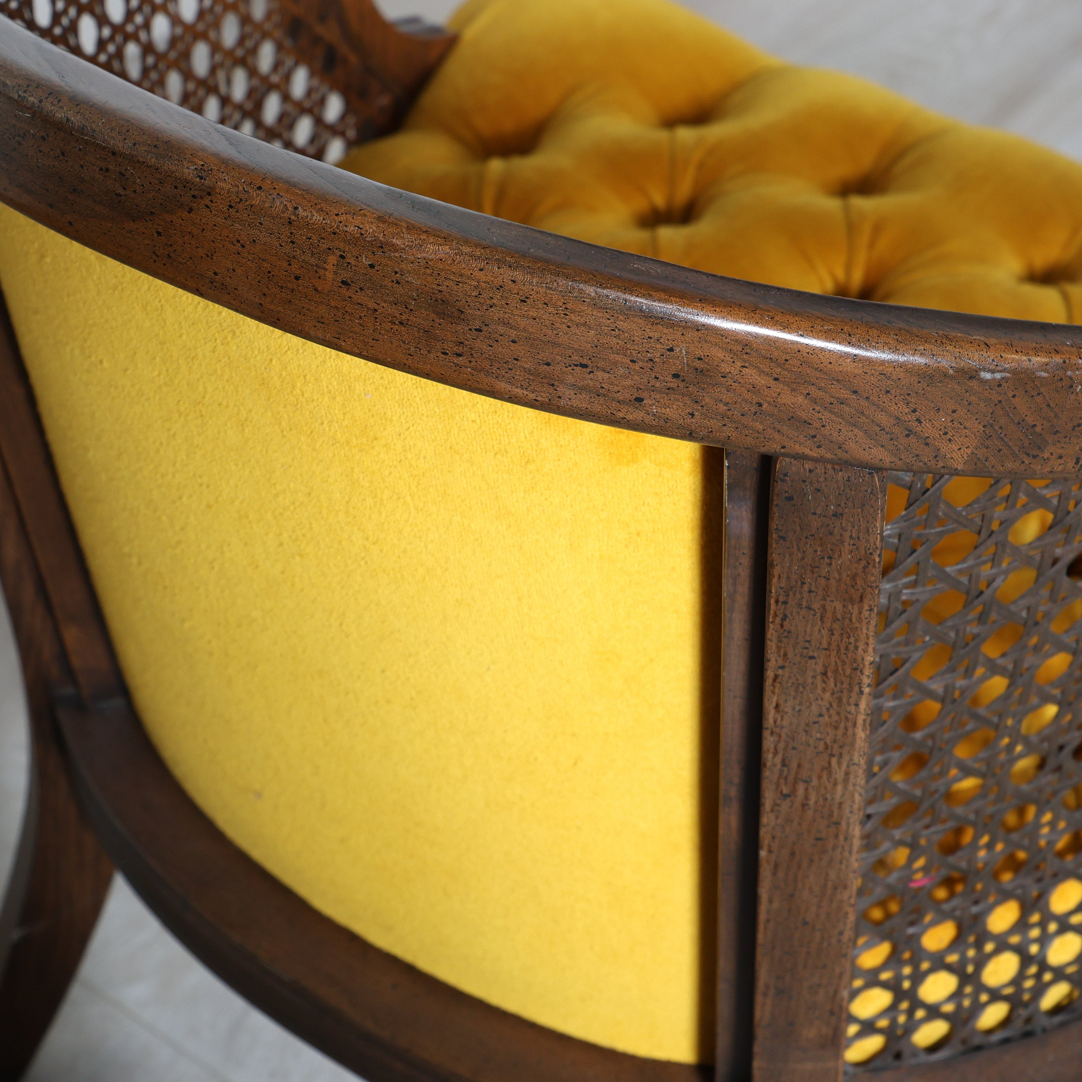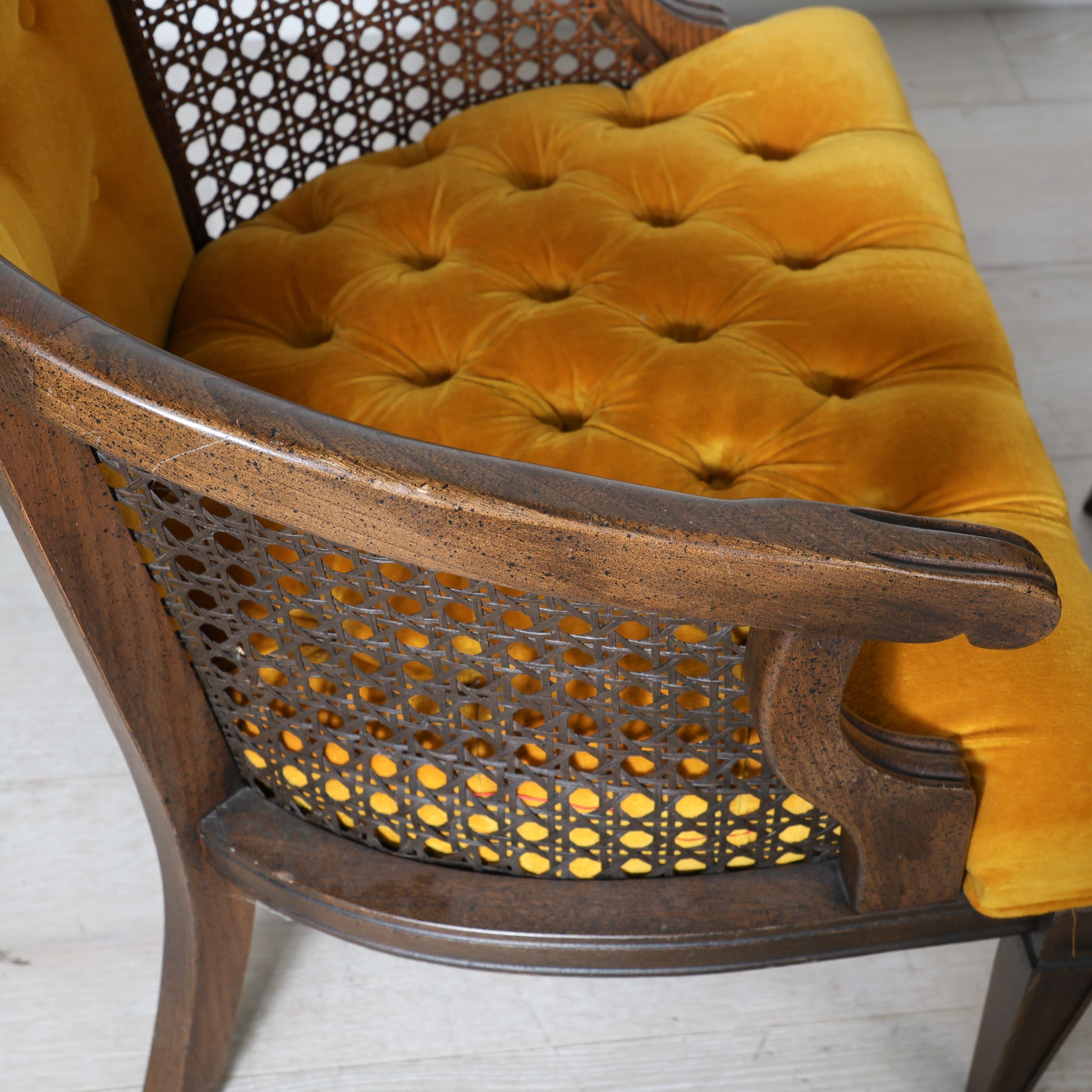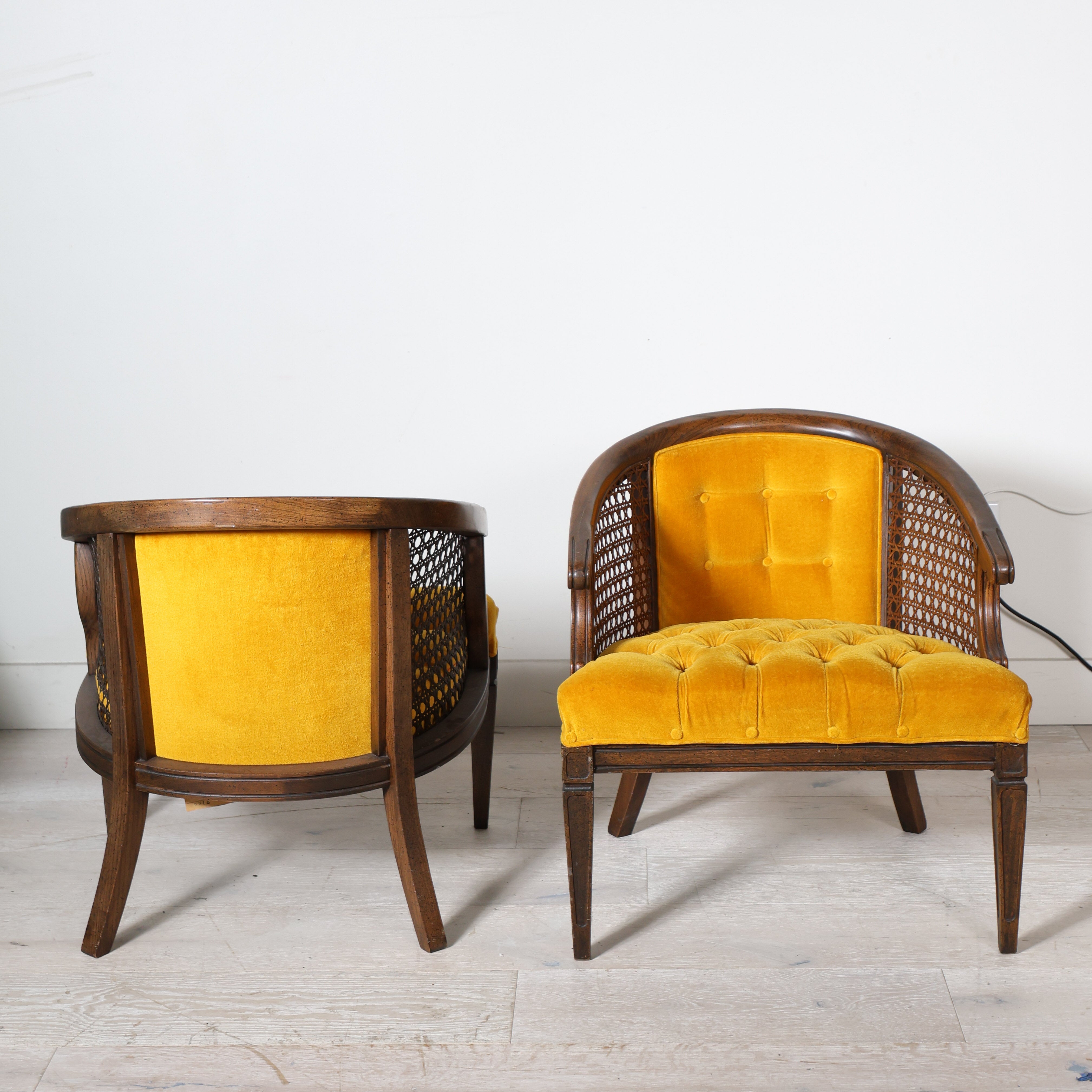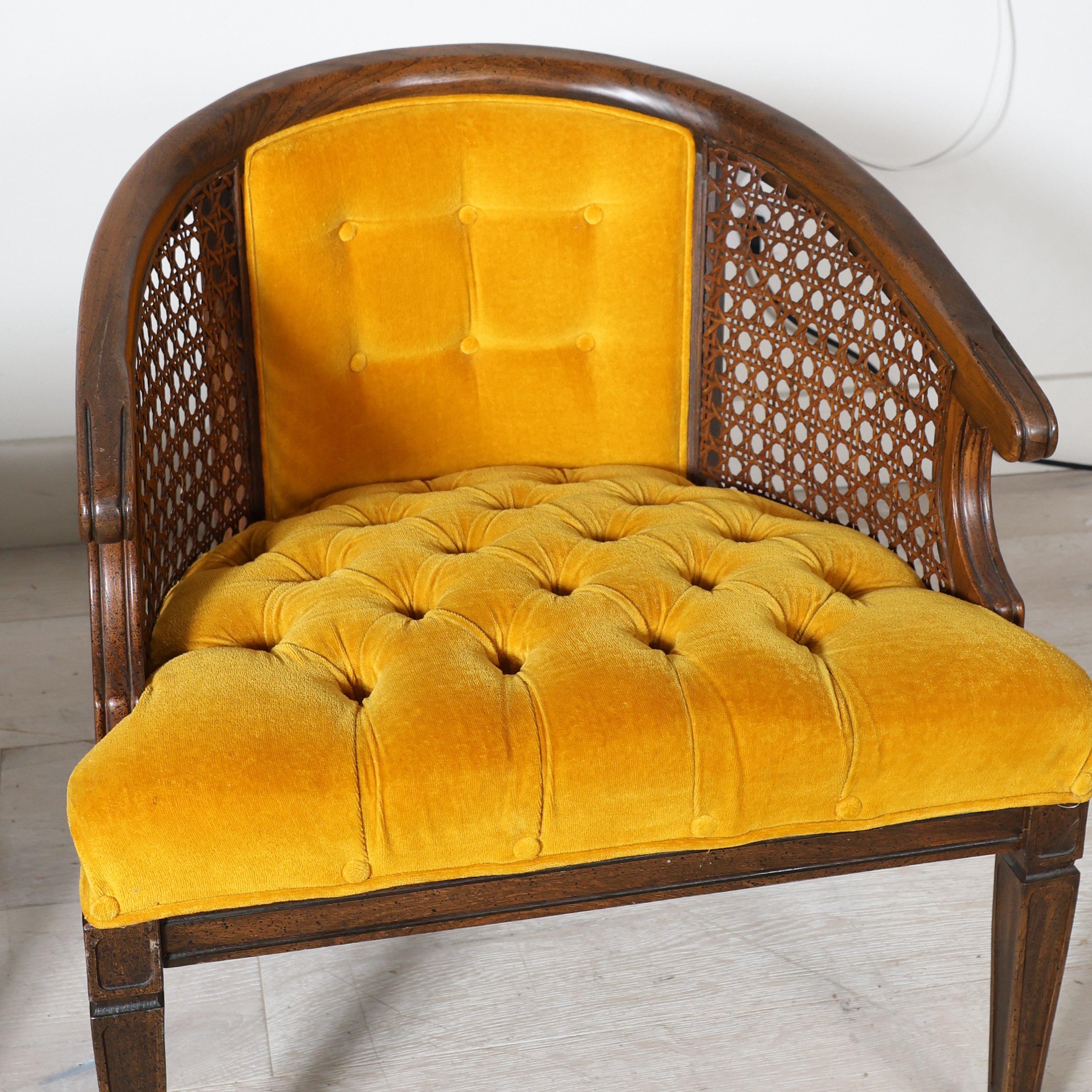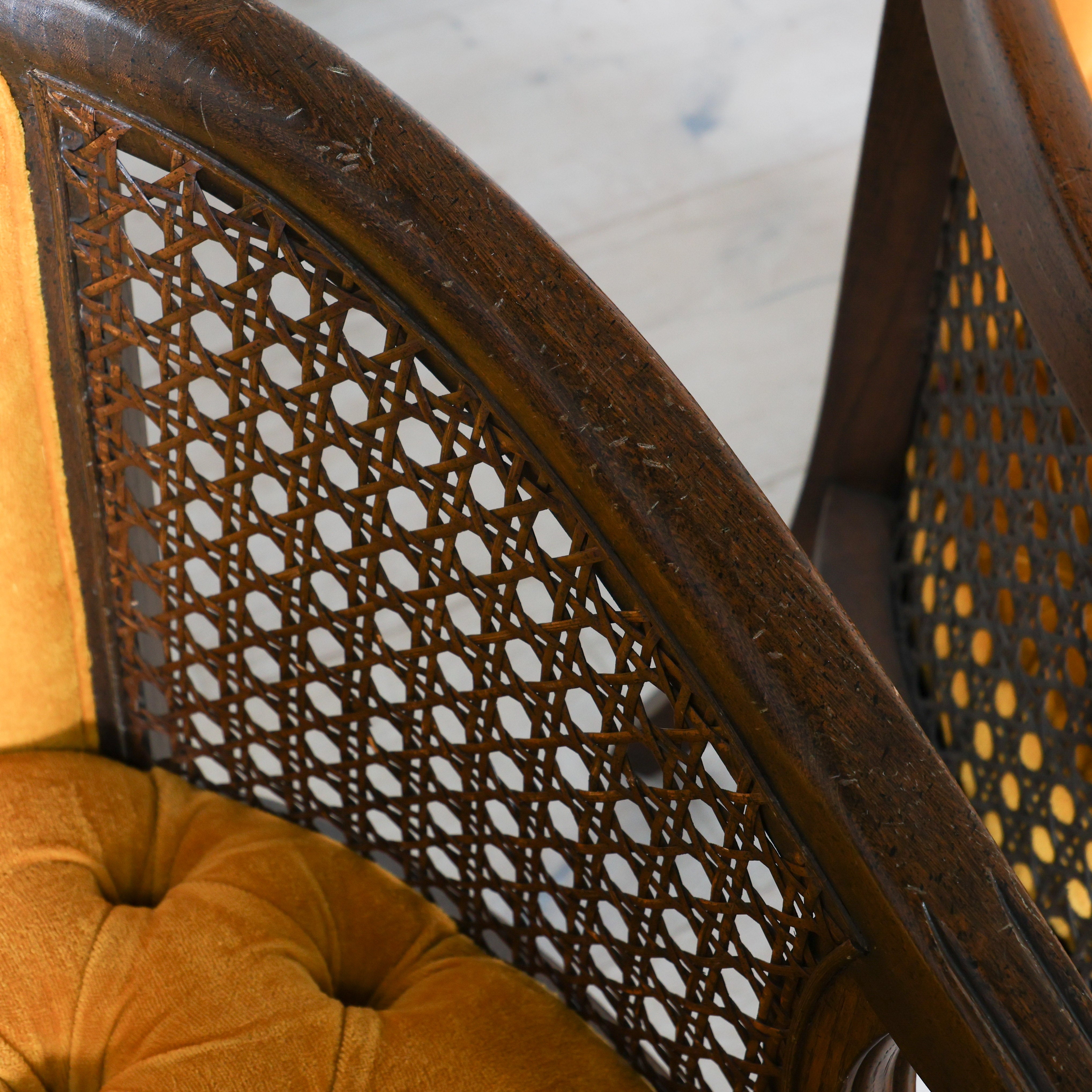 Pair of Mid Century Cane Chairs in Mustard
