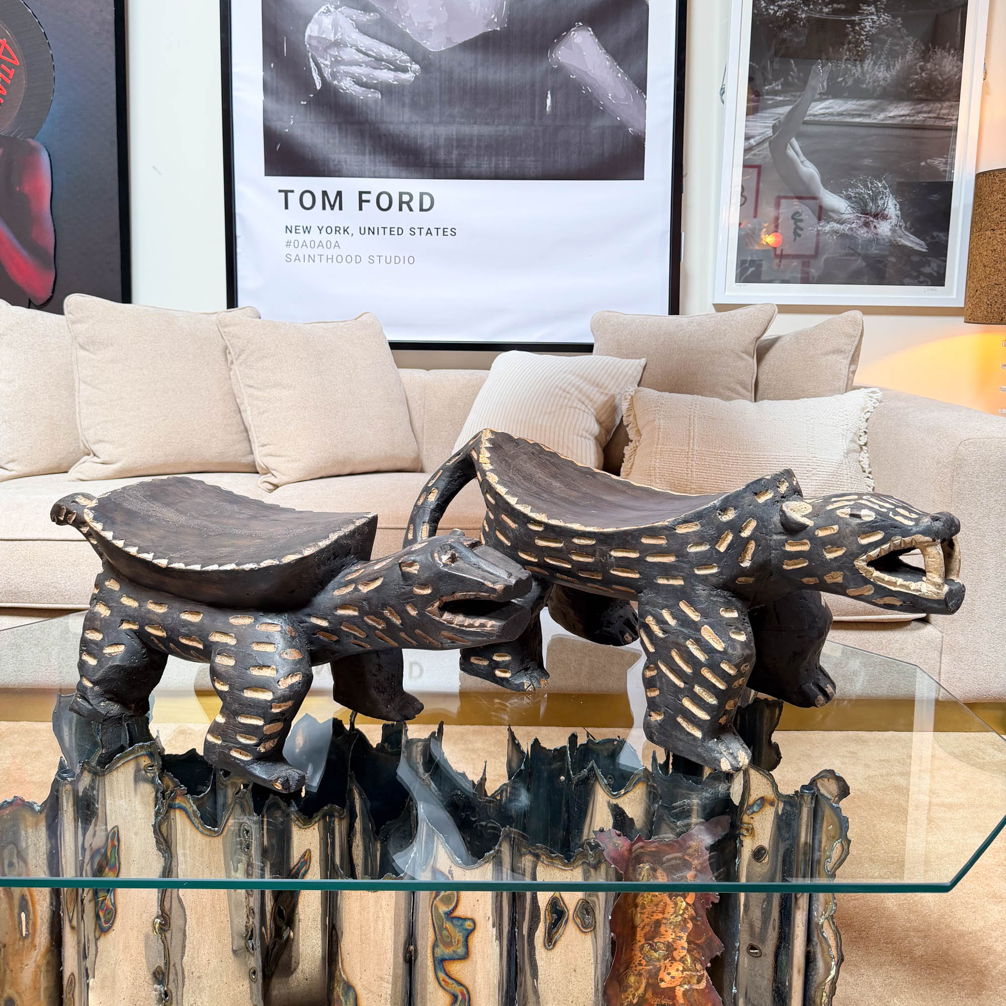Scouted at Round Top, these babies are hand-carved from solid wood and function as a low bench or stool. Part art piece, part conversation starter, these brings a bold, worldly edge to any space.