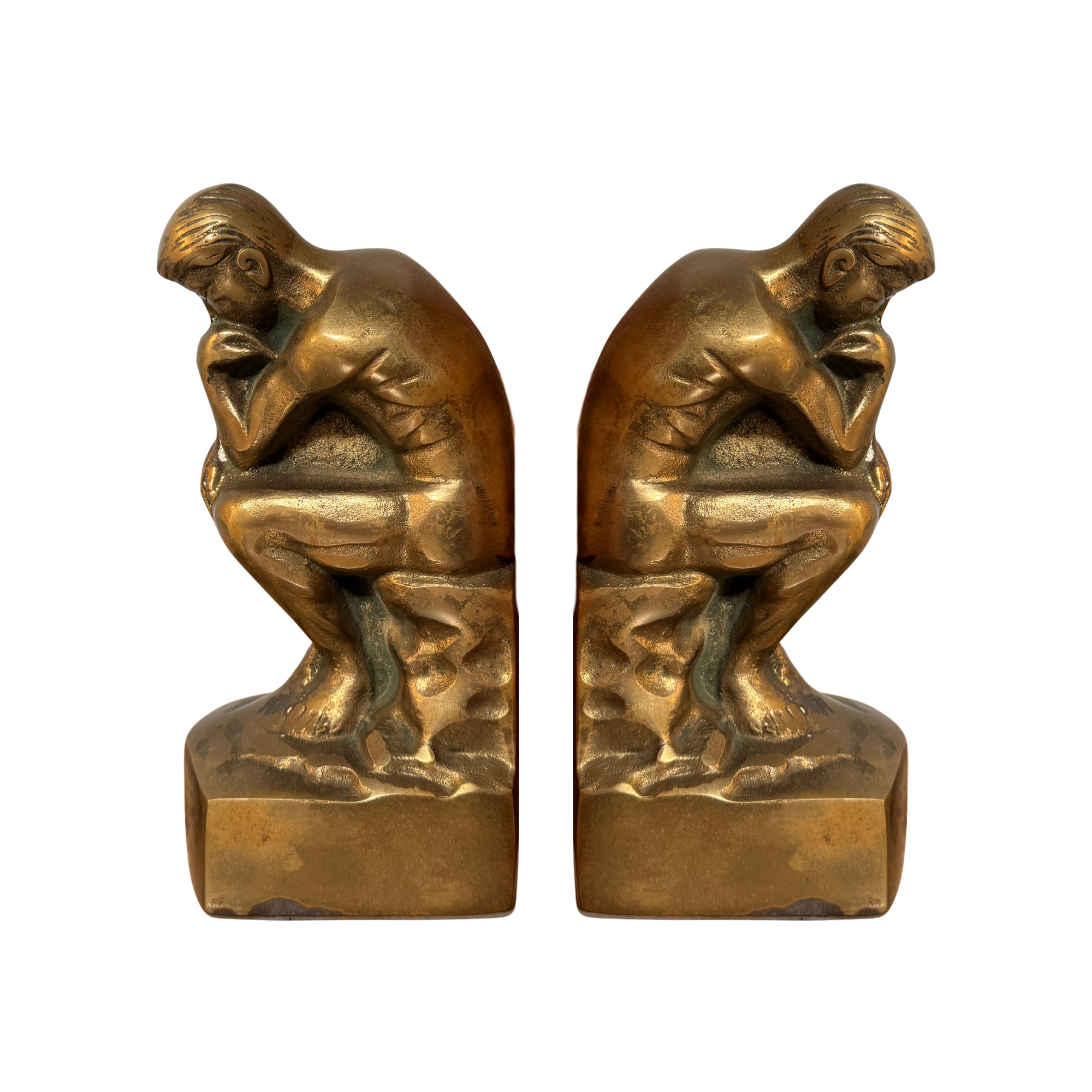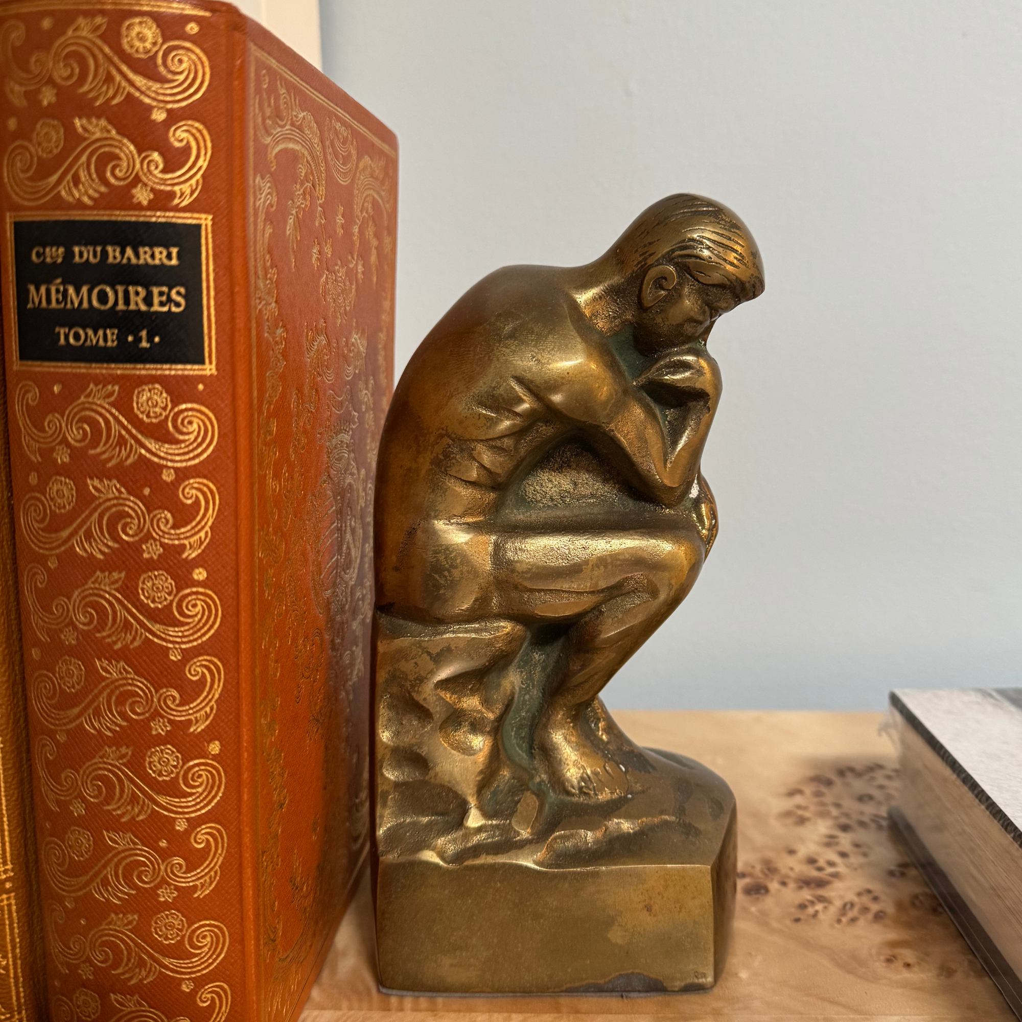 Reminiscent of Auguste Rodin’s iconic The Thinker, this pair of brass bookends brings a touch of classic drama to your shelves. Each figure strikes a thoughtful, inward-turned pose that evokes quiet contemplation — like a pocket-sized philosophical guardian for your favorite reads. You need these bookends!