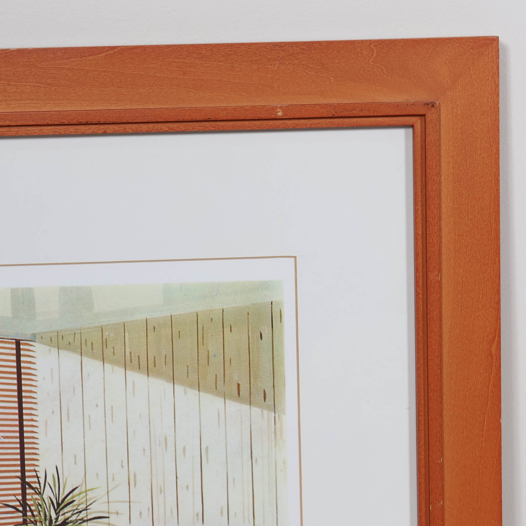 The illustrations showcase iconic elements of the period, from low-slung seating and sculptural lighting to expansive glass and warm wood paneling. Framed in warm wood frames with clean white mats, the set feels both graphic and timeless. Perfect for design lovers, architects, or anyone drawn to the classic style of mid-century interiors.
