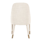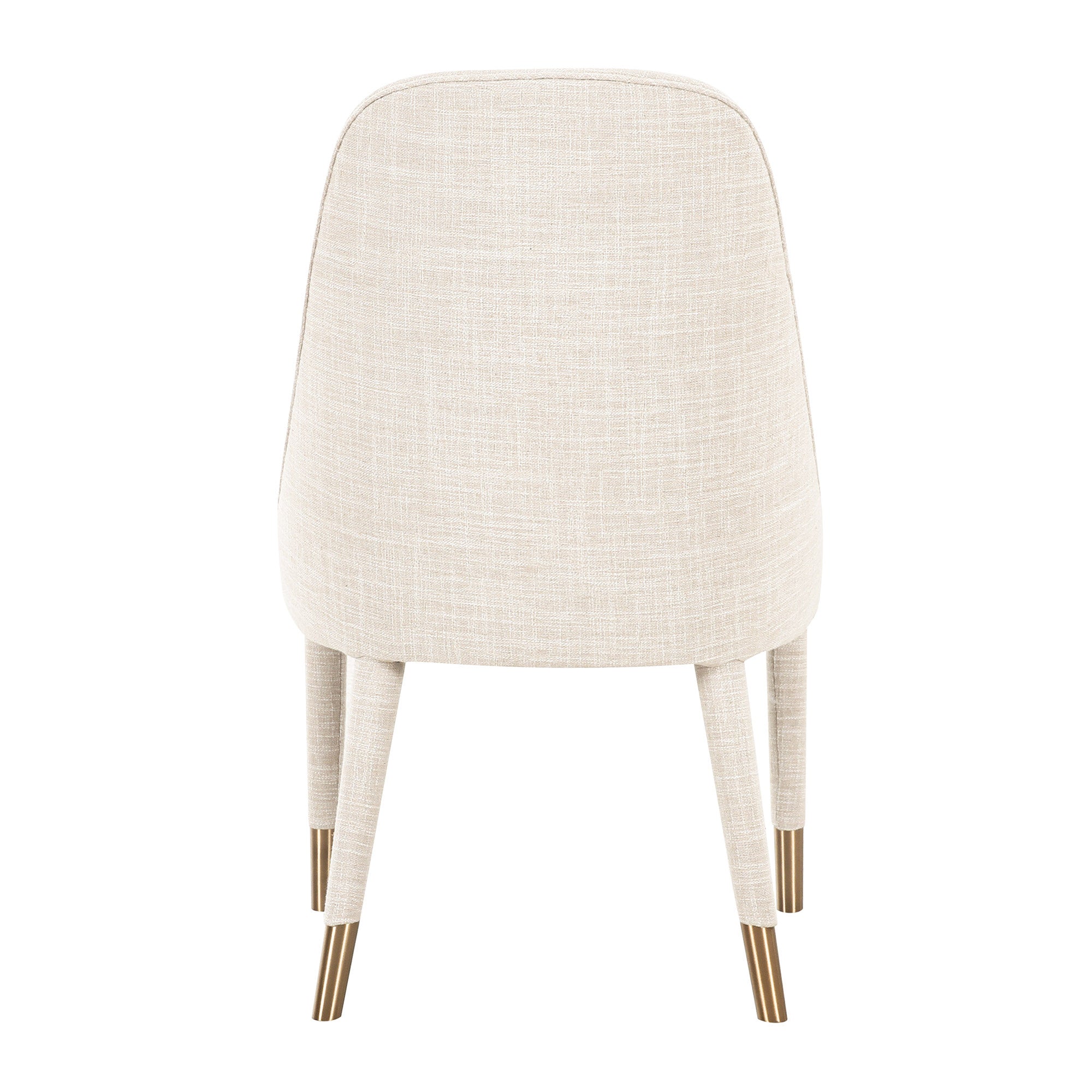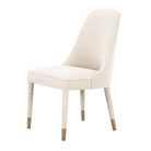 Dine in style with Tavish. This heavenly seat combines classy ivory linen with a curved back for ultimate dining comfort. Brass sabot accenting is the icing on the dinner party cake.