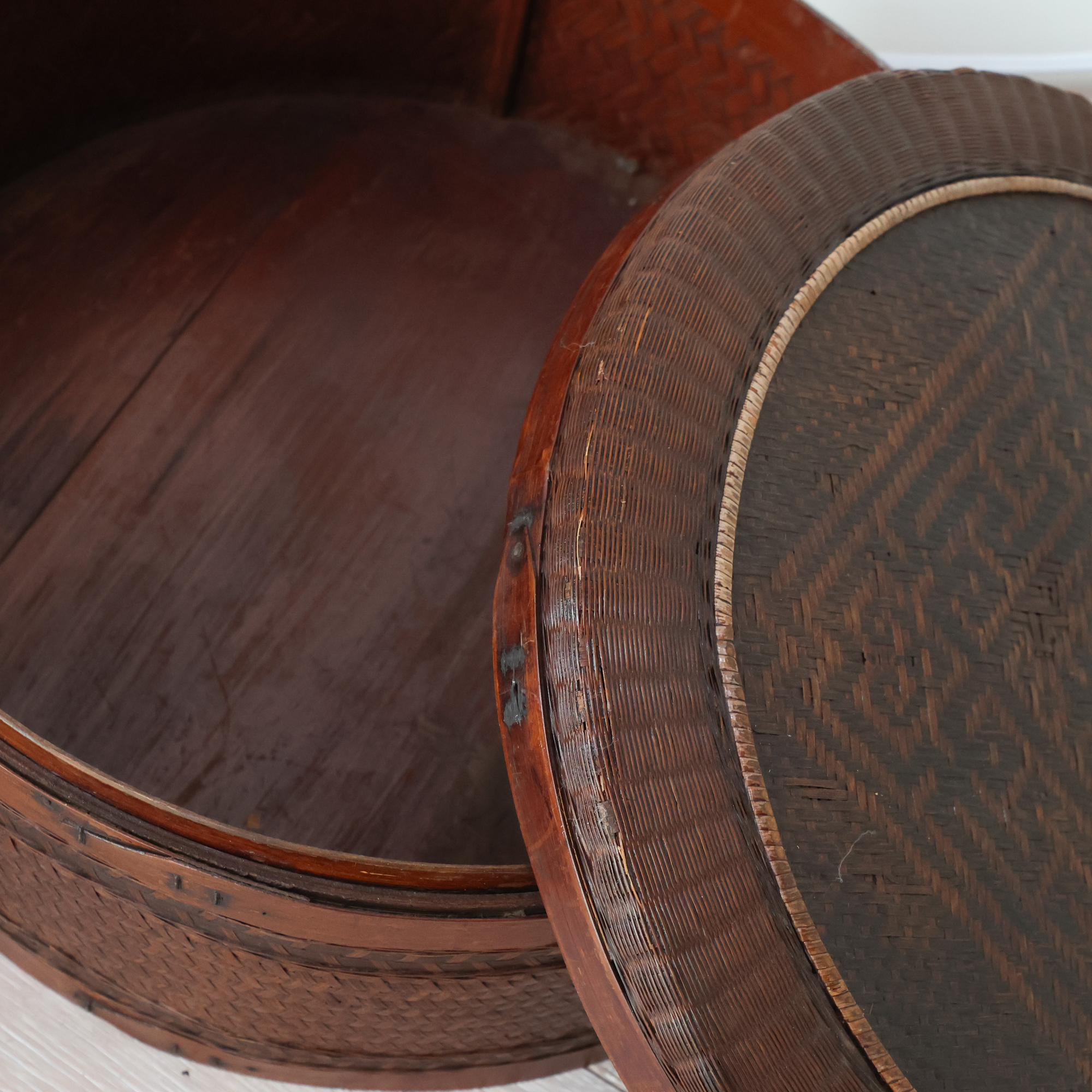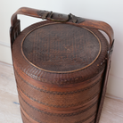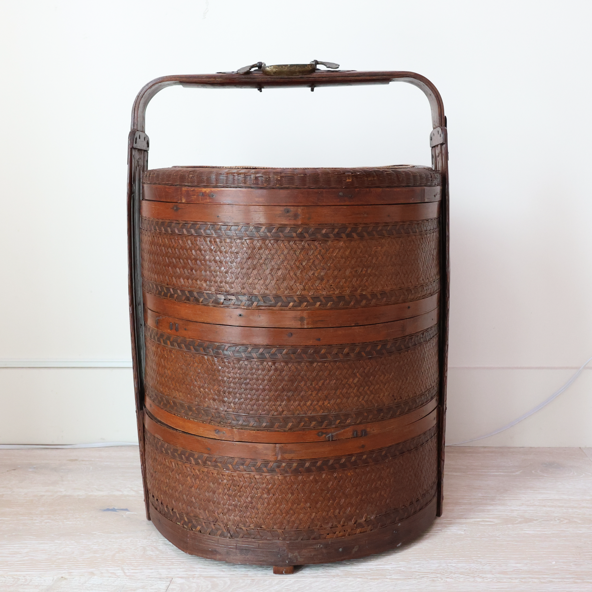 This elegant vintage three-tier bamboo wedding basket features handwoven bamboo panels, warm wood banding, and a beautiful frame with original hardware. Originally used to carry celebratory gifts in wedding ceremonies across China and Southeast Asia.