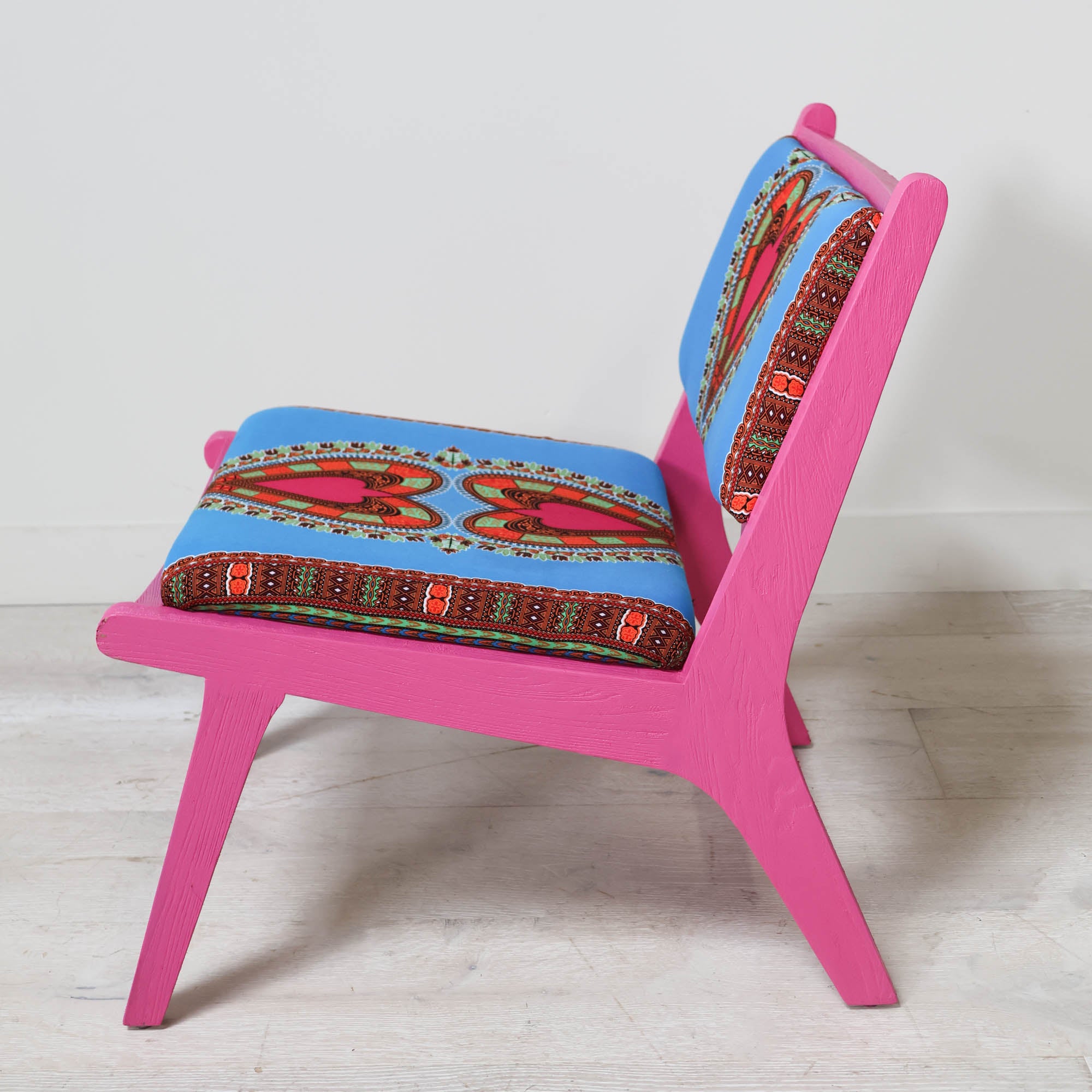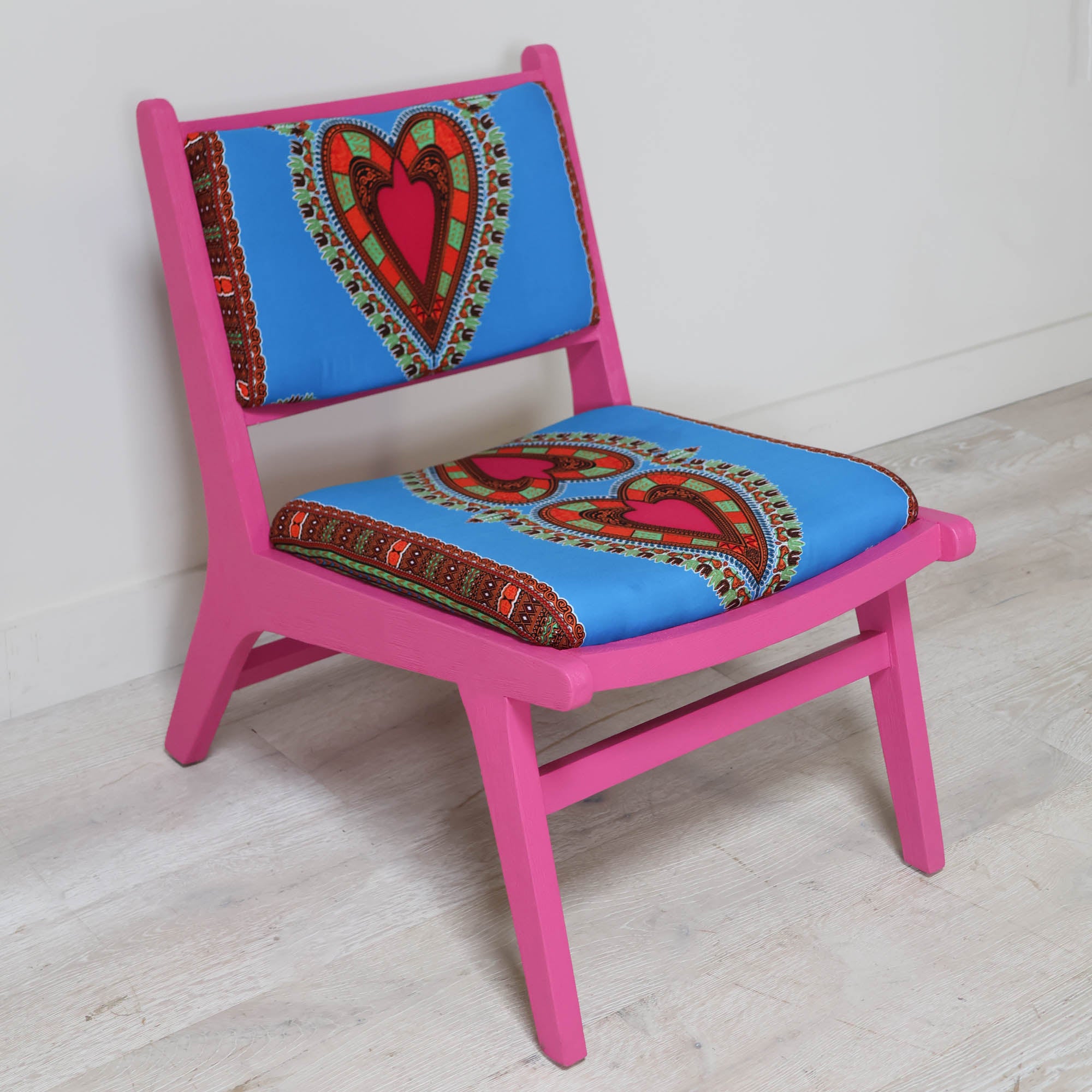 Pink Wooden Chair with Heart Upholstery