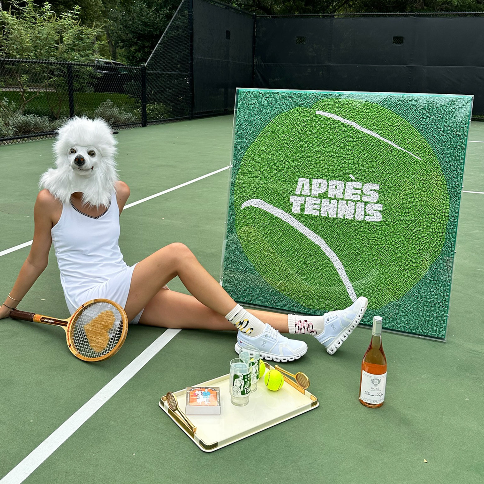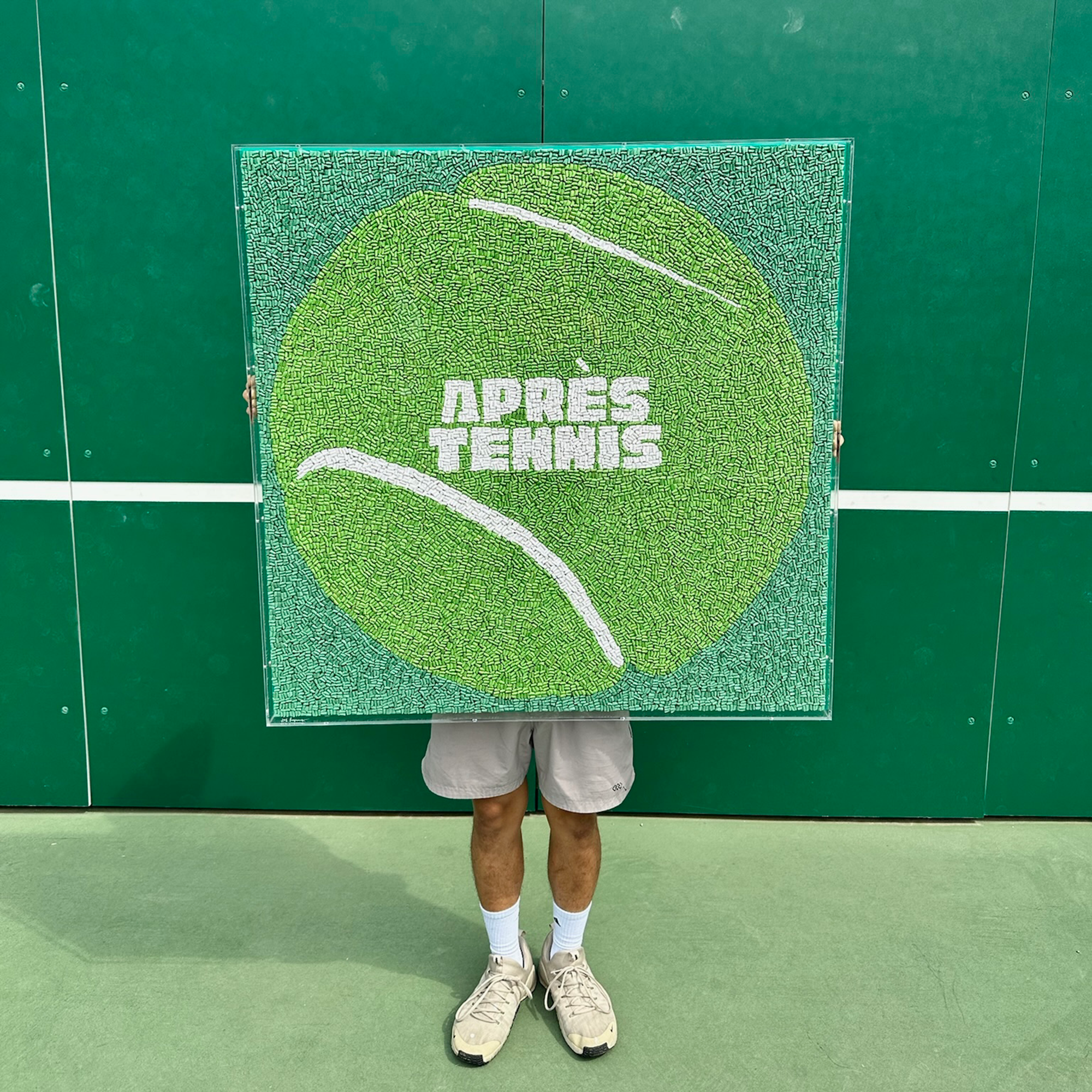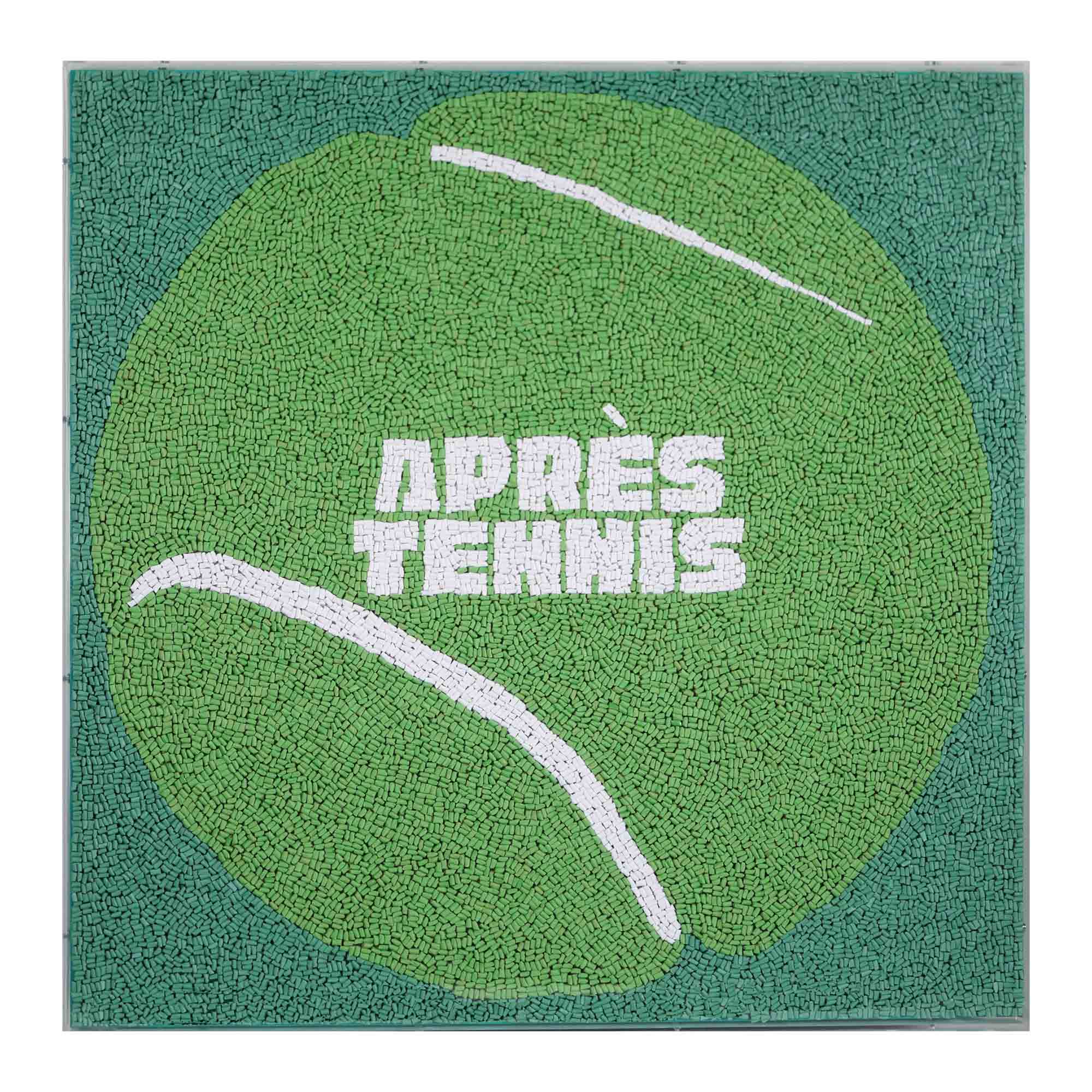 Because the best part of the match is always the cocktail after. This oversized artwork serves up a bold green tennis ball with Après Tennis emblazoned across the center, reminding you that sport is just foreplay for the après.