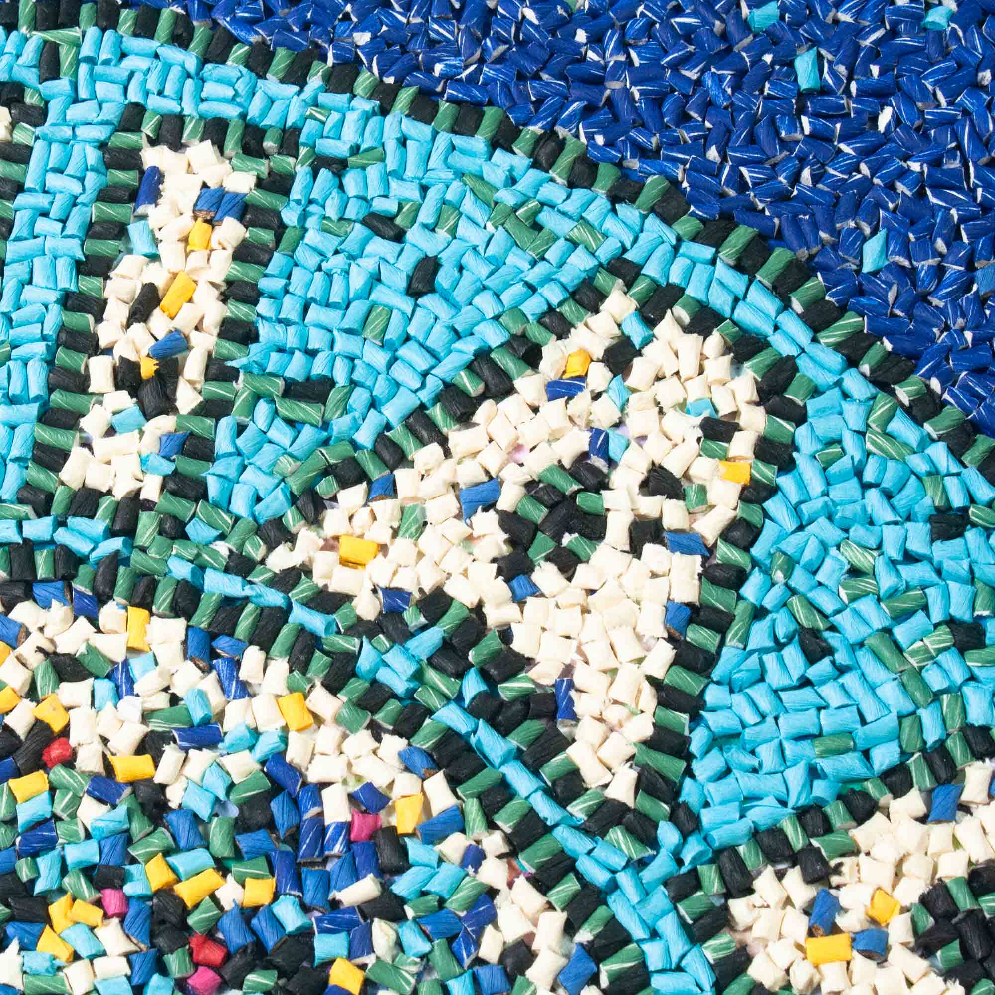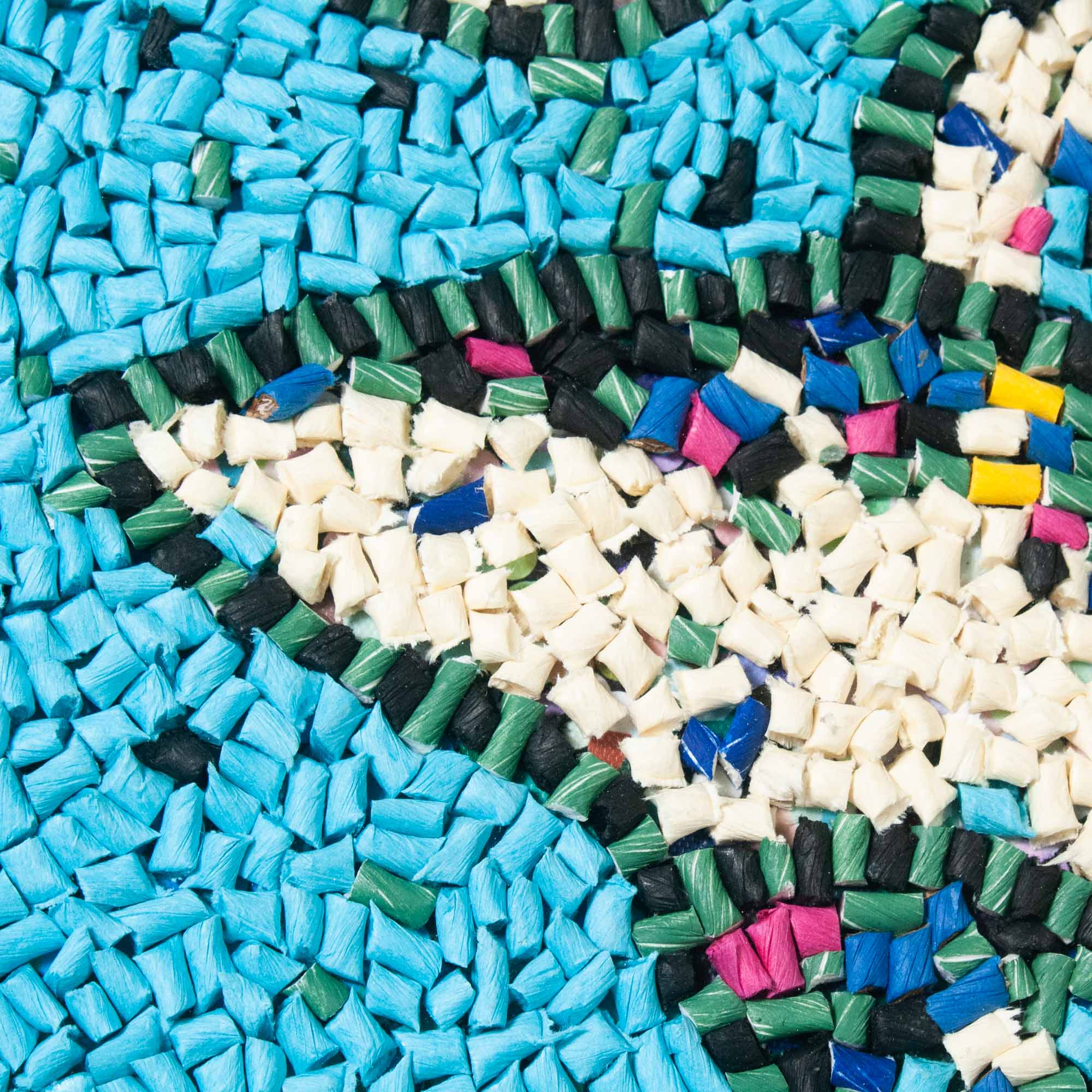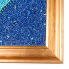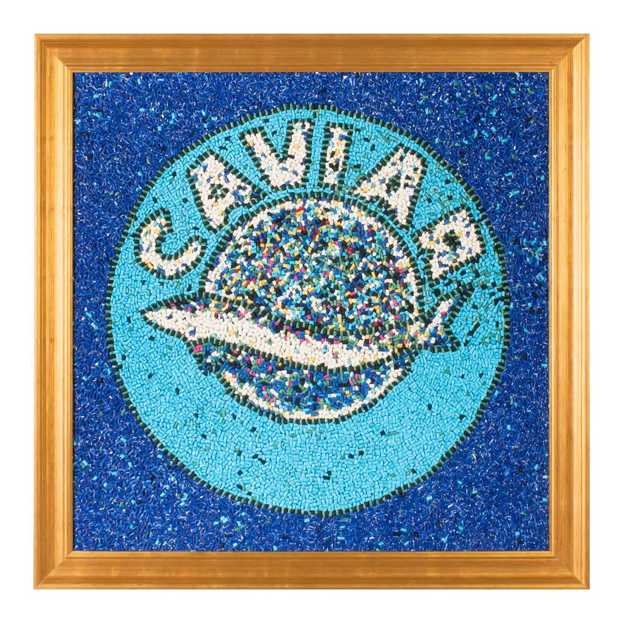 Unique and unusual, this artwork features tiny pieces of painted rope that have been arranged by hand and mounted in an iconic caviar design. Framed in a gold painted frame with patina detailing and a plexiglass panel.