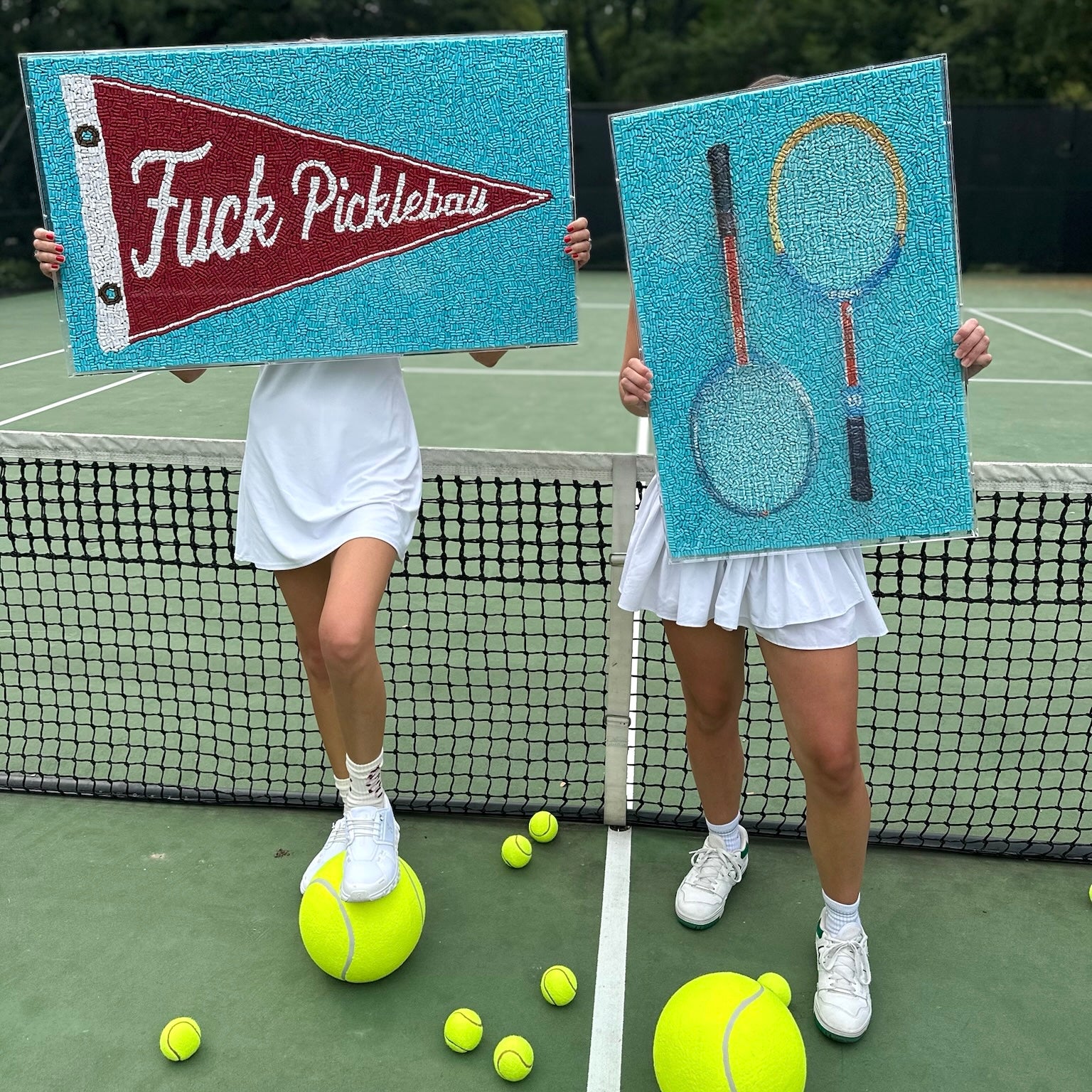 Double the rackets, double the fun. This textured artwork features two vintage Wilson tennis rackets against a punchy blue backdrop.