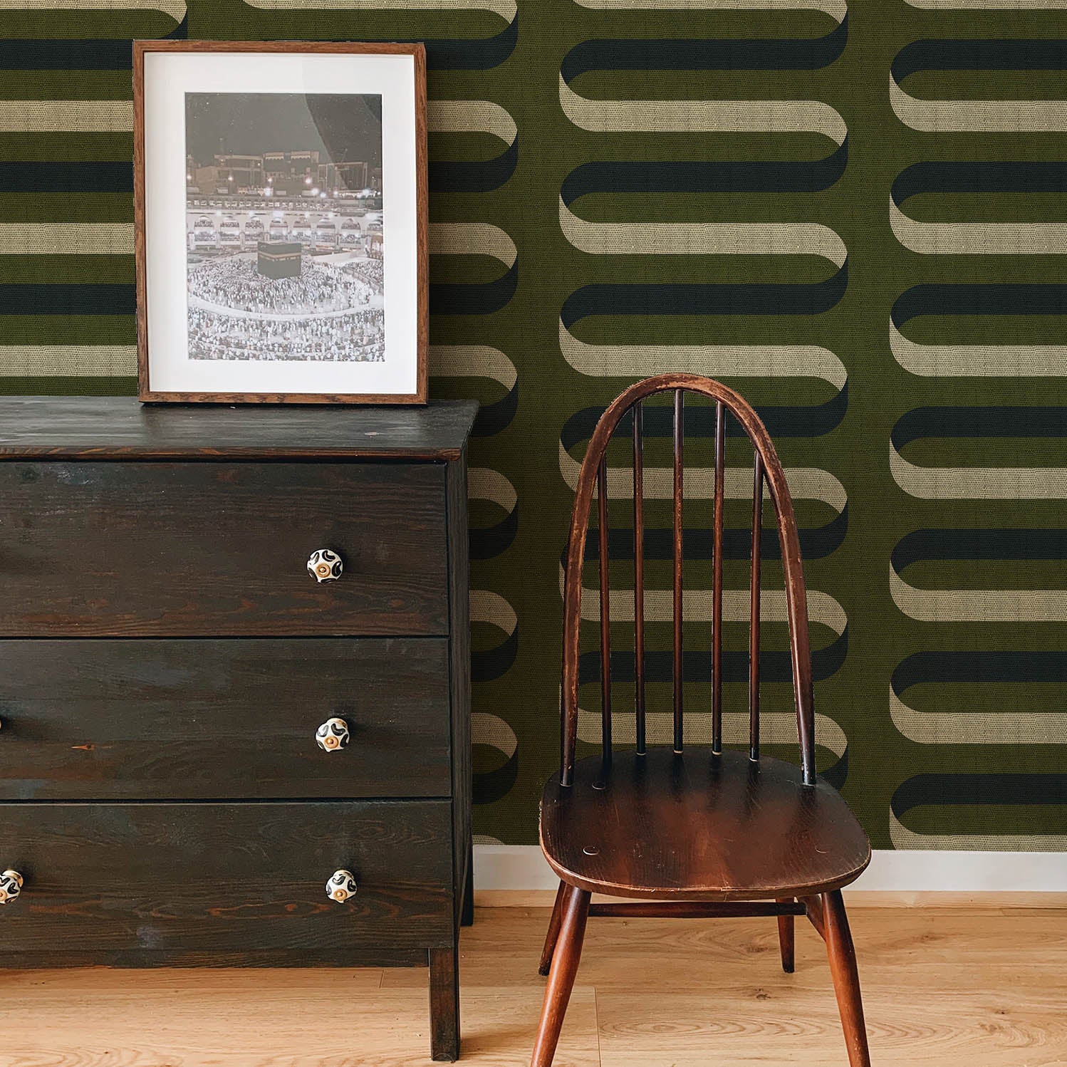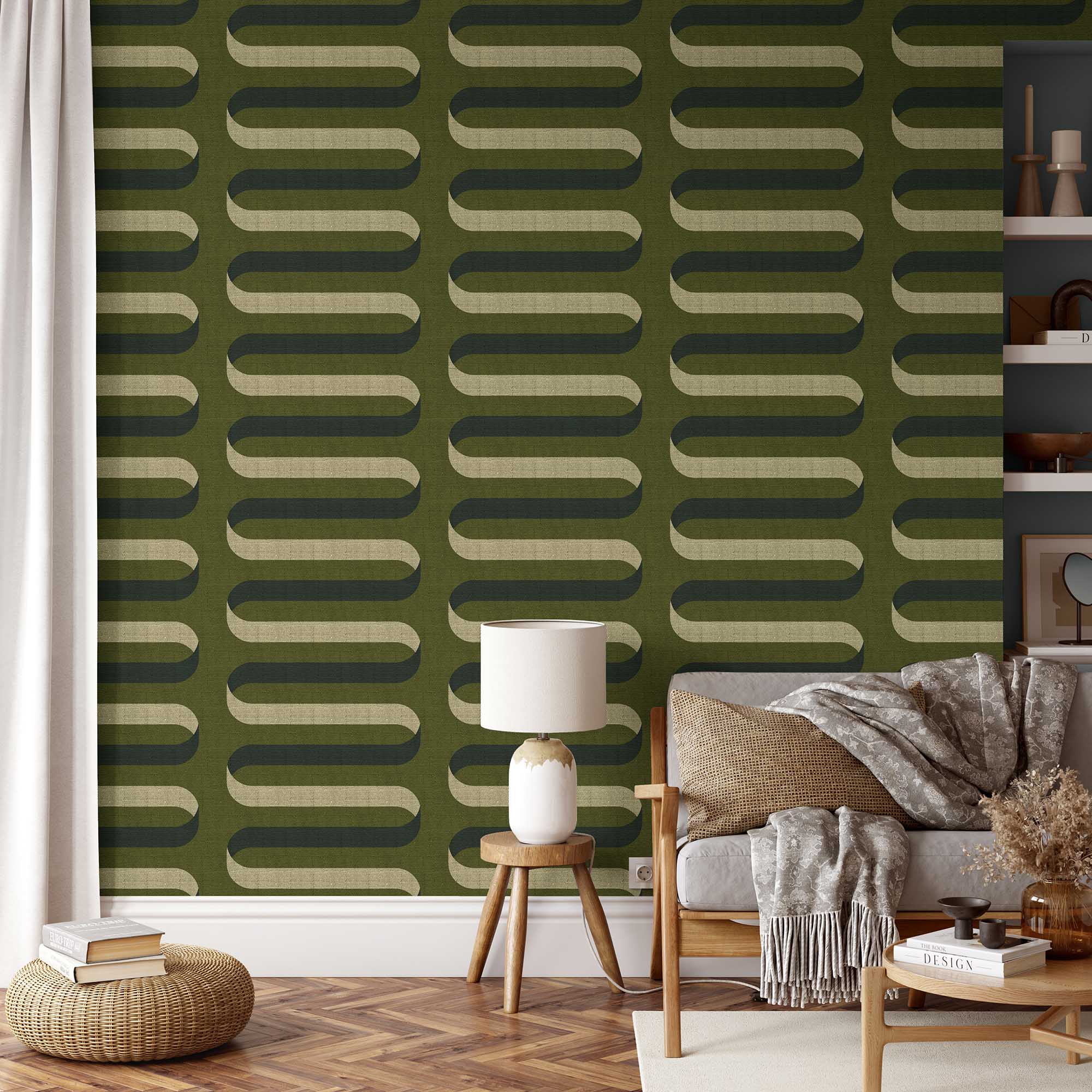 Folding Ribbon Wallpaper - Olive