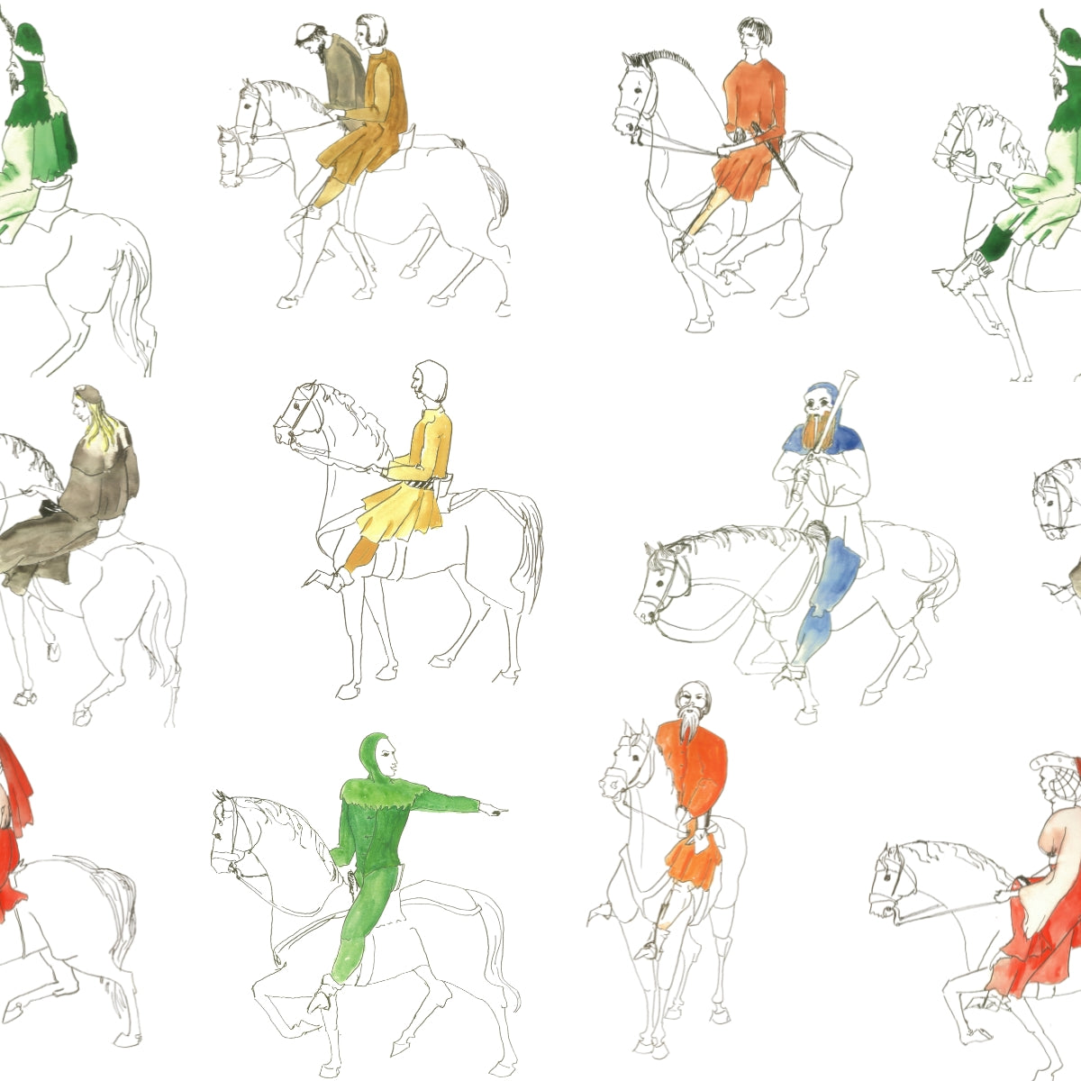 This multicolor equestrian print is the perfect pattern to add character to your space. Vintage watercolor illustrations reimagined in wallpaper.