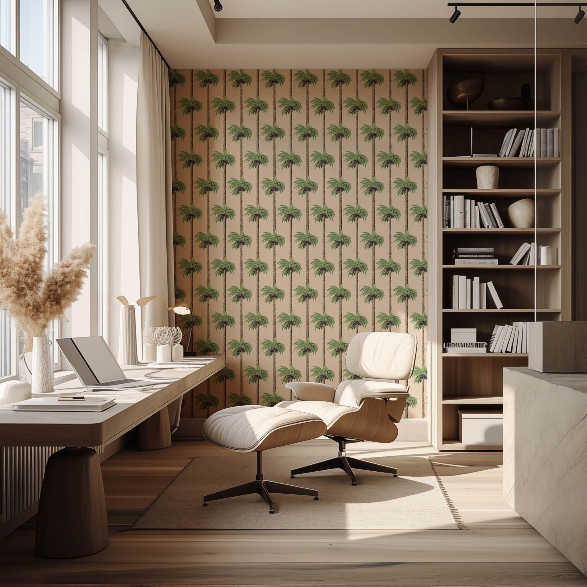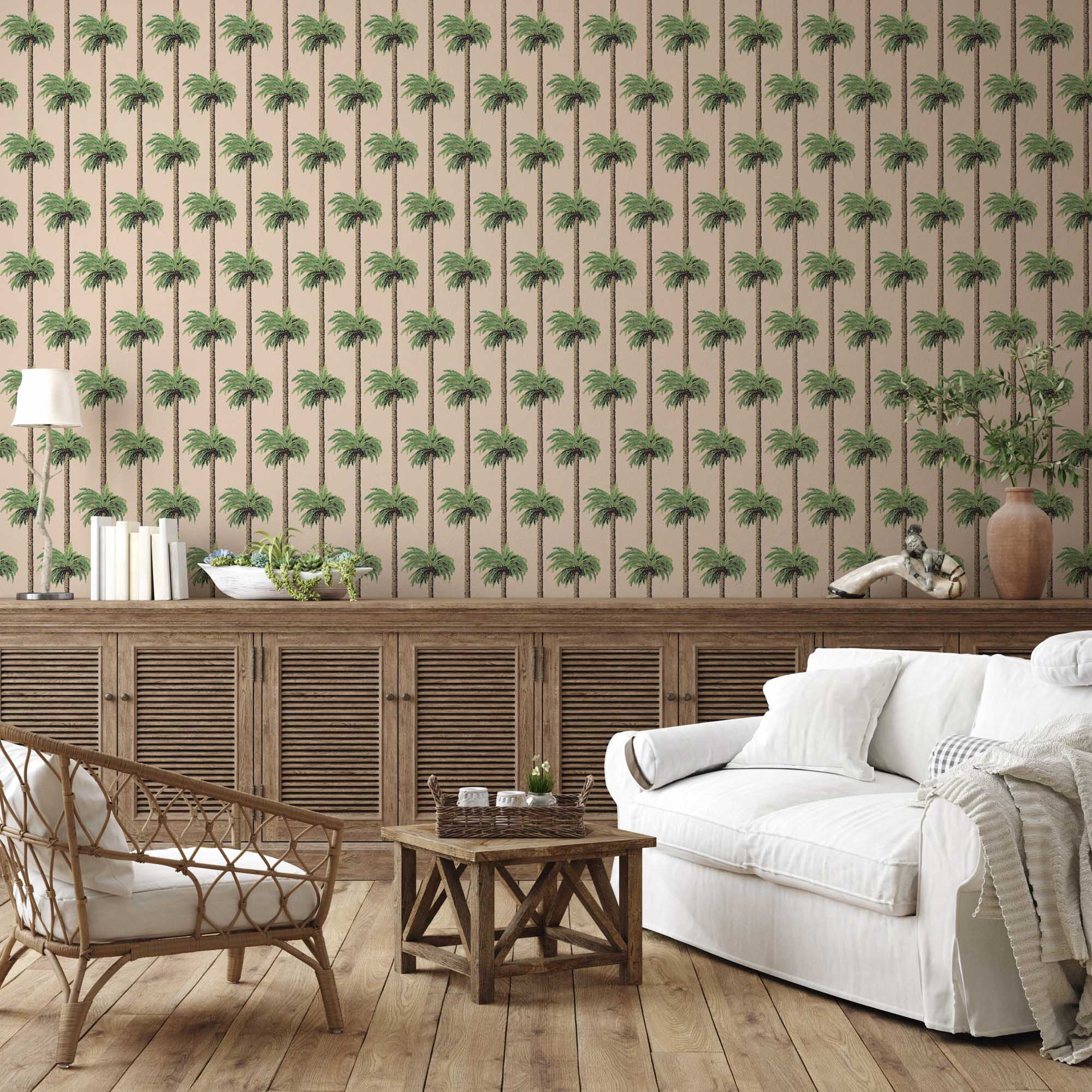 Retro Tiki Palm Trees Wallpaper - Tan