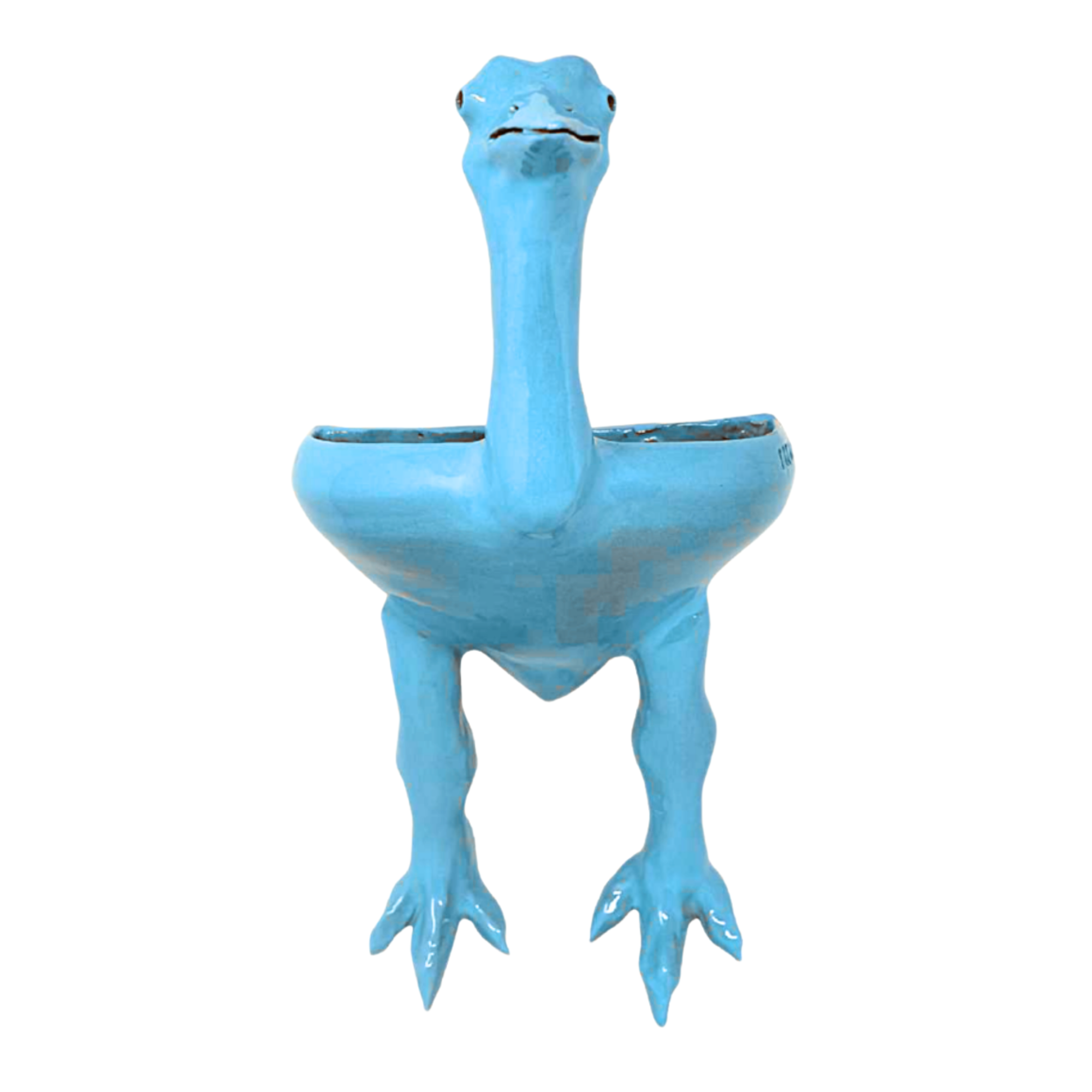 This glossy ceramic ostrich is a wall-mounted bowl built to hold flowers, keys, incense, candy, or whatever you're into. Hang it high and let the legs dangle with pride.