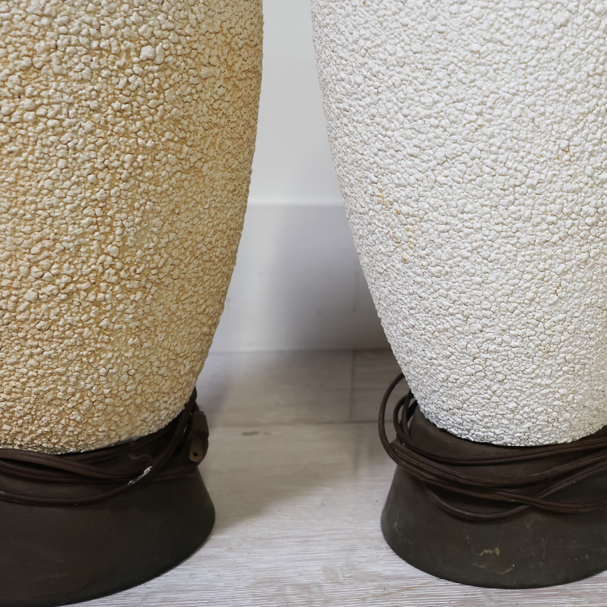 Pair of Ivory Plaster and Brass Lamp Bases