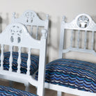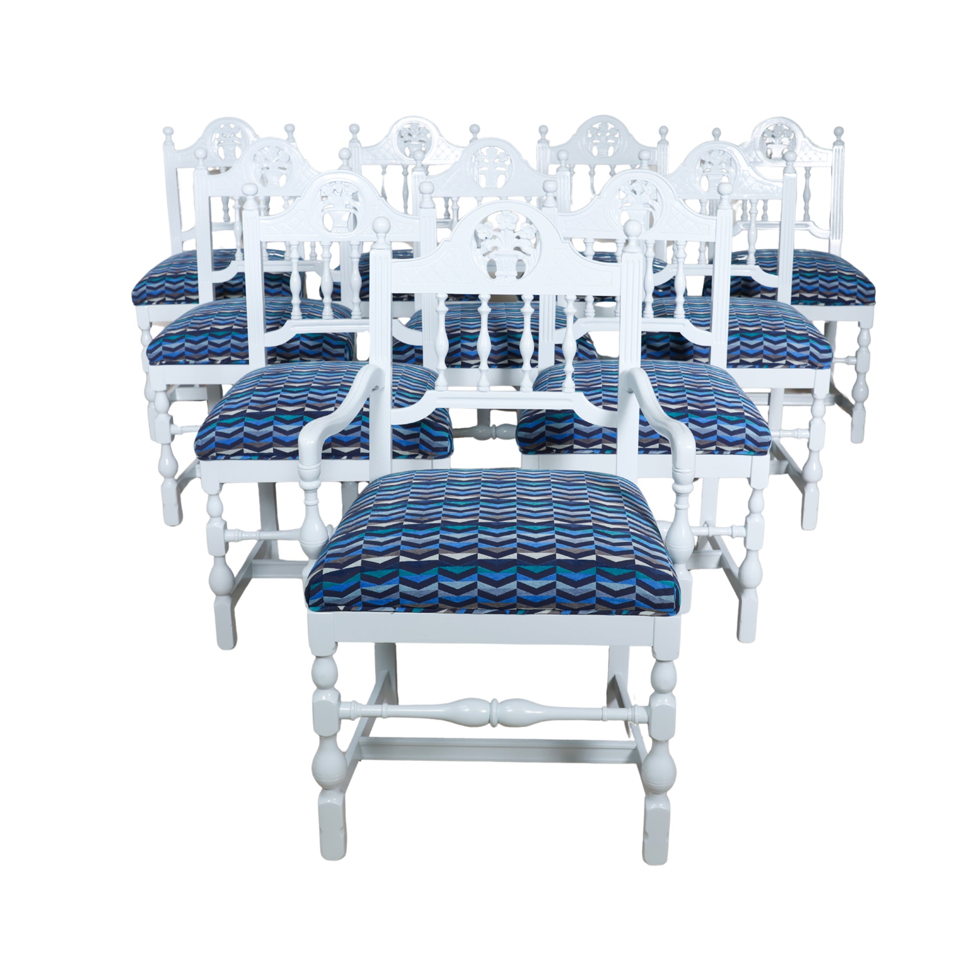 Set of 10 of Floral Carved Dining Chairs in Gulfstream Blue