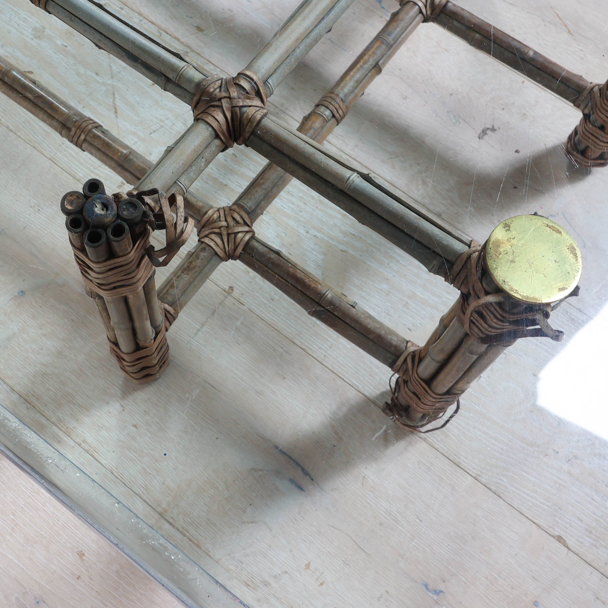Rectangular Bamboo and Glass Coffee Table by McGuire