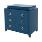 Sly and masterful, our Espionage Chest steals the show with its unique design. Navy lacquer is accented with brass pulls and sabots for a refined look.